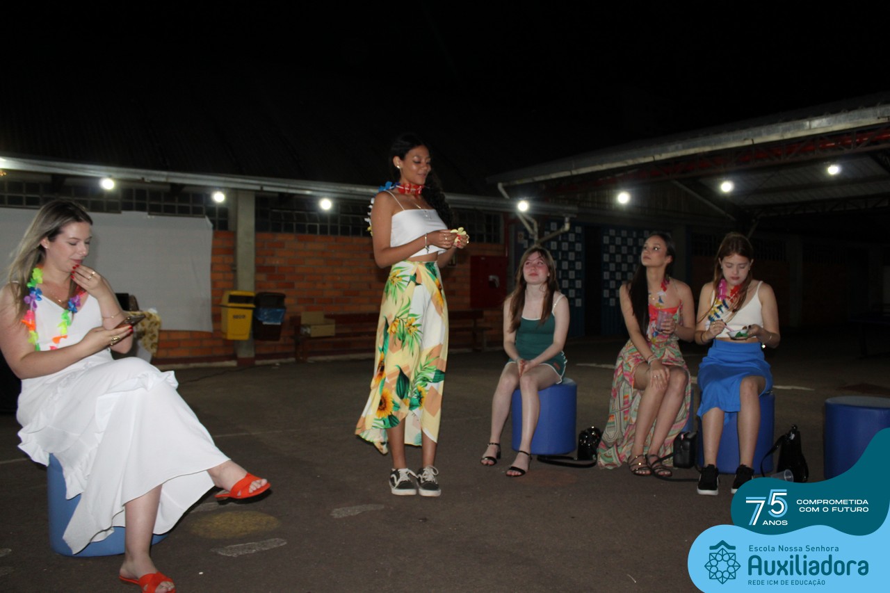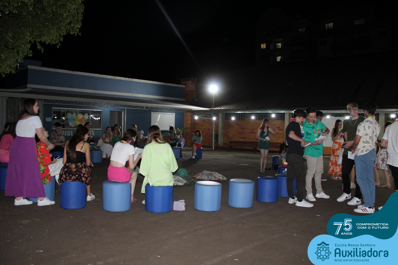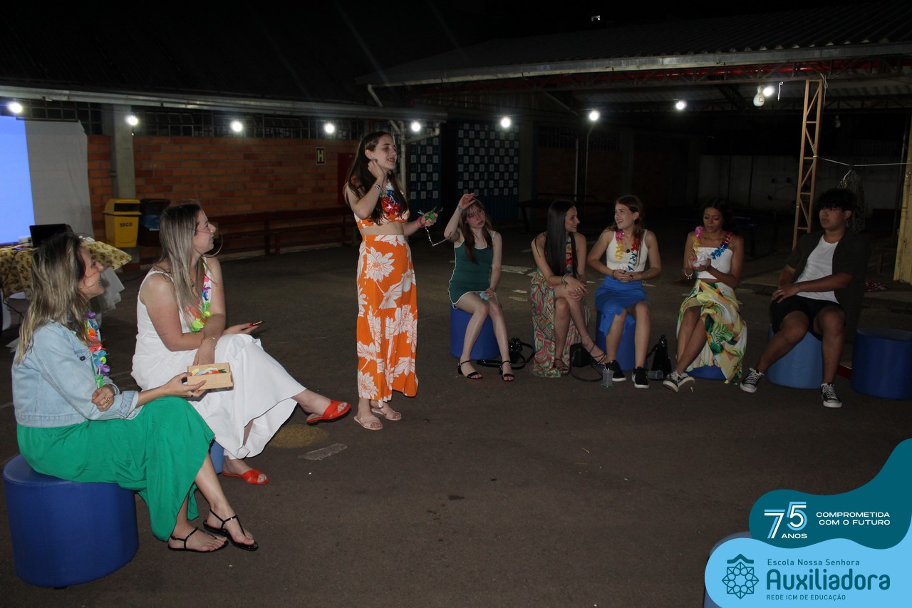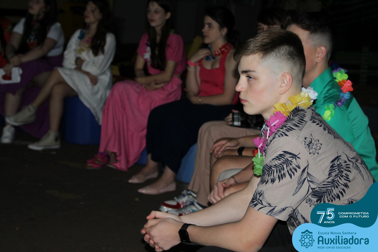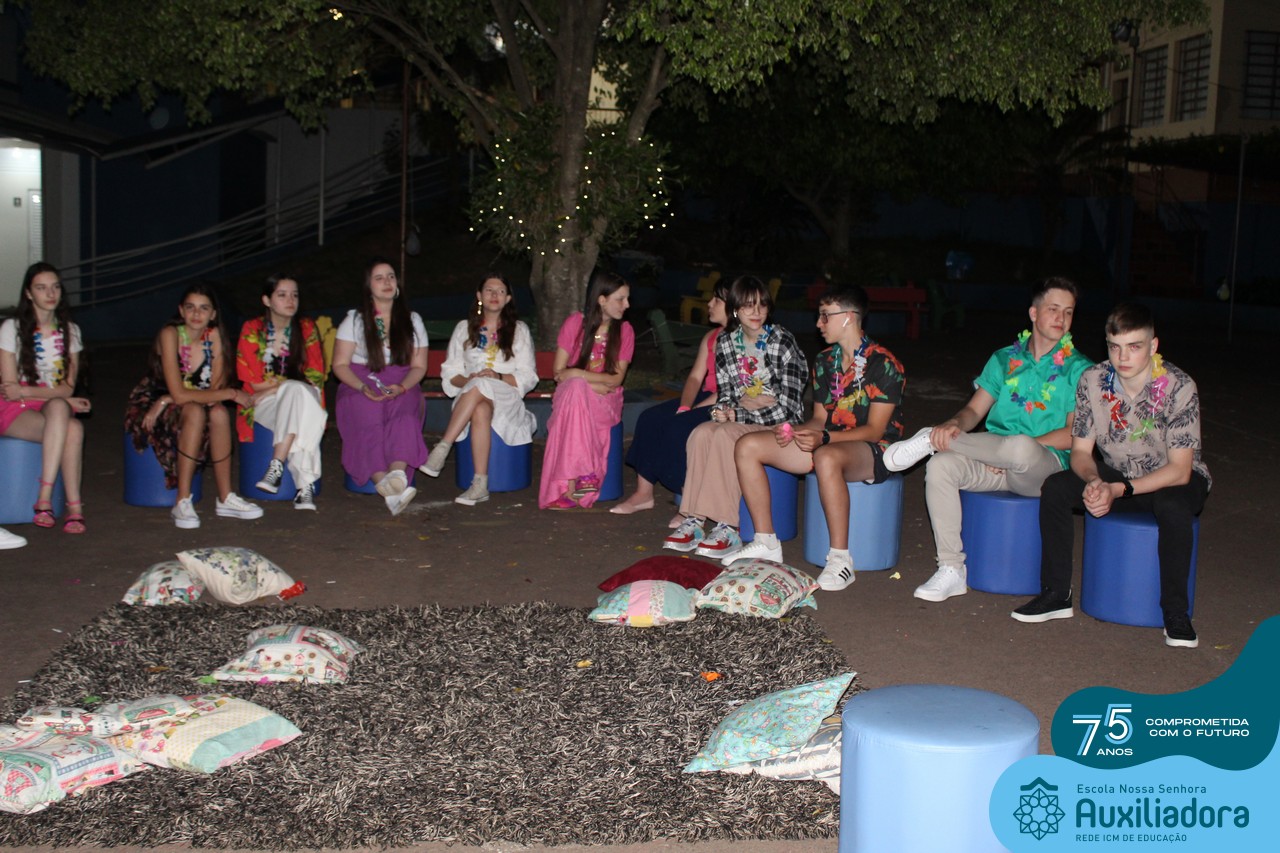 Em uma noite especial, alunos, professores e pais do 9°ano se reuniram para um Luau repleto de memória, sorrisos e música. Diante das atividades realizadas, os discente puderam relembrar momentos de suas histórias vividos na escola e, assim, compartilhar da magia que é conviver e se emocionar com a vida.