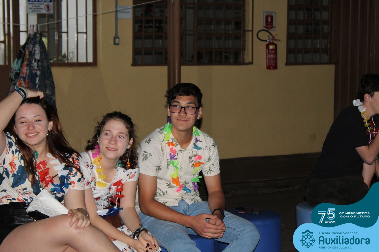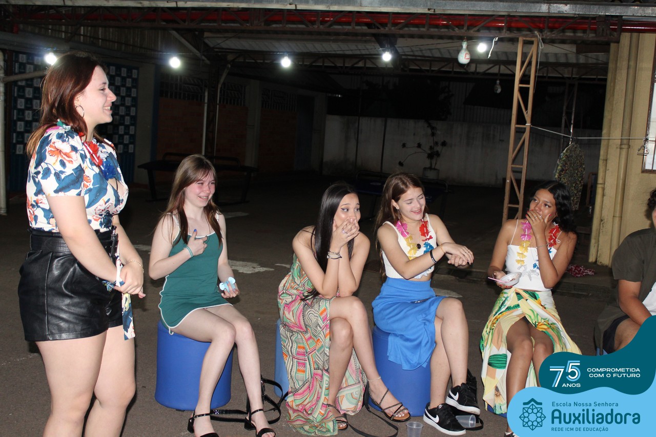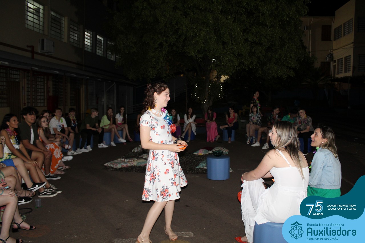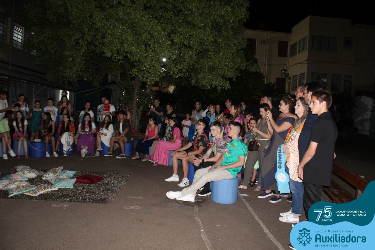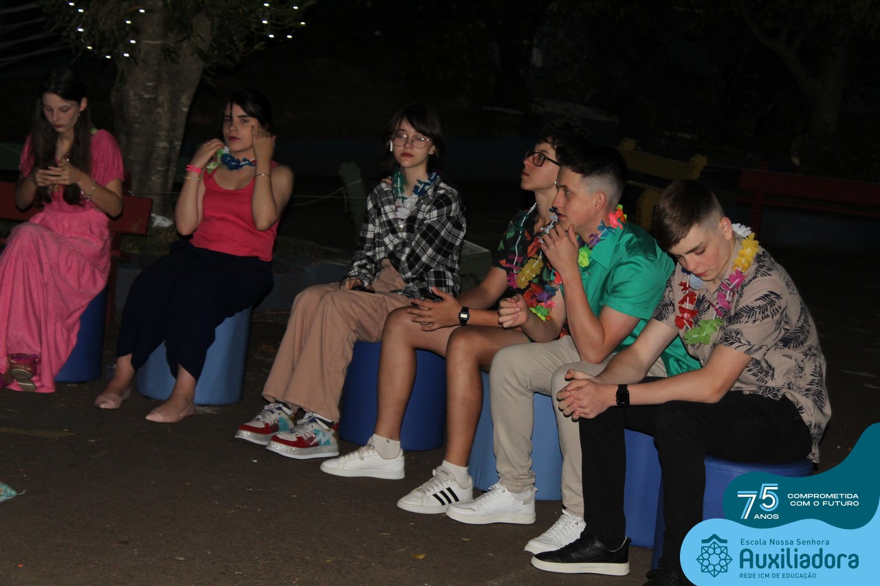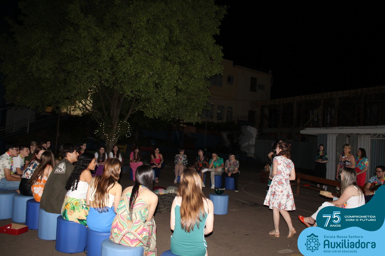 Em uma noite especial, alunos, professores e pais do 9°ano se reuniram para um Luau repleto de memória, sorrisos e música. Diante das atividades realizadas, os discente puderam relembrar momentos de suas histórias vividos na escola e, assim, compartilhar da magia que é conviver e se emocionar com a vida.