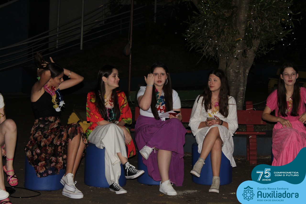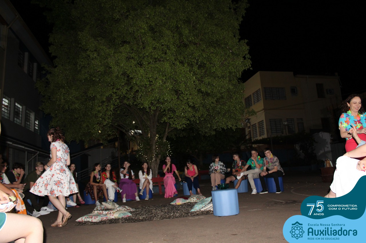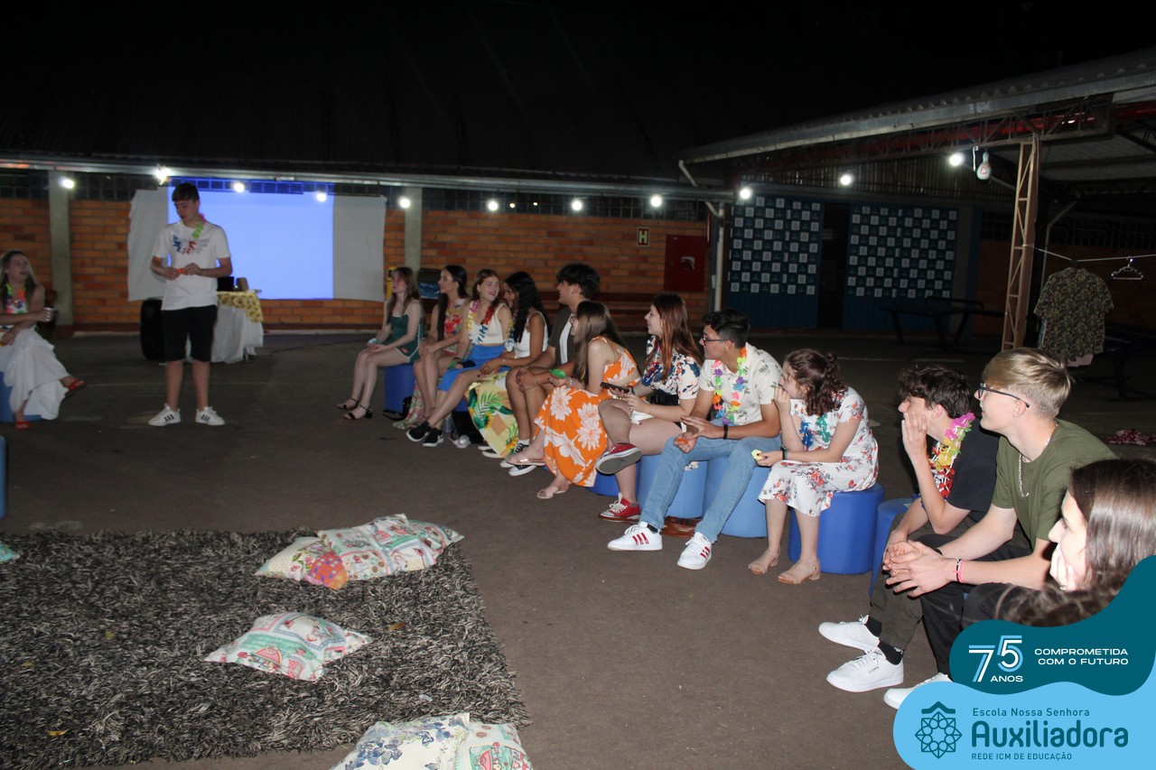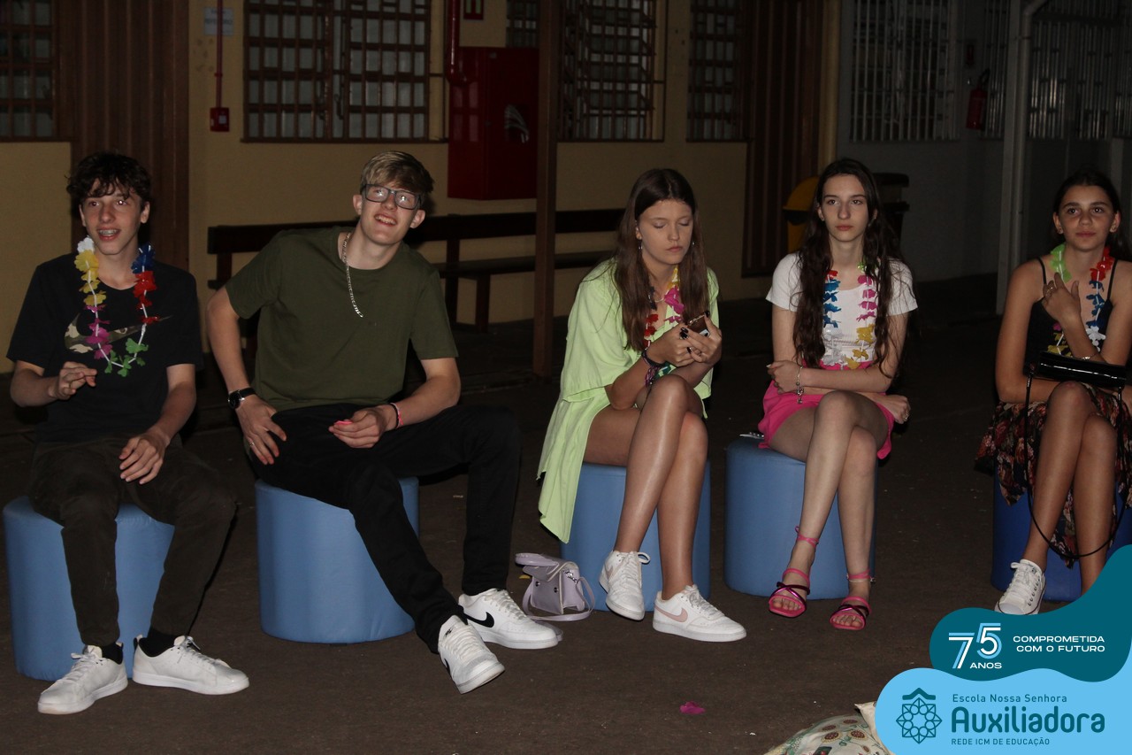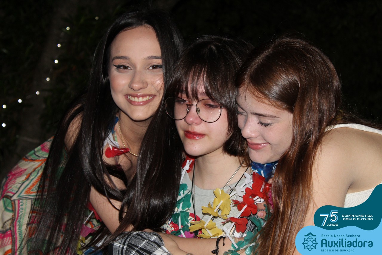 Em uma noite especial, alunos, professores e pais do 9°ano se reuniram para um Luau repleto de memória, sorrisos e música. Diante das atividades realizadas, os discente puderam relembrar momentos de suas histórias vividos na escola e, assim, compartilhar da magia que é conviver e se emocionar com a vida.