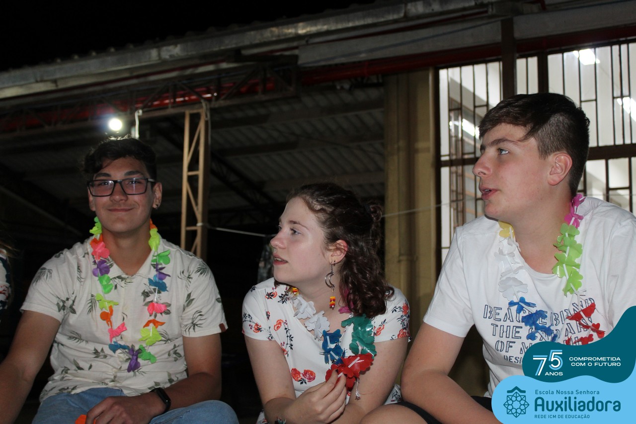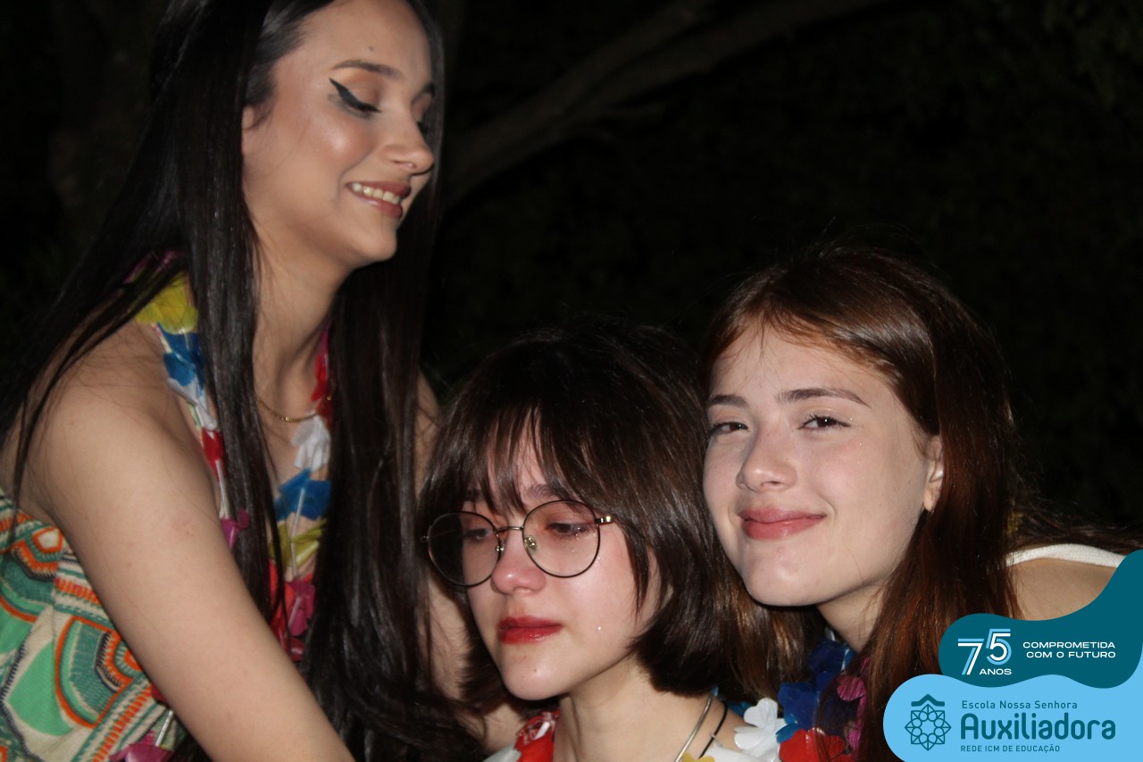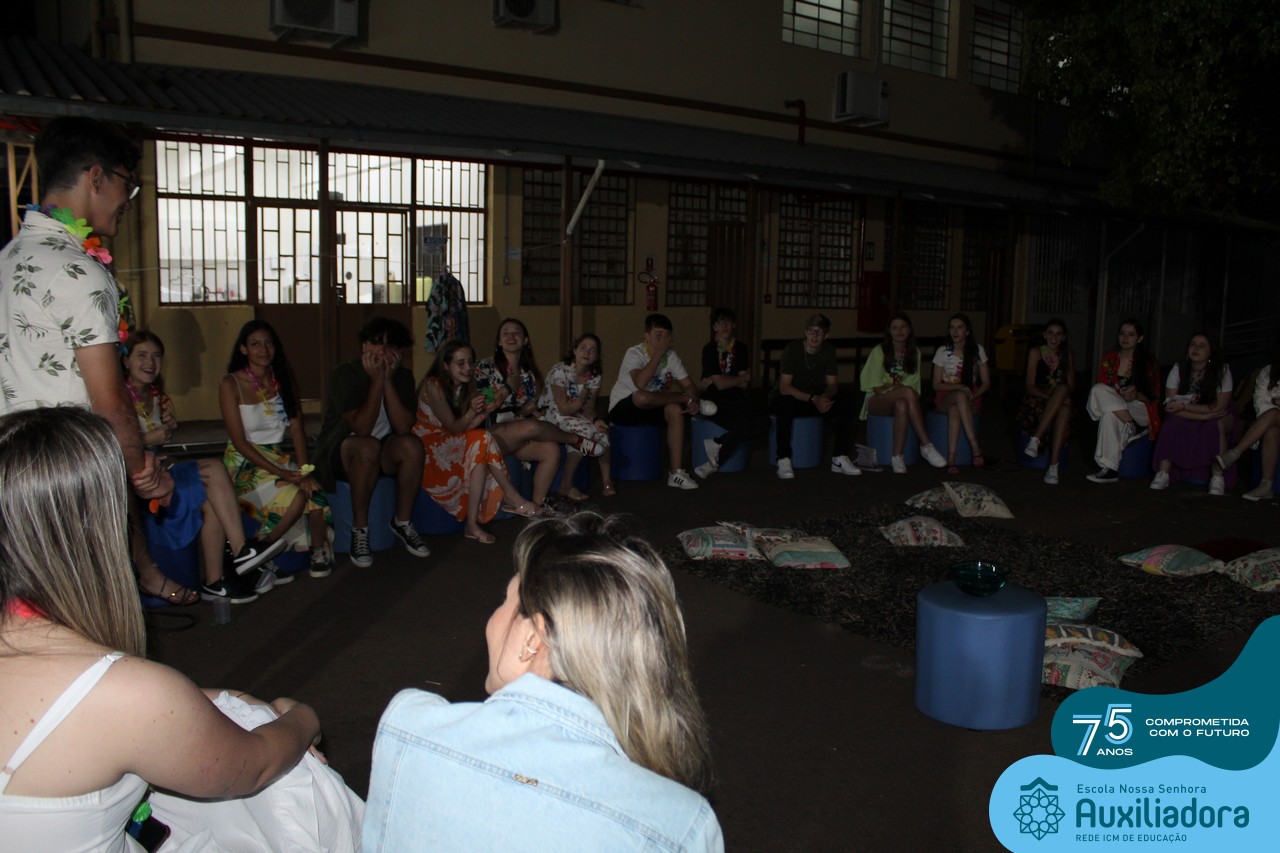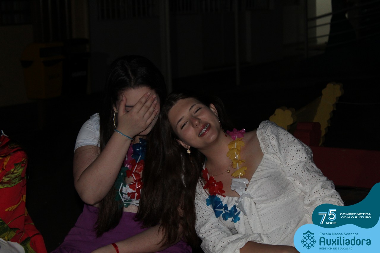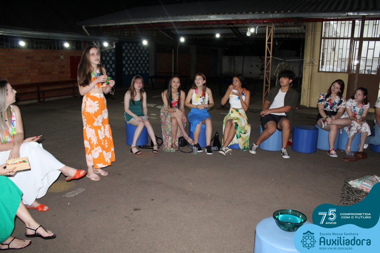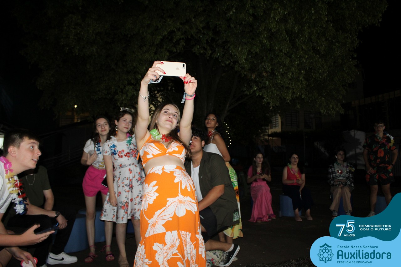 Em uma noite especial, alunos, professores e pais do 9°ano se reuniram para um Luau repleto de memória, sorrisos e música. Diante das atividades realizadas, os discente puderam relembrar momentos de suas histórias vividos na escola e, assim, compartilhar da magia que é conviver e se emocionar com a vida.