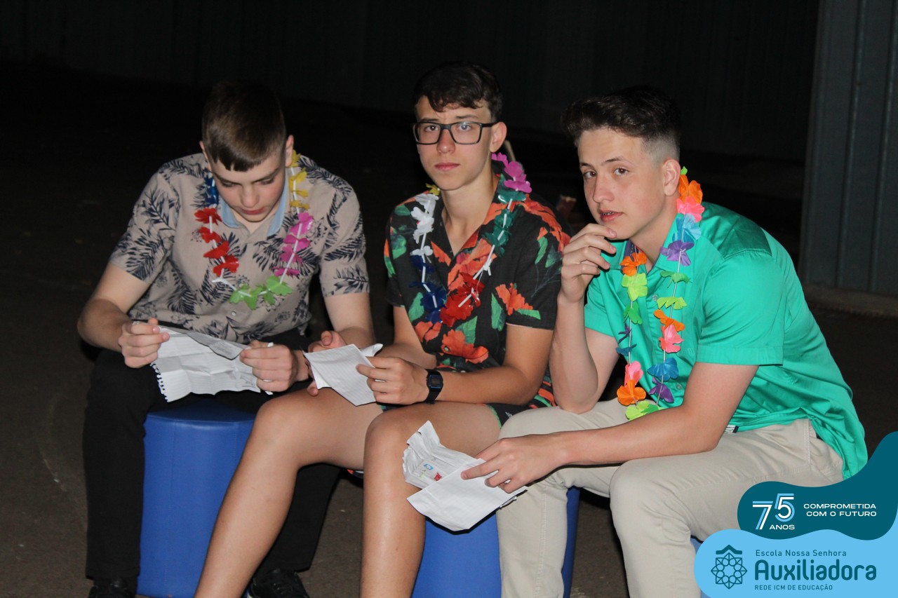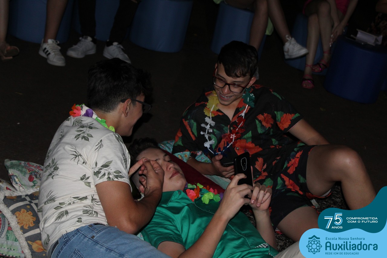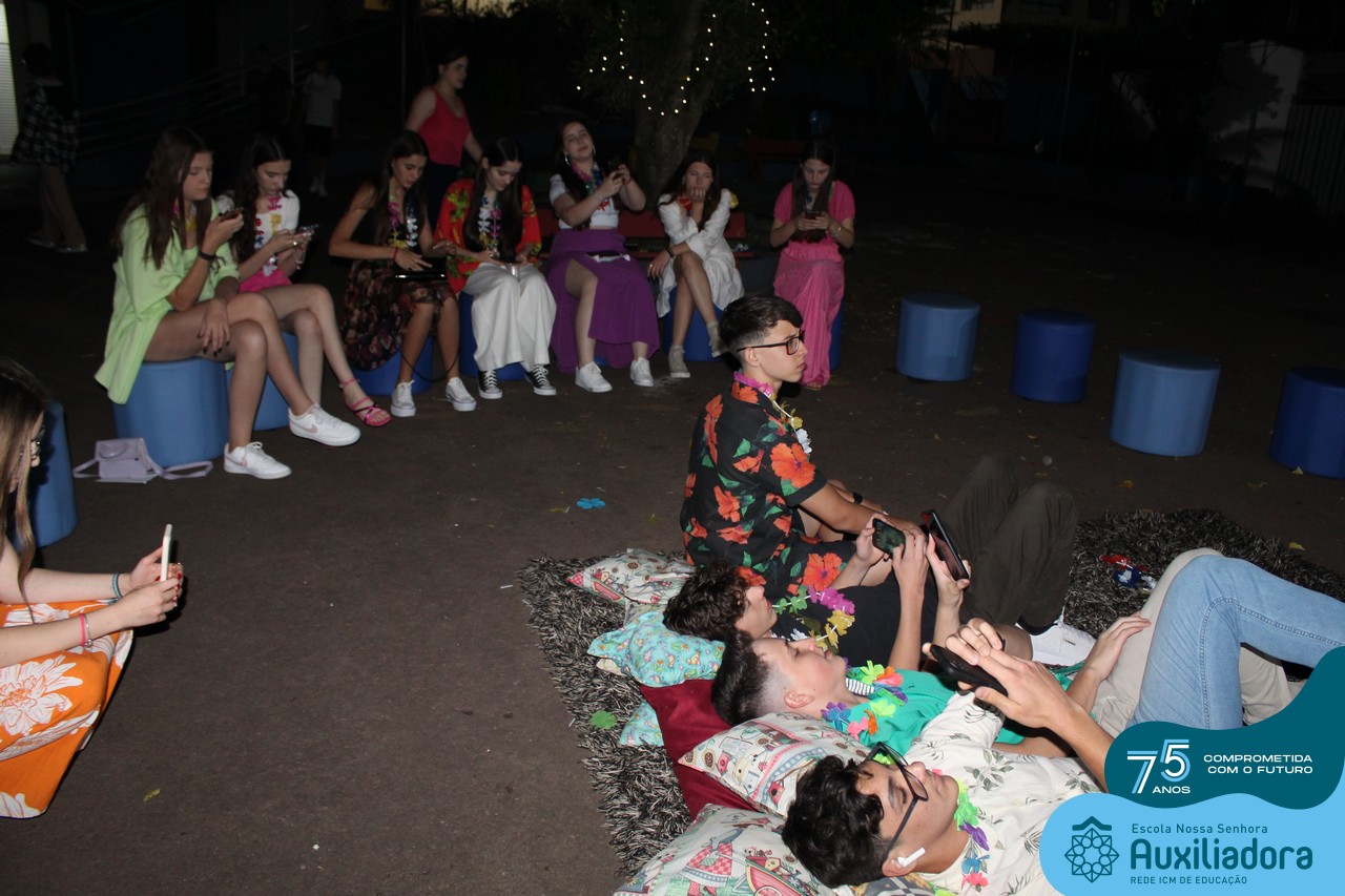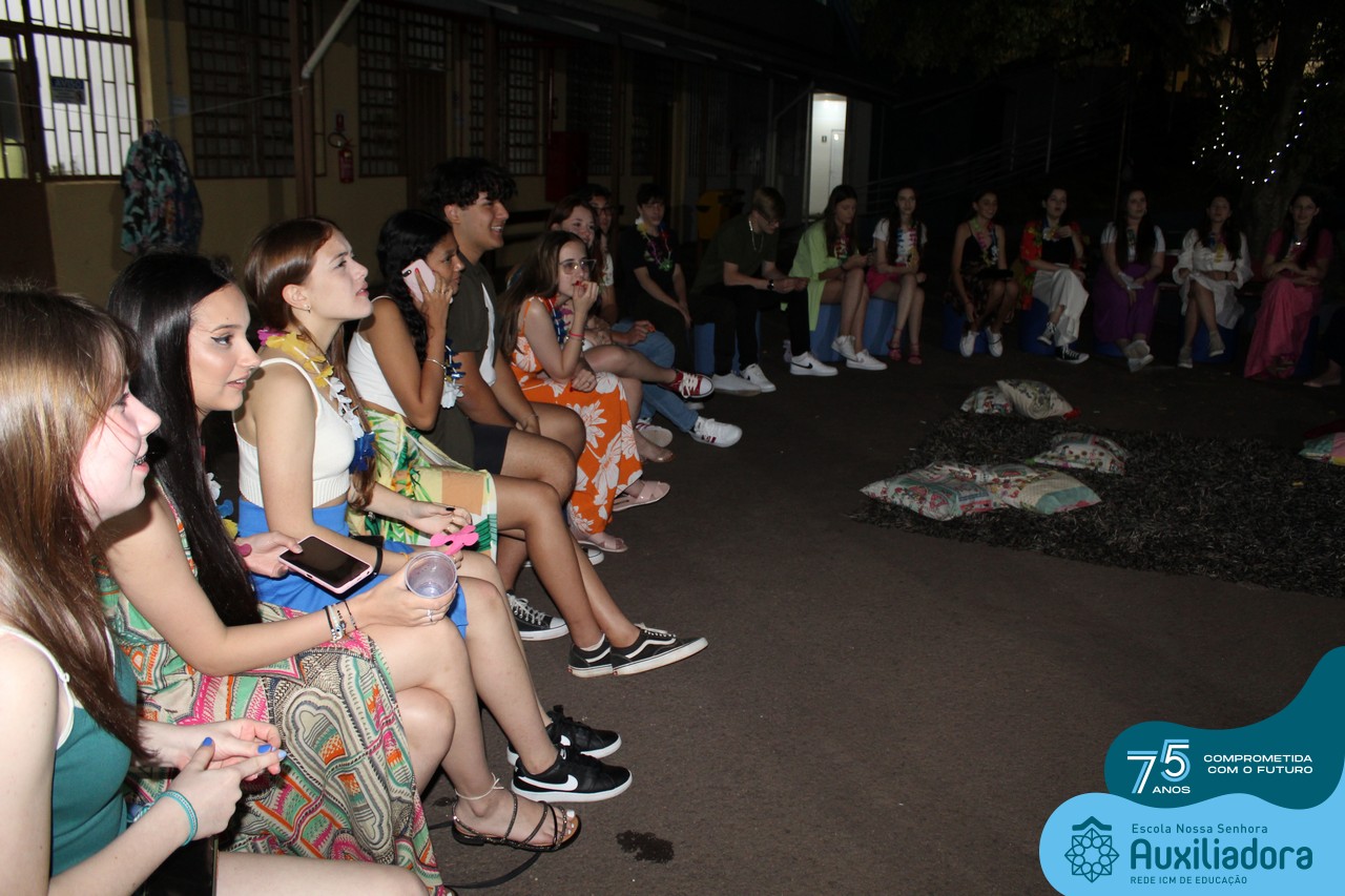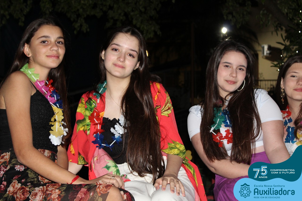 Em uma noite especial, alunos, professores e pais do 9°ano se reuniram para um Luau repleto de memória, sorrisos e música. Diante das atividades realizadas, os discente puderam relembrar momentos de suas histórias vividos na escola e, assim, compartilhar da magia que é conviver e se emocionar com a vida.