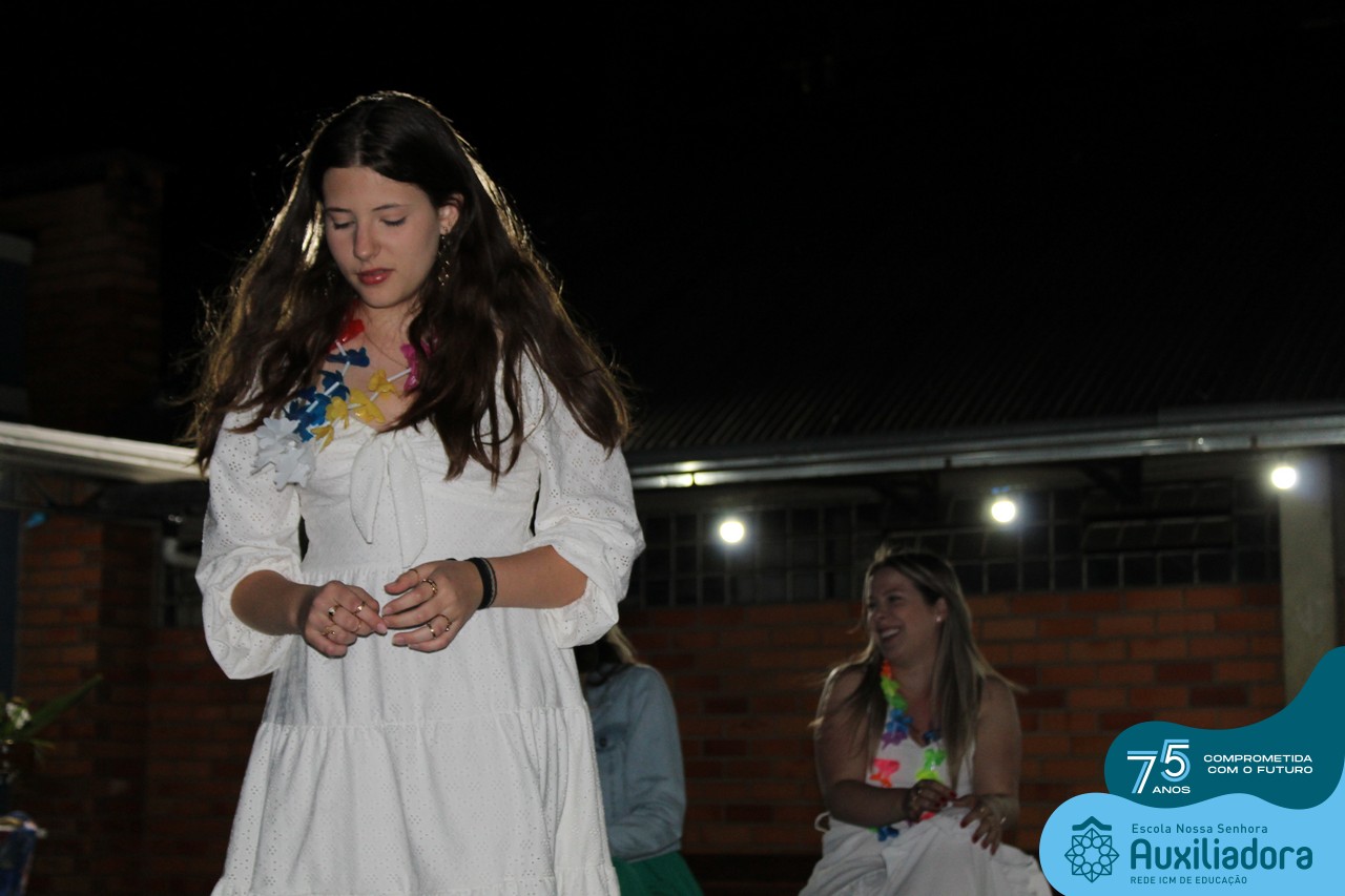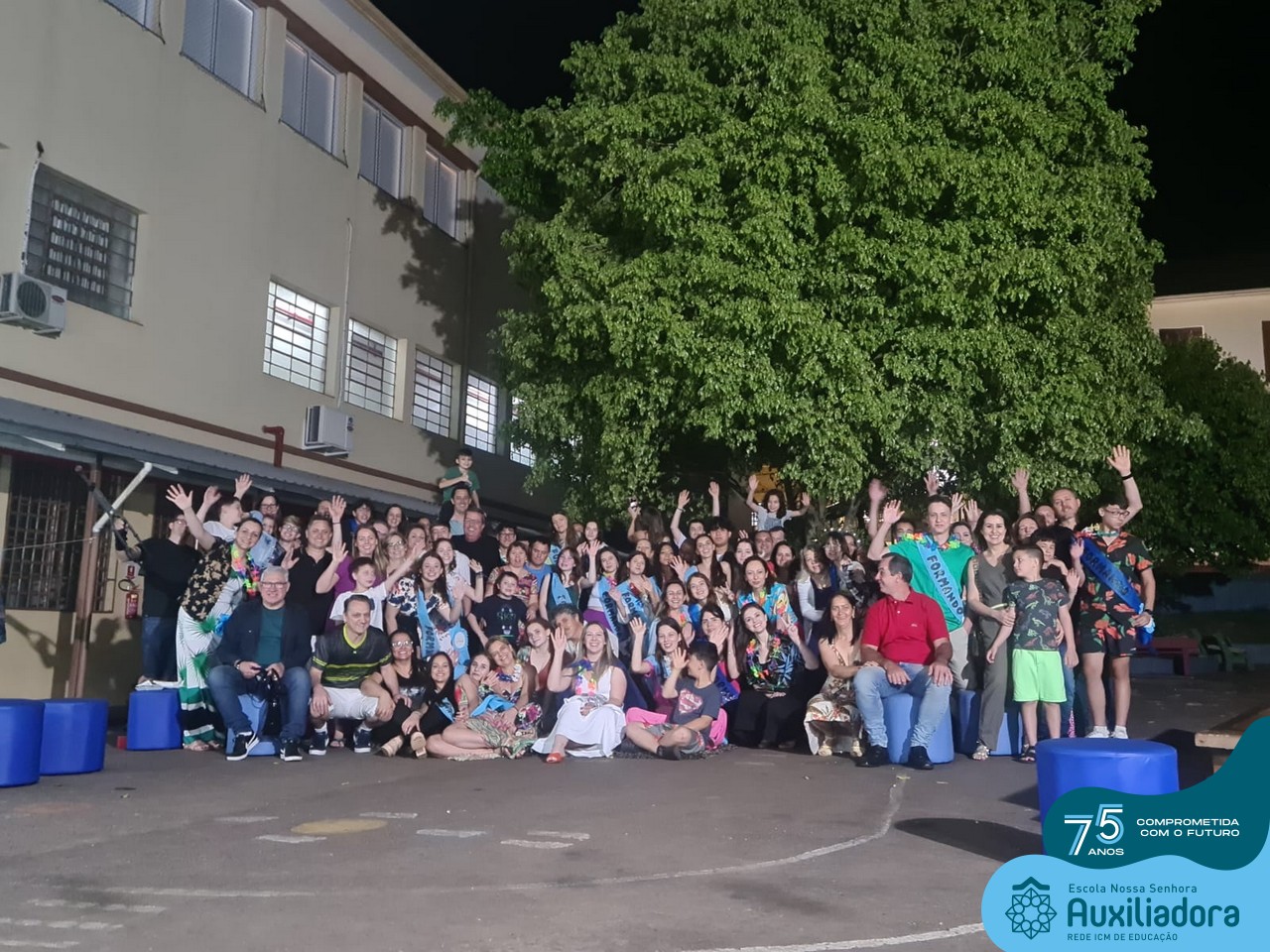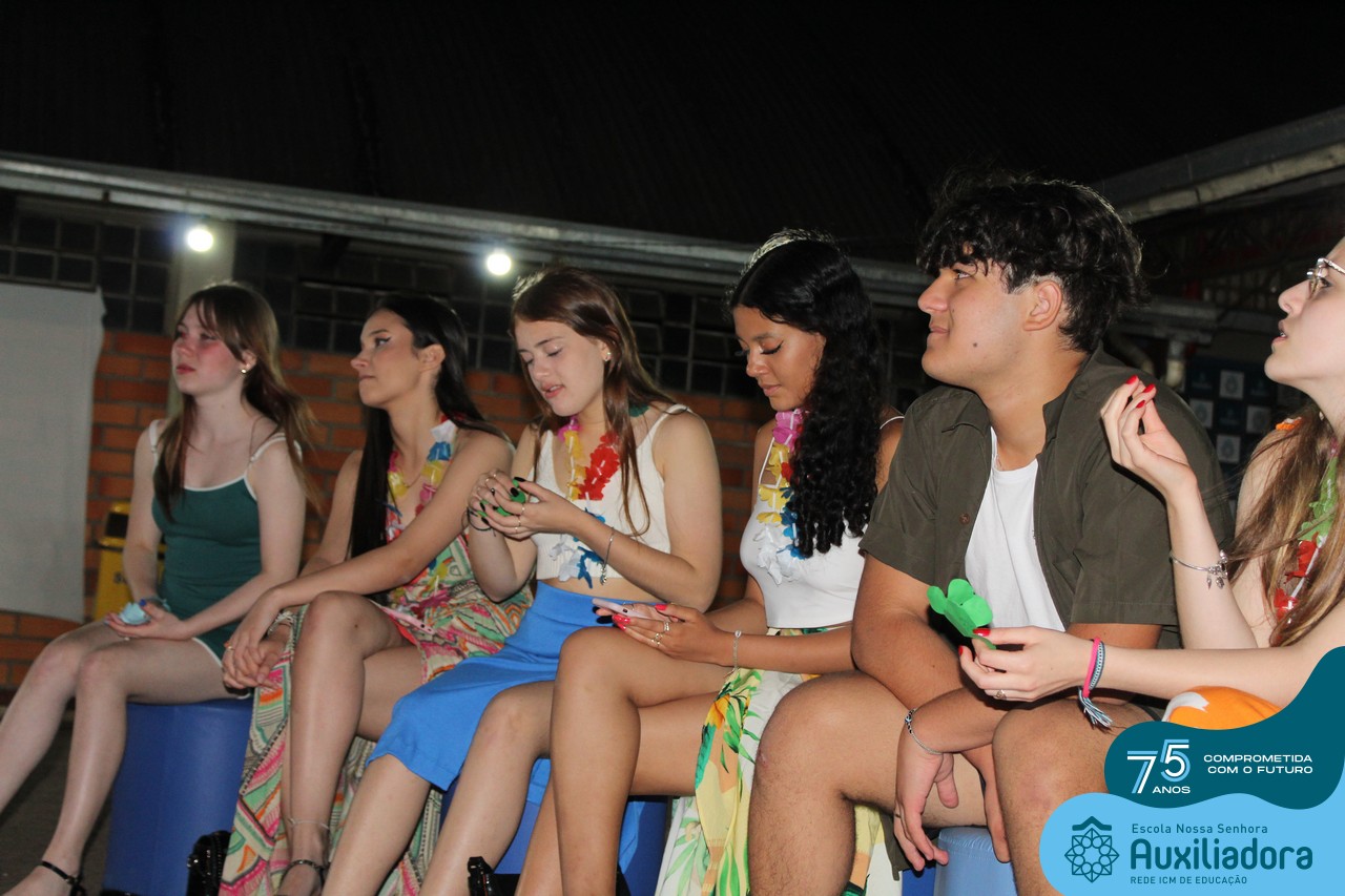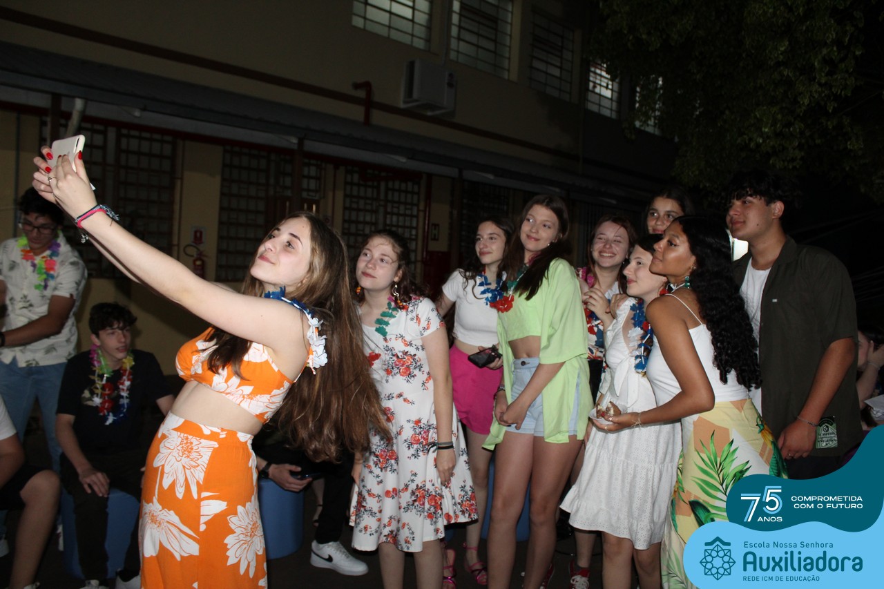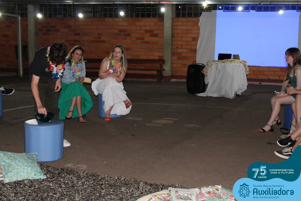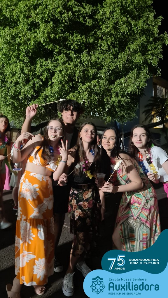 Em uma noite especial, alunos, professores e pais do 9°ano se reuniram para um Luau repleto de memória, sorrisos e música. Diante das atividades realizadas, os discente puderam relembrar momentos de suas histórias vividos na escola e, assim, compartilhar da magia que é conviver e se emocionar com a vida.