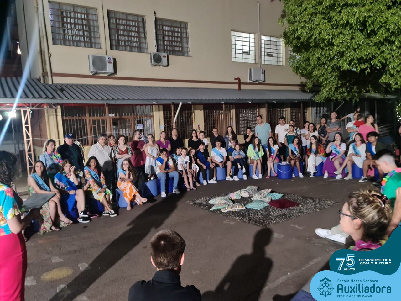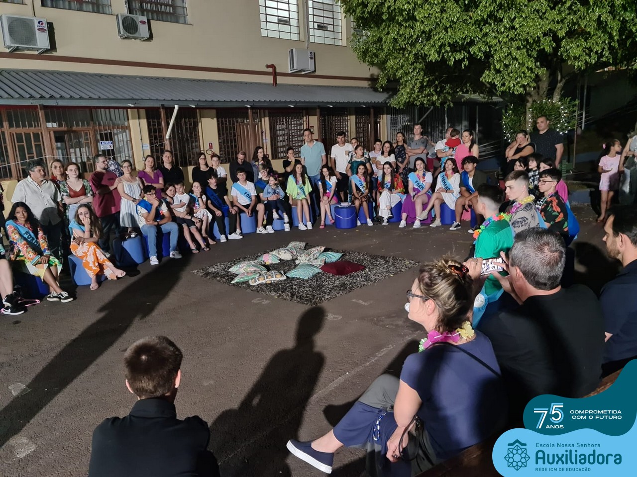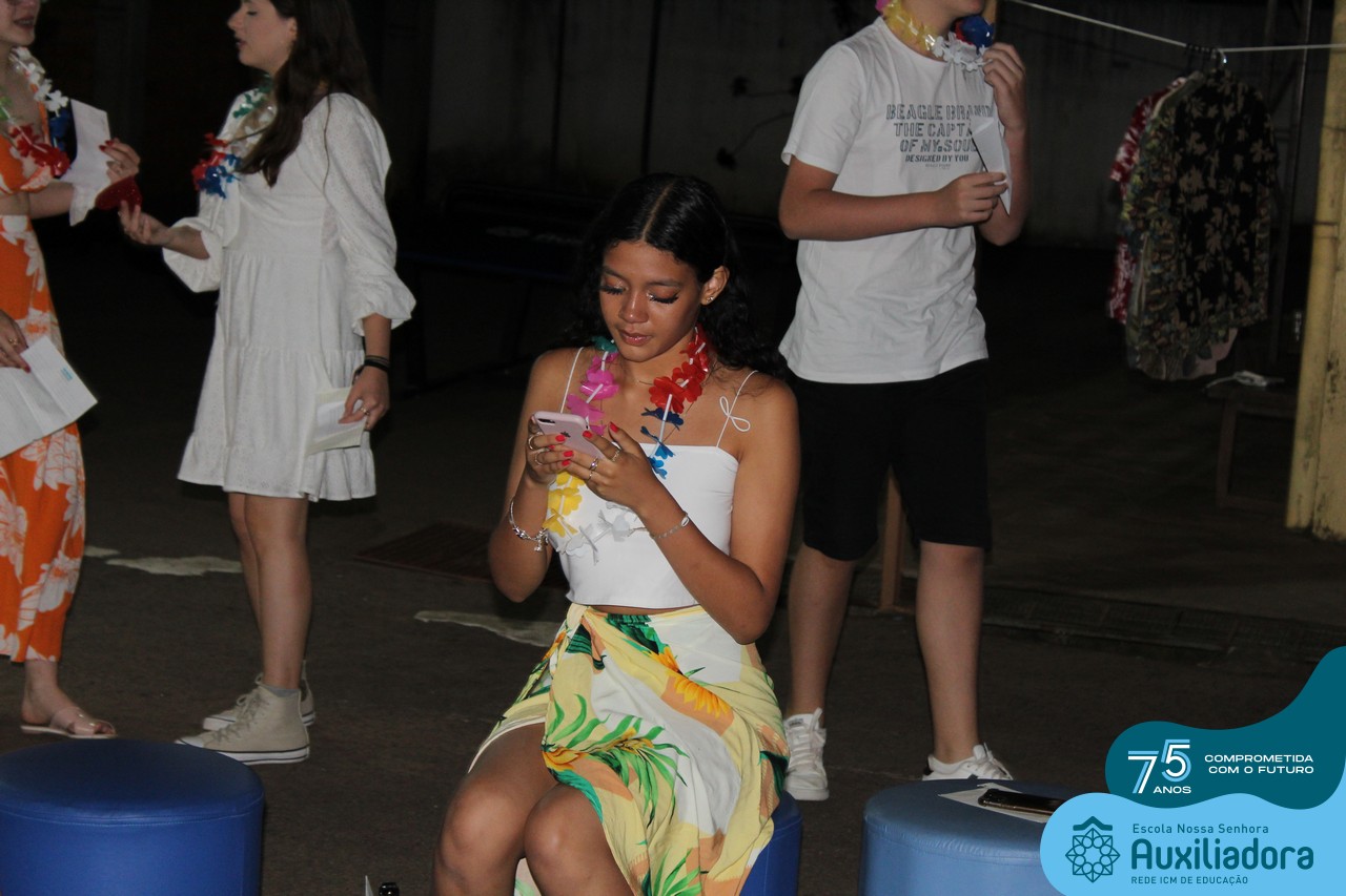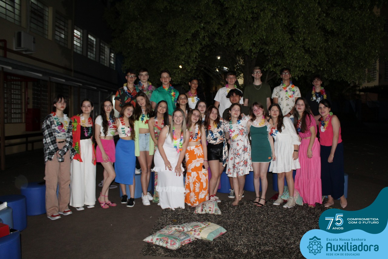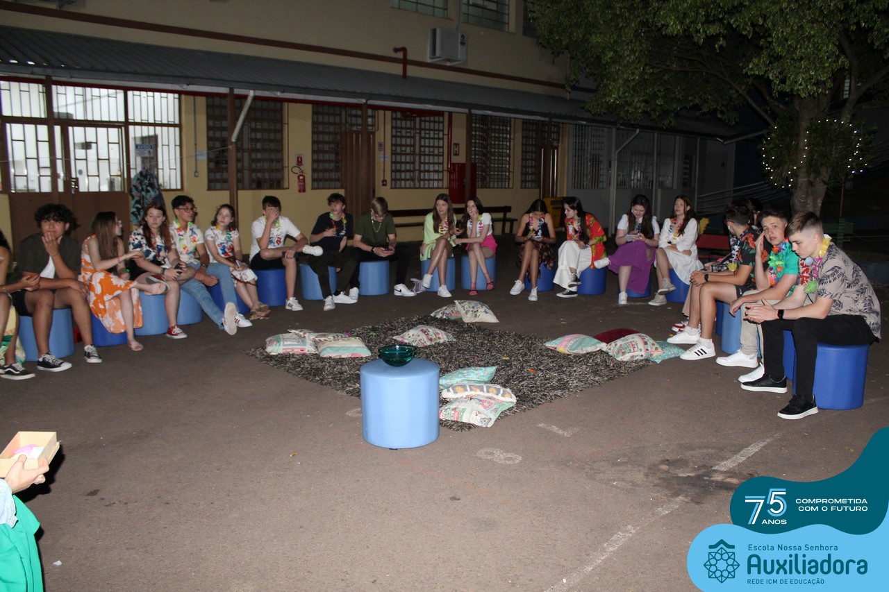 Em uma noite especial, alunos, professores e pais do 9°ano se reuniram para um Luau repleto de memória, sorrisos e música. Diante das atividades realizadas, os discente puderam relembrar momentos de suas histórias vividos na escola e, assim, compartilhar da magia que é conviver e se emocionar com a vida.