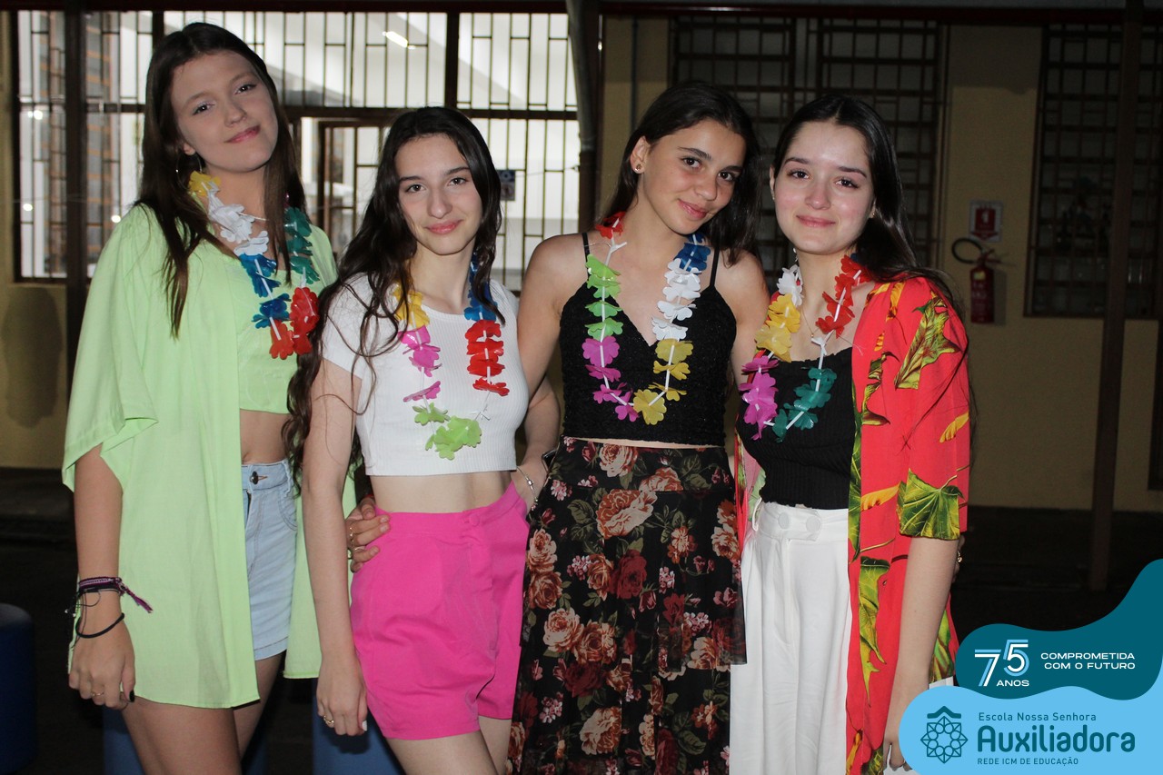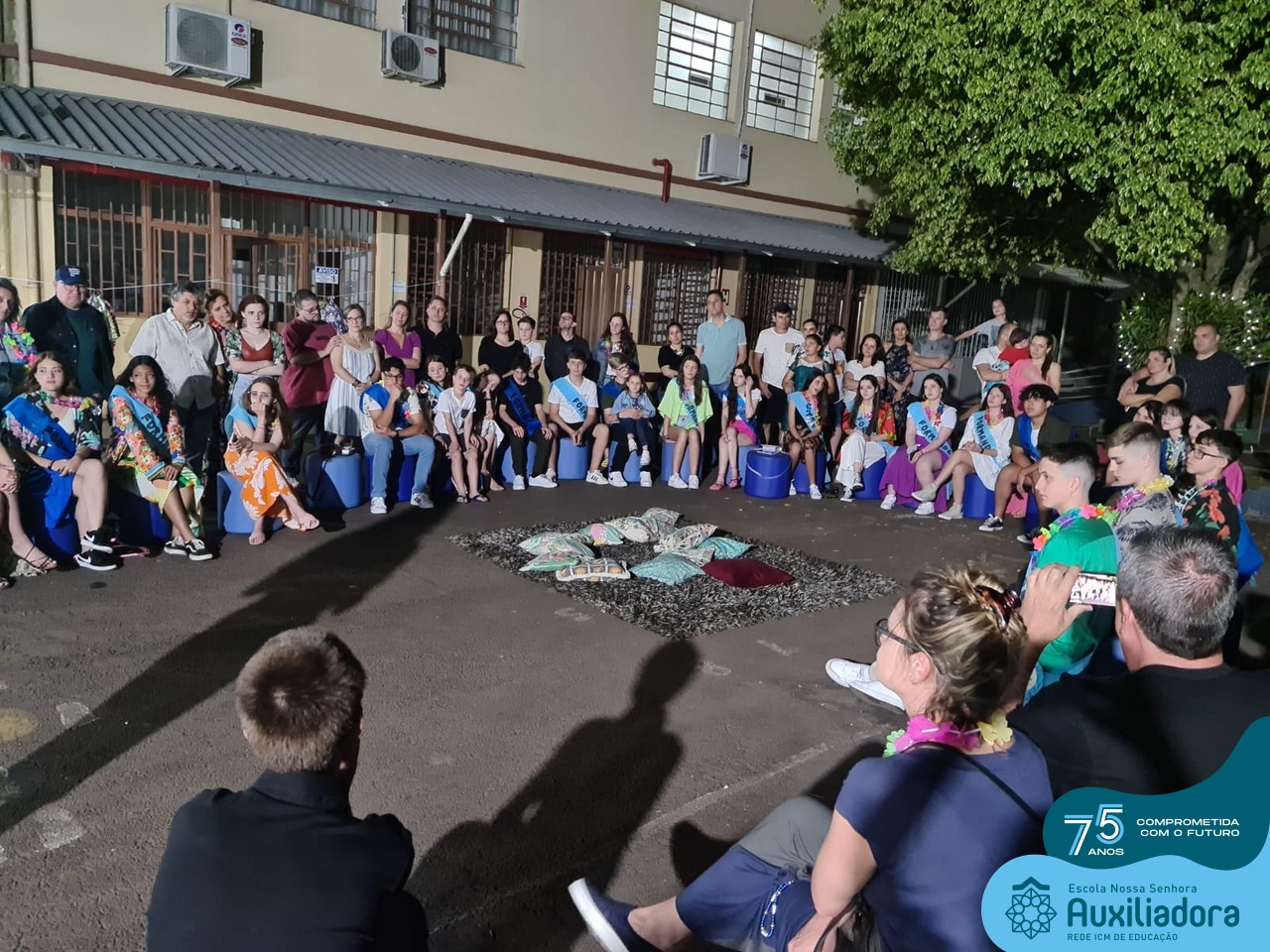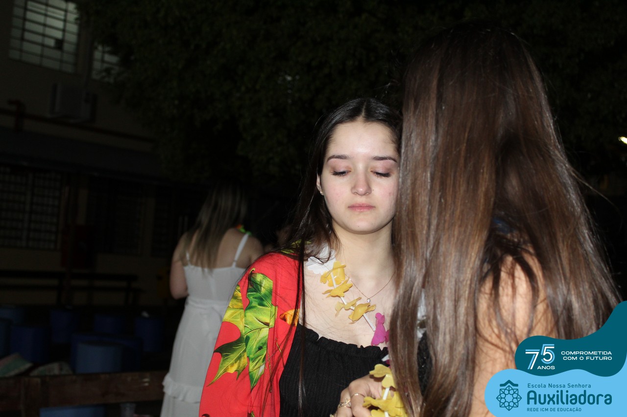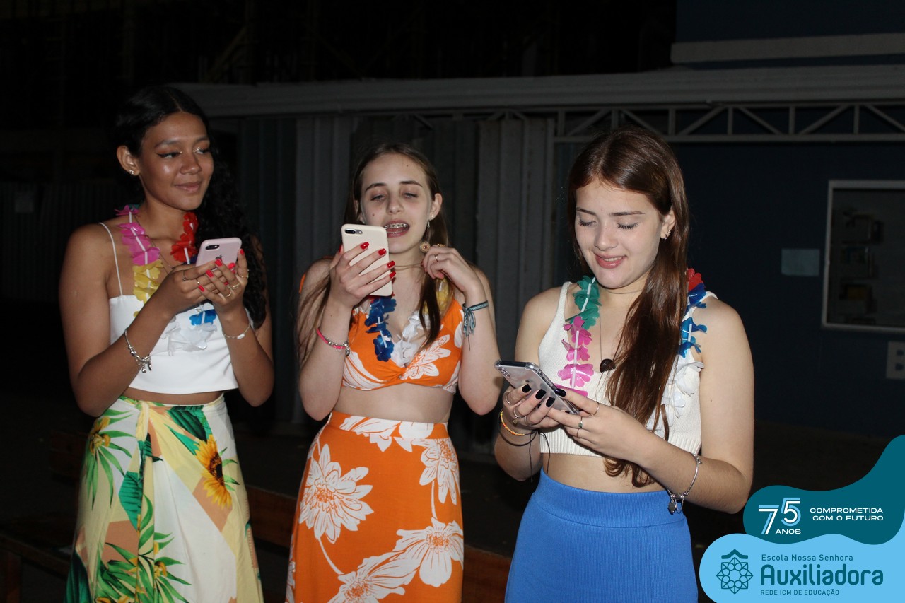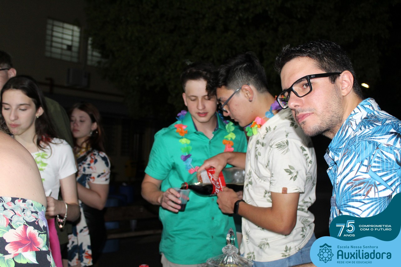 Em uma noite especial, alunos, professores e pais do 9°ano se reuniram para um Luau repleto de memória, sorrisos e música. Diante das atividades realizadas, os discente puderam relembrar momentos de suas histórias vividos na escola e, assim, compartilhar da magia que é conviver e se emocionar com a vida.