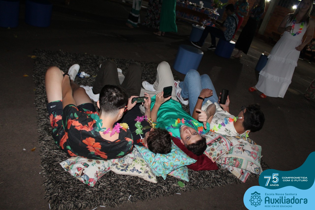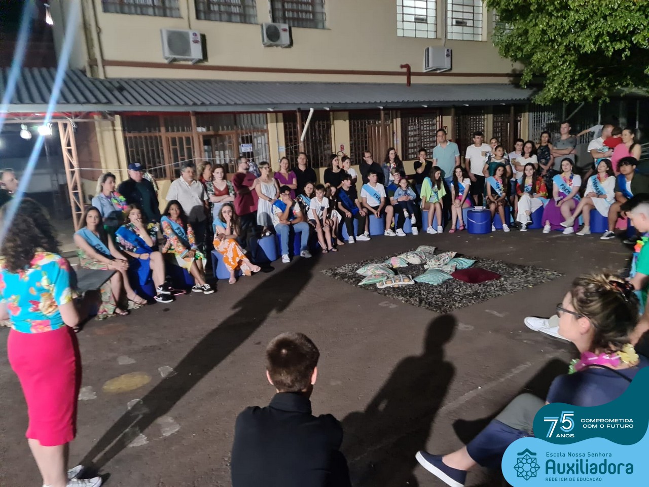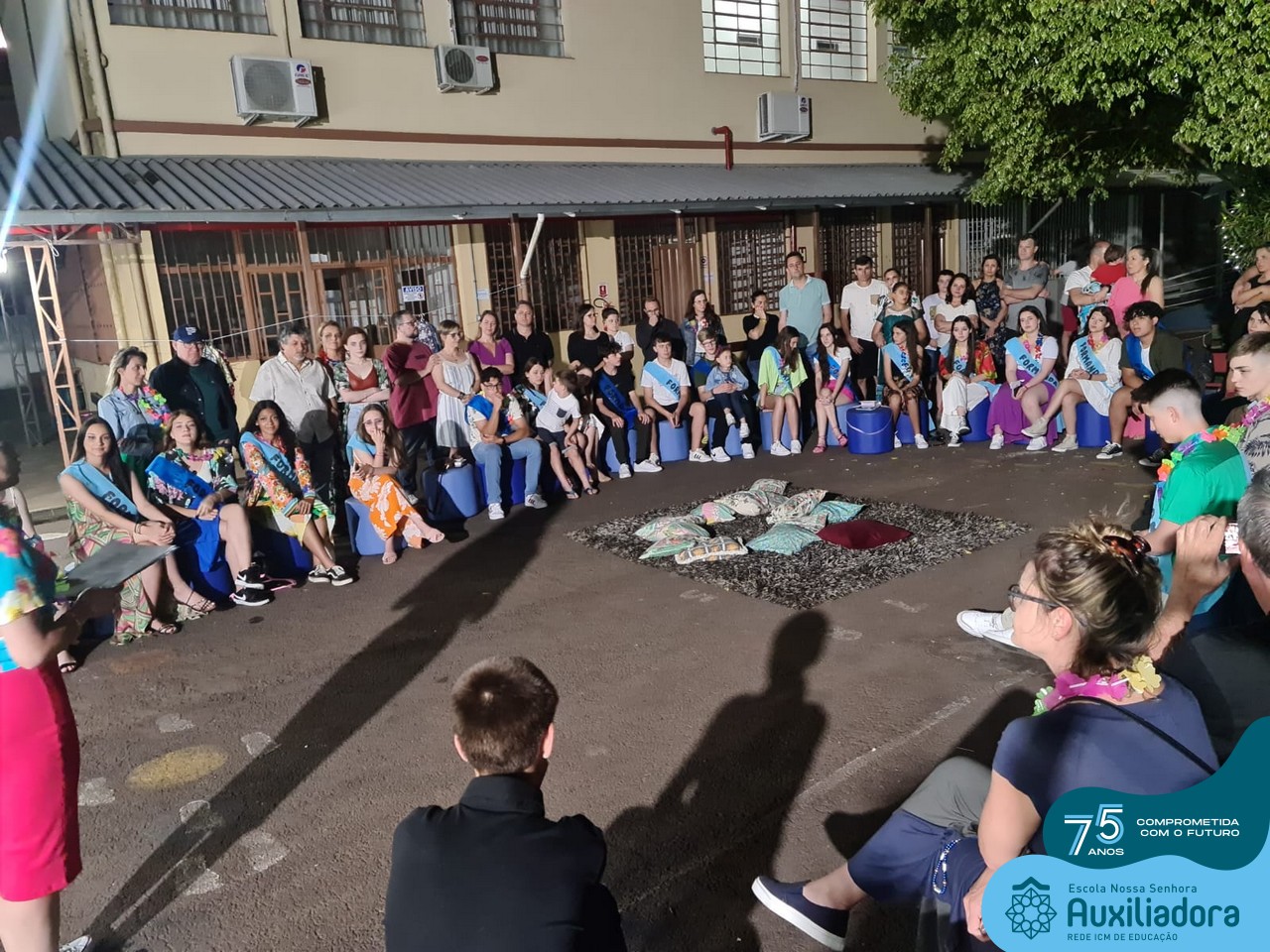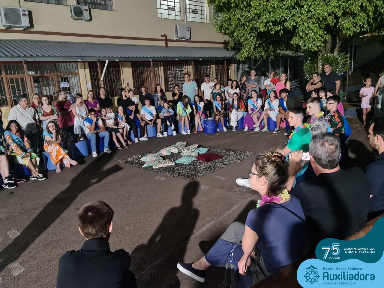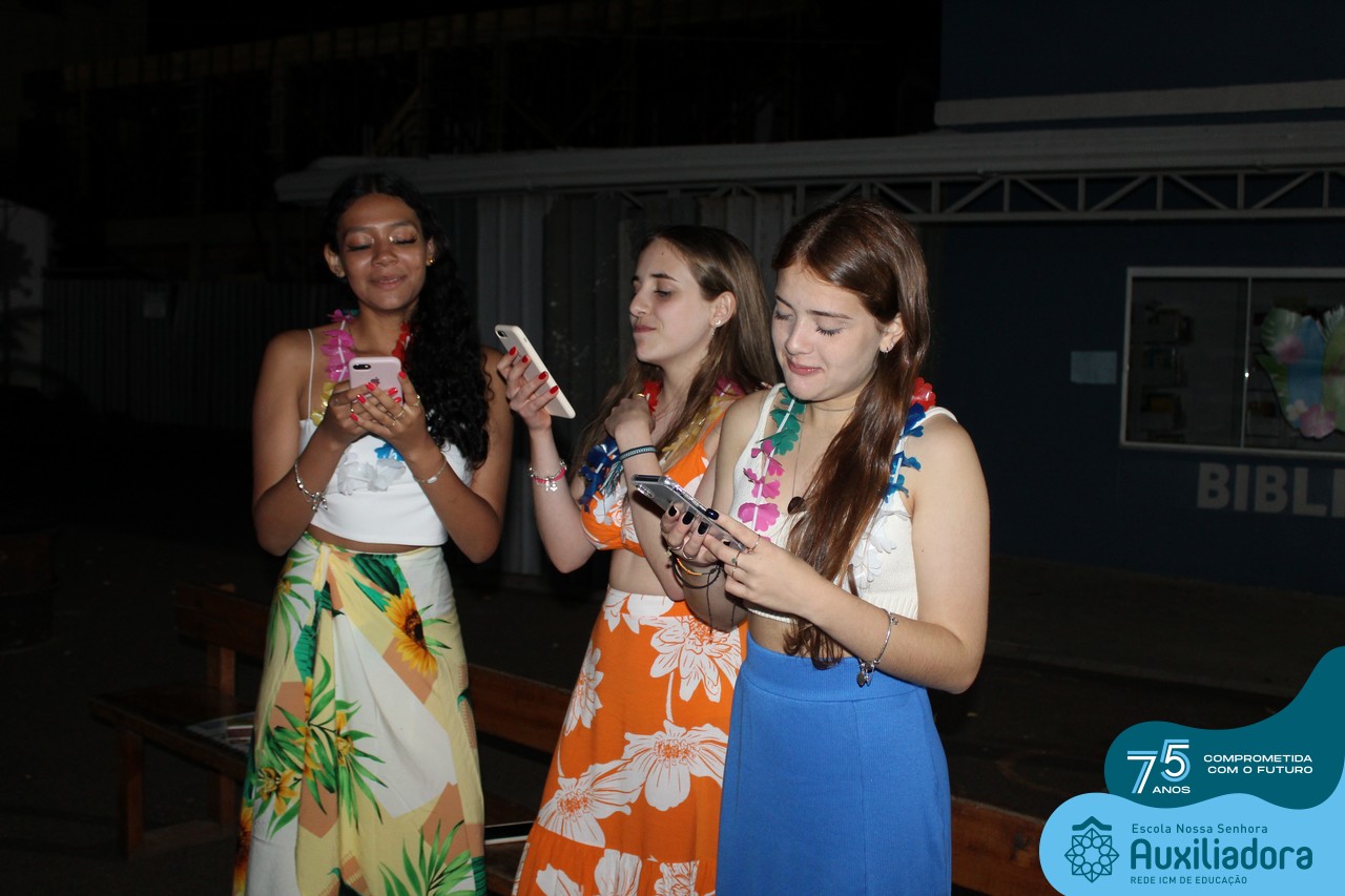 Em uma noite especial, alunos, professores e pais do 9°ano se reuniram para um Luau repleto de memória, sorrisos e música. Diante das atividades realizadas, os discente puderam relembrar momentos de suas histórias vividos na escola e, assim, compartilhar da magia que é conviver e se emocionar com a vida.