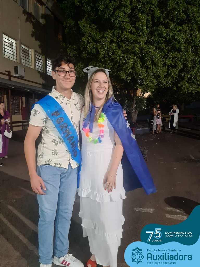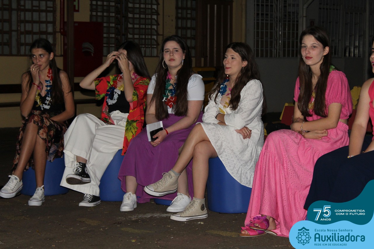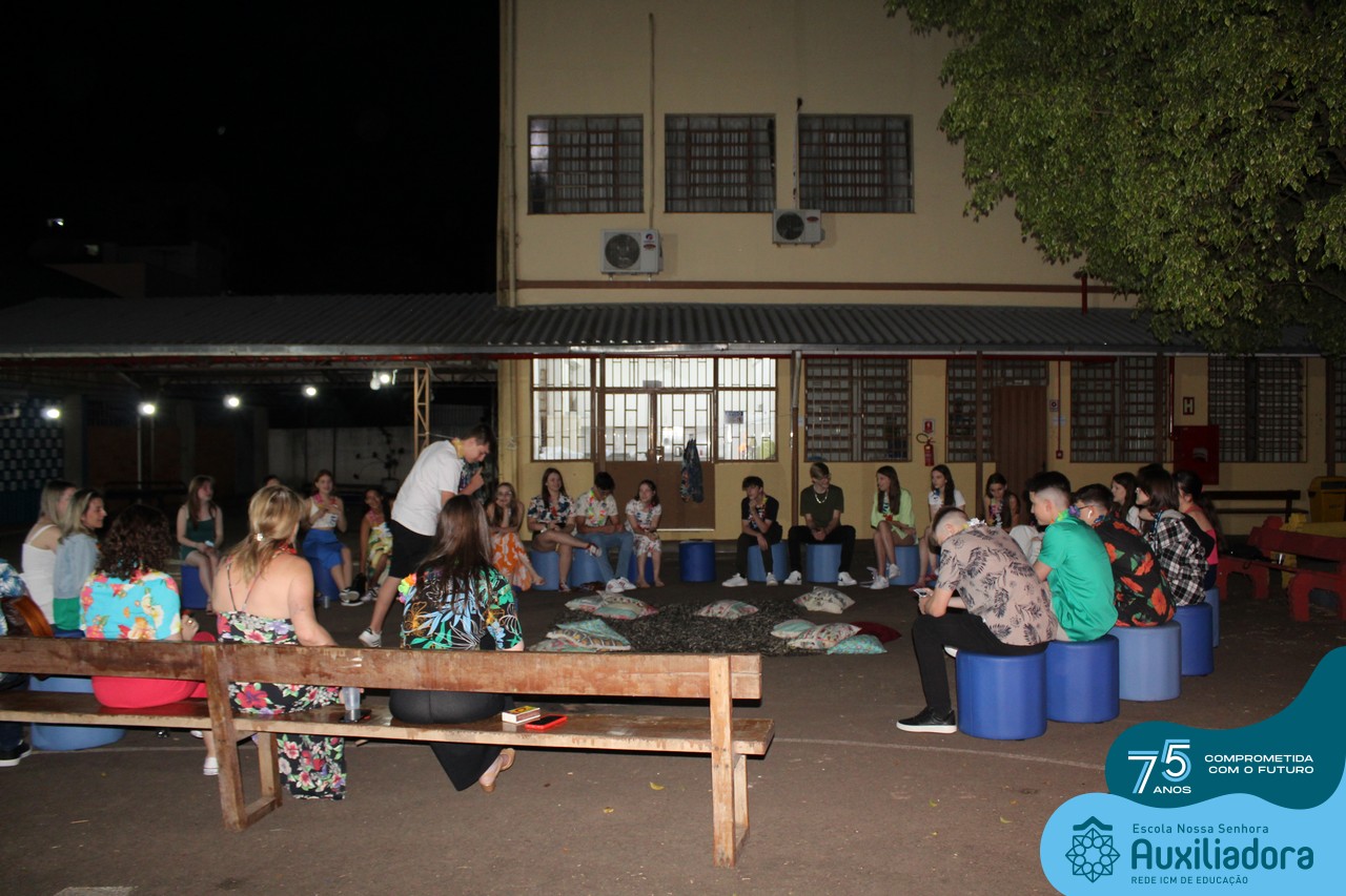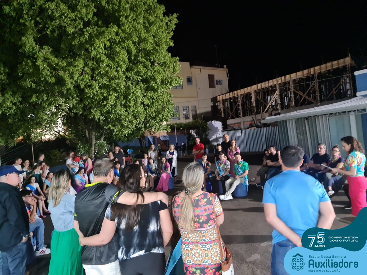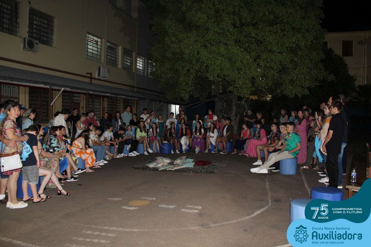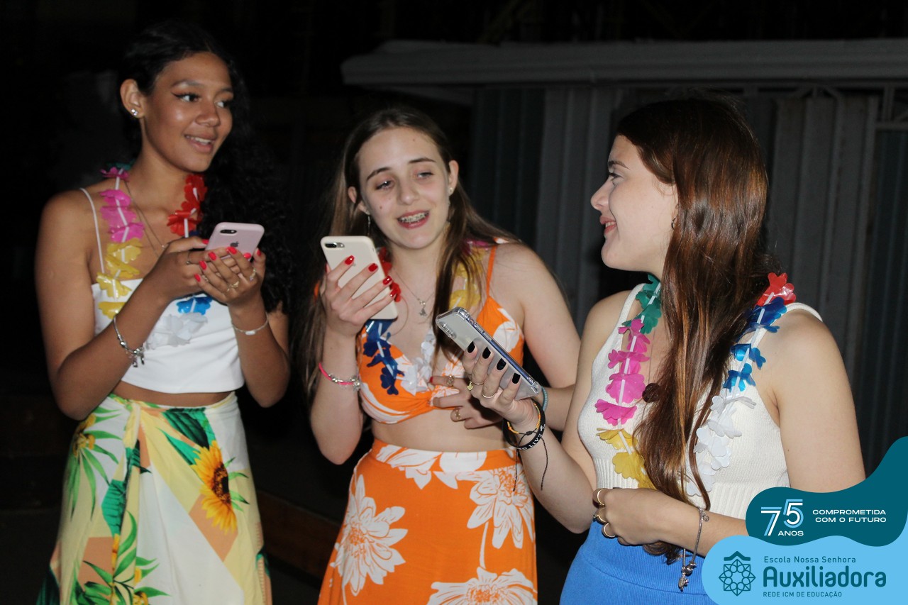 Em uma noite especial, alunos, professores e pais do 9°ano se reuniram para um Luau repleto de memória, sorrisos e música. Diante das atividades realizadas, os discente puderam relembrar momentos de suas histórias vividos na escola e, assim, compartilhar da magia que é conviver e se emocionar com a vida.