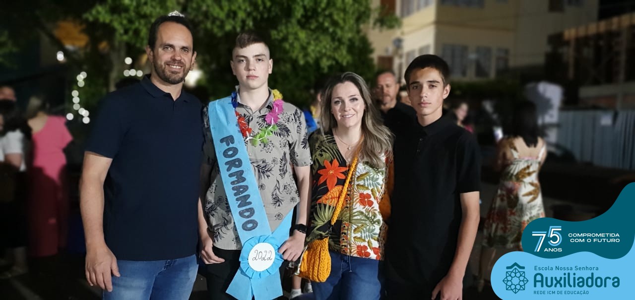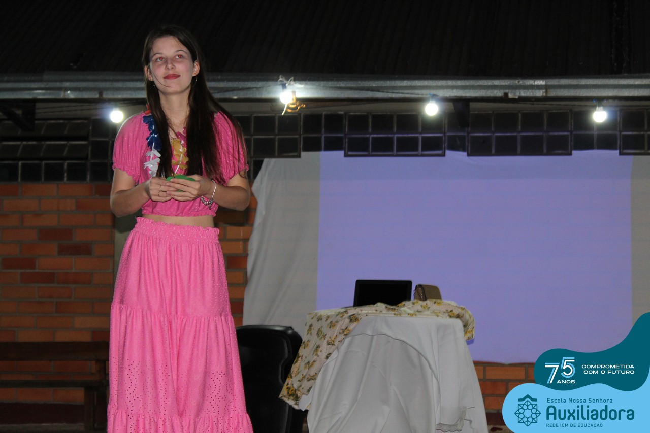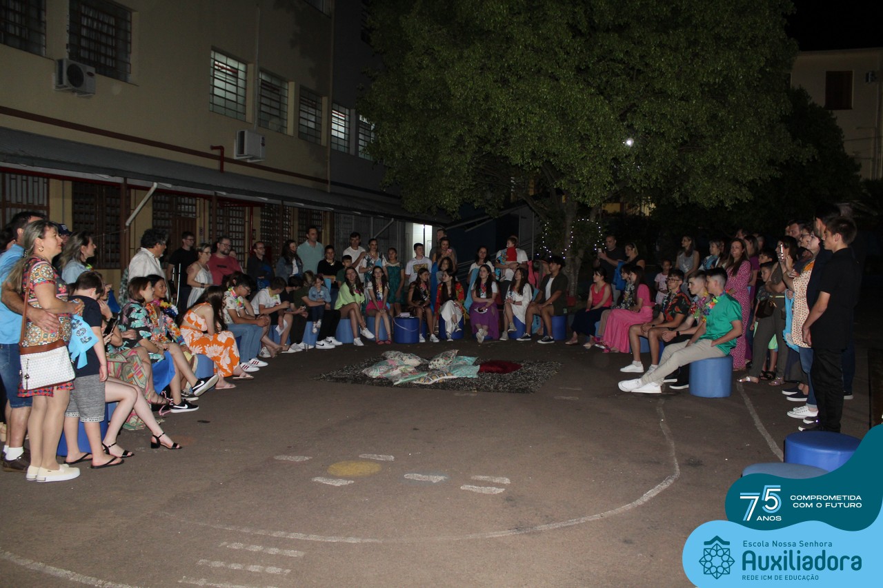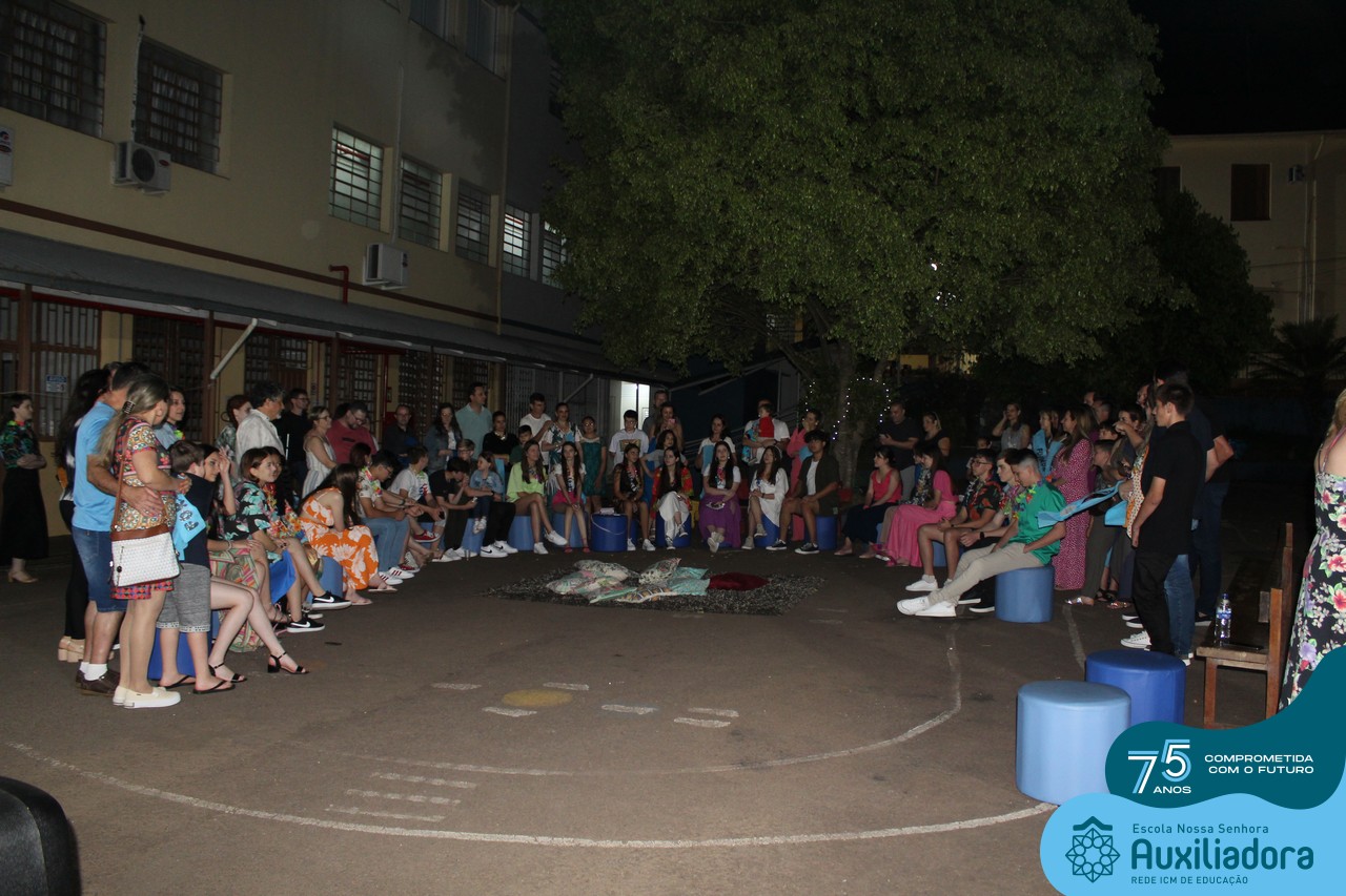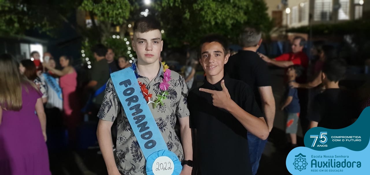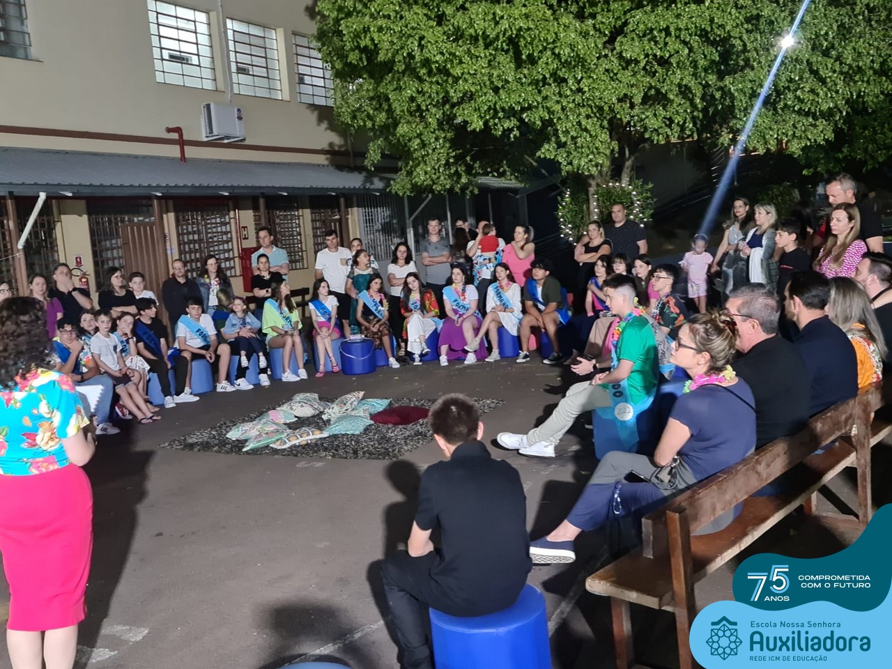 Em uma noite especial, alunos, professores e pais do 9°ano se reuniram para um Luau repleto de memória, sorrisos e música. Diante das atividades realizadas, os discente puderam relembrar momentos de suas histórias vividos na escola e, assim, compartilhar da magia que é conviver e se emocionar com a vida.