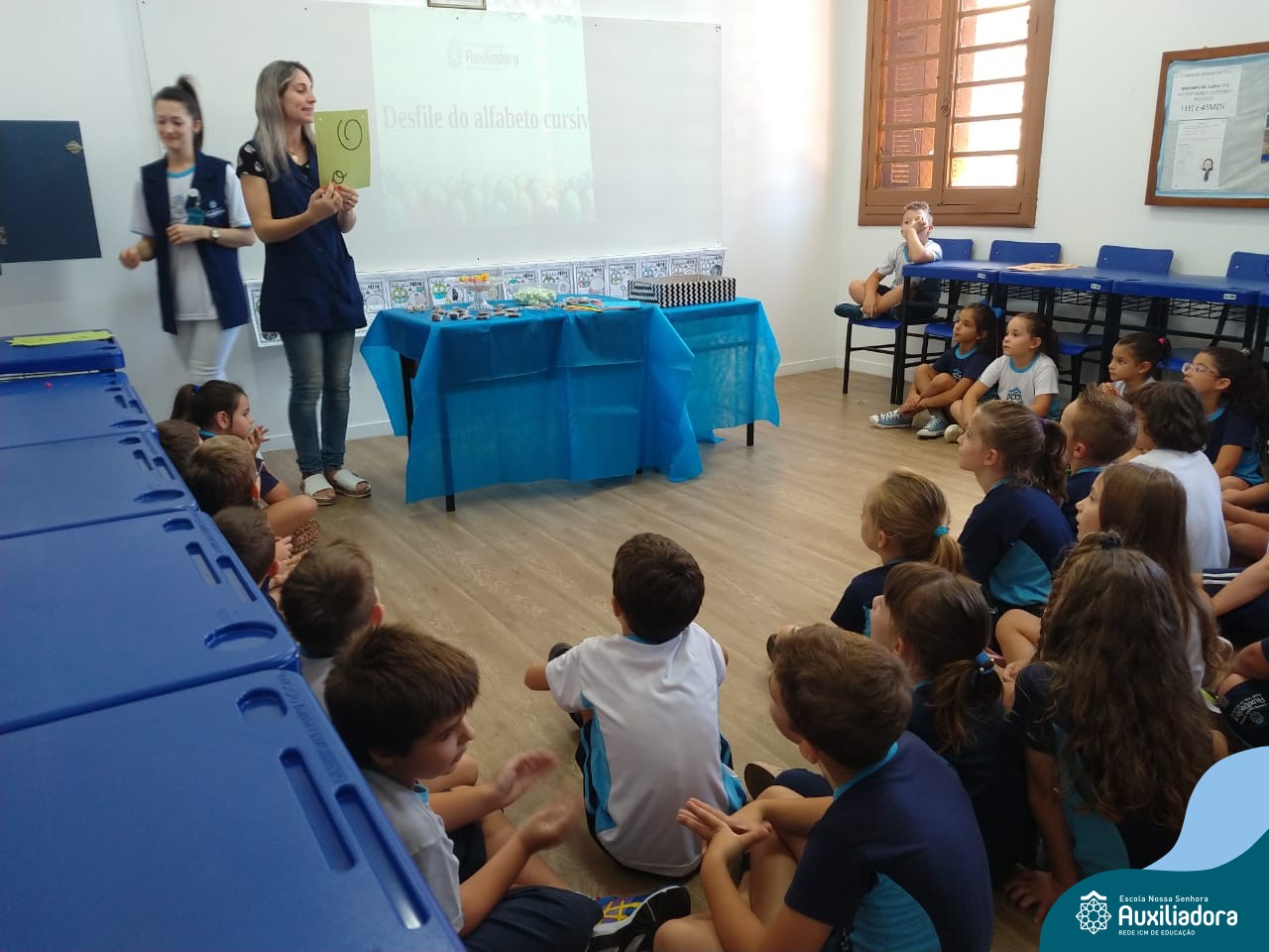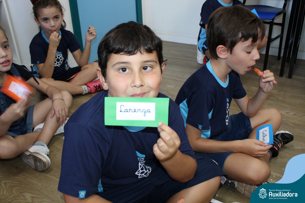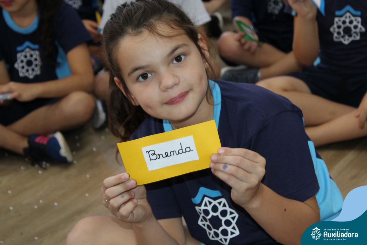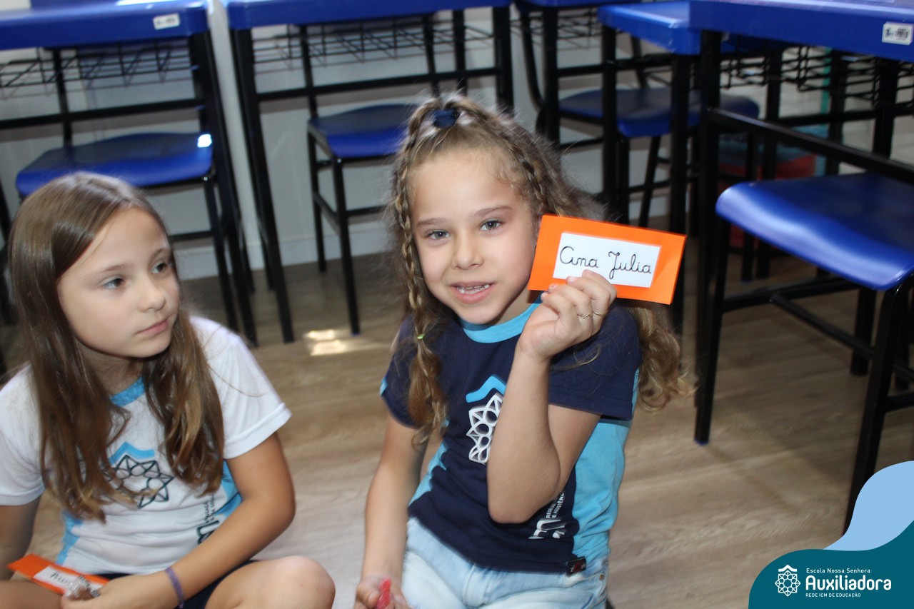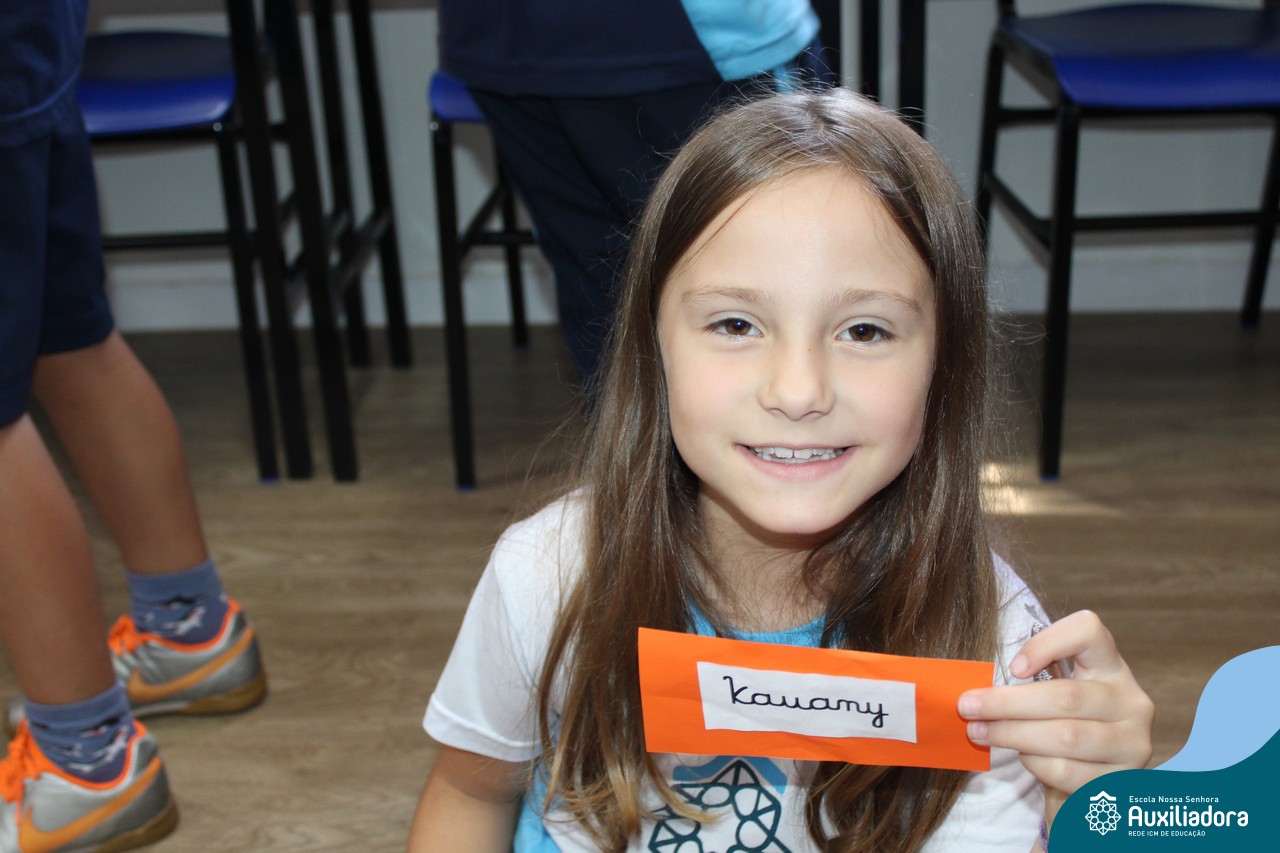 As turmas do 2° ano 21 e 22 estão se aventurando na descoberta da letra cursiva. A transição da letra palito para a letra cursiva aconteceu através de uma festa com brincadeiras e guloseimas.