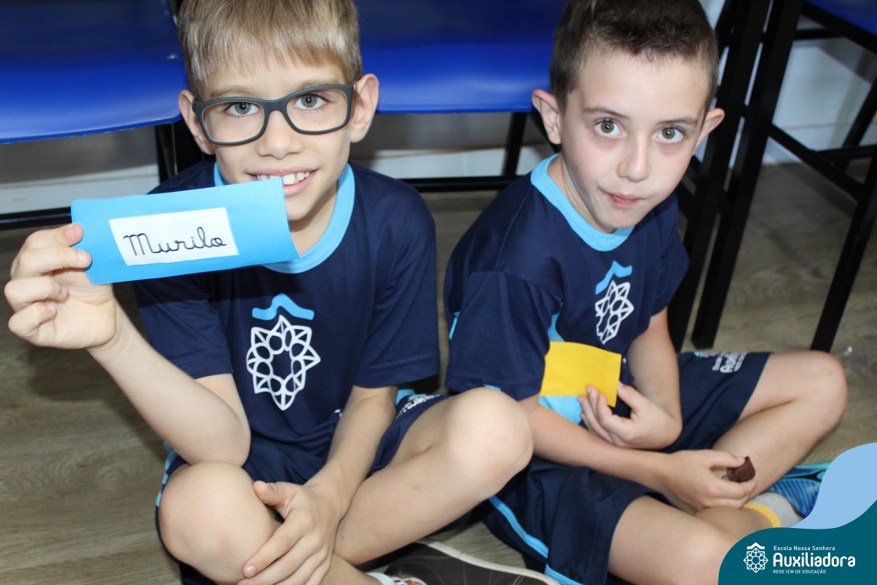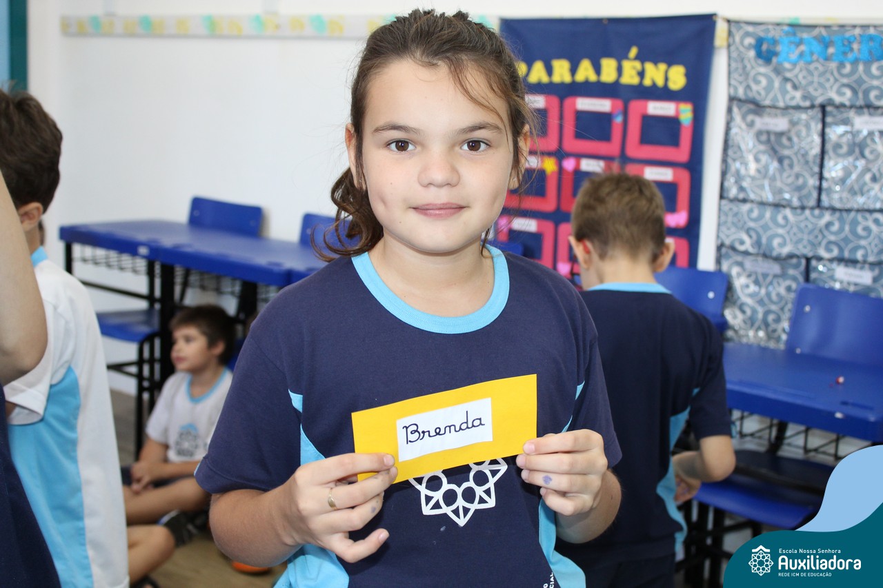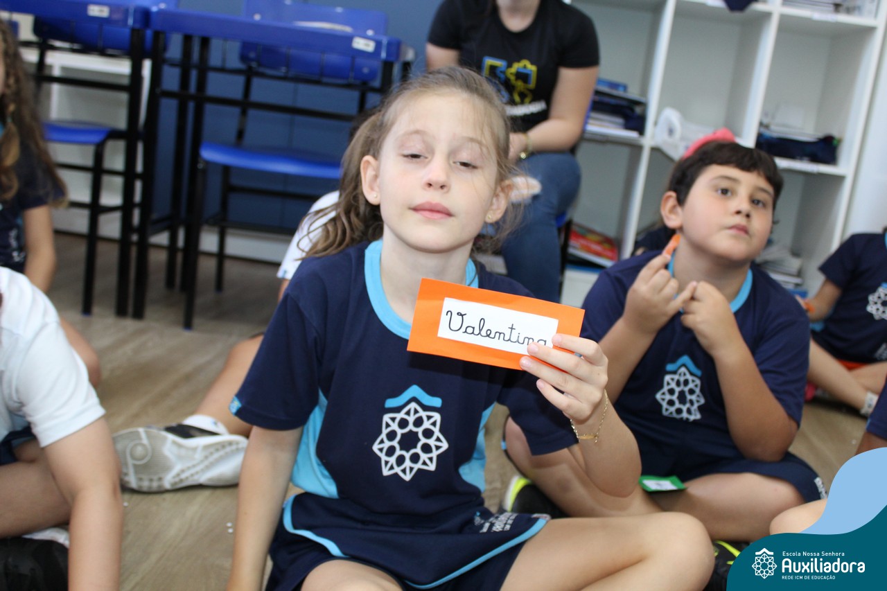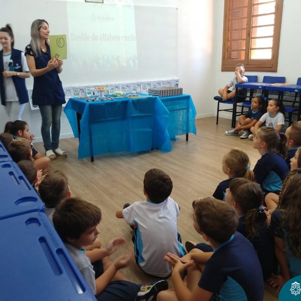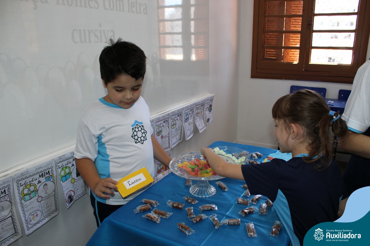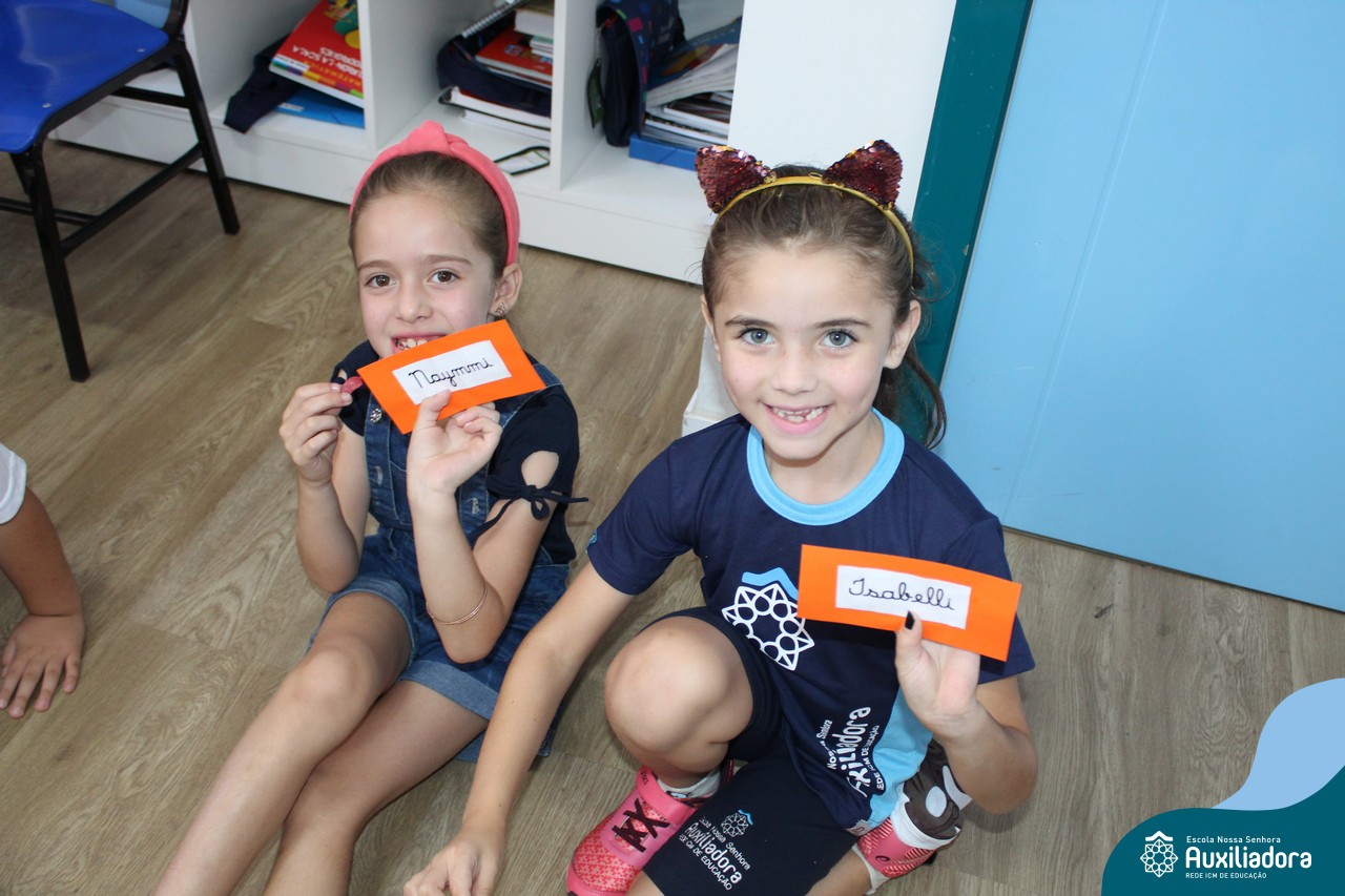 As turmas do 2° ano 21 e 22 estão se aventurando na descoberta da letra cursiva. A transição da letra palito para a letra cursiva aconteceu através de uma festa com brincadeiras e guloseimas.