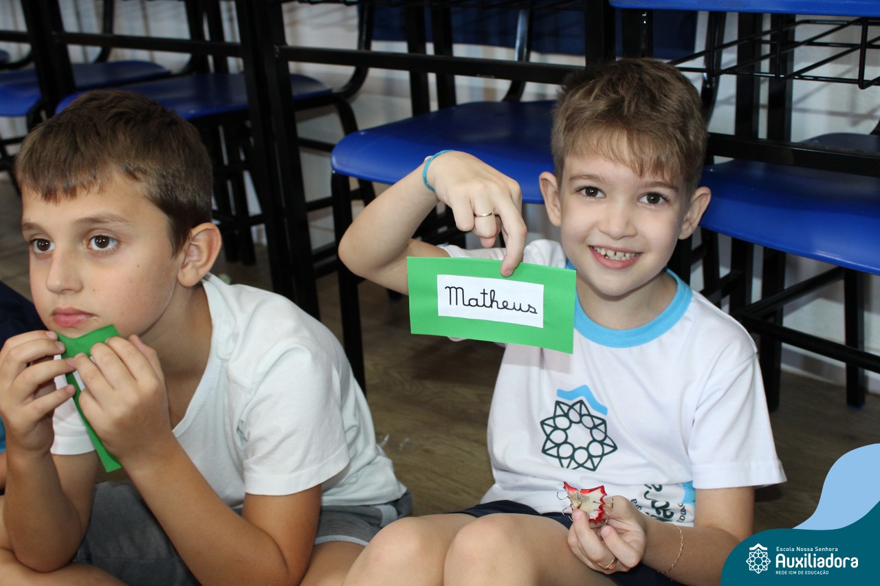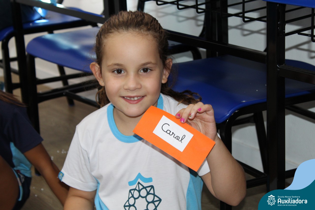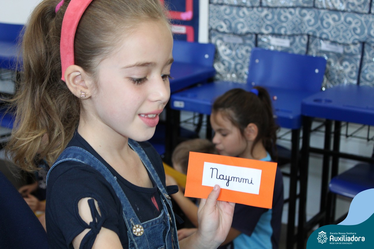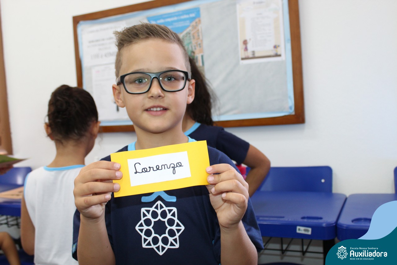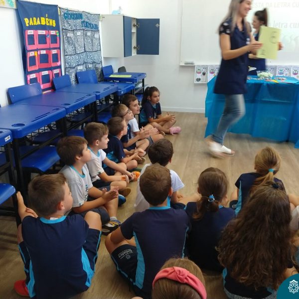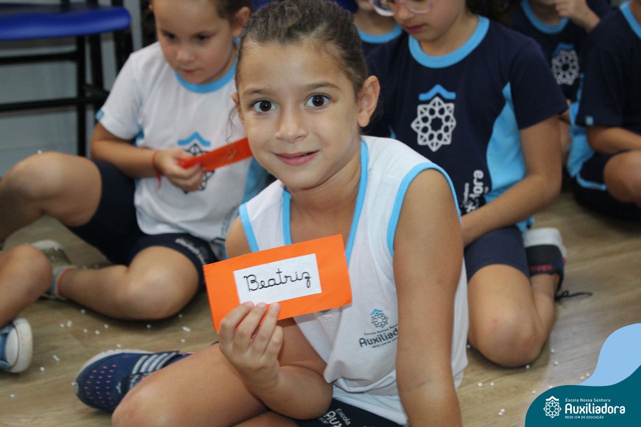 As turmas do 2° ano 21 e 22 estão se aventurando na descoberta da letra cursiva. A transição da letra palito para a letra cursiva aconteceu através de uma festa com brincadeiras e guloseimas.
