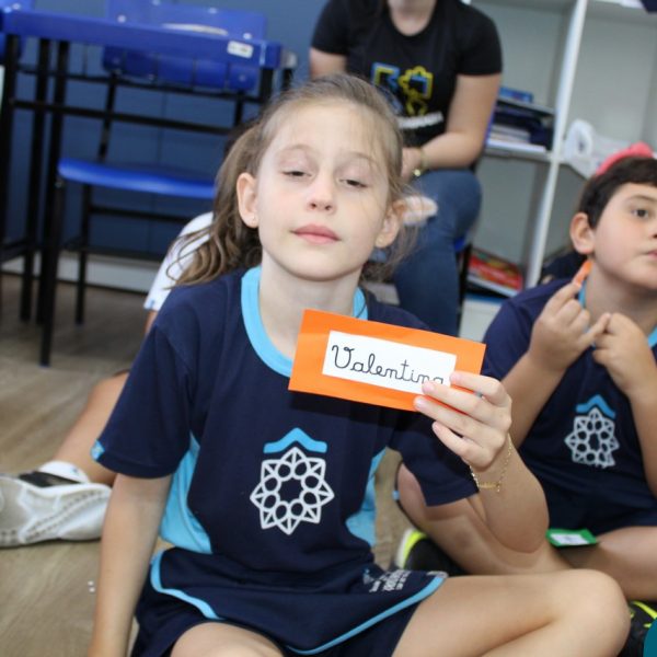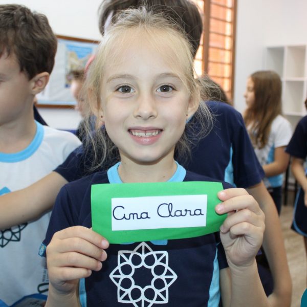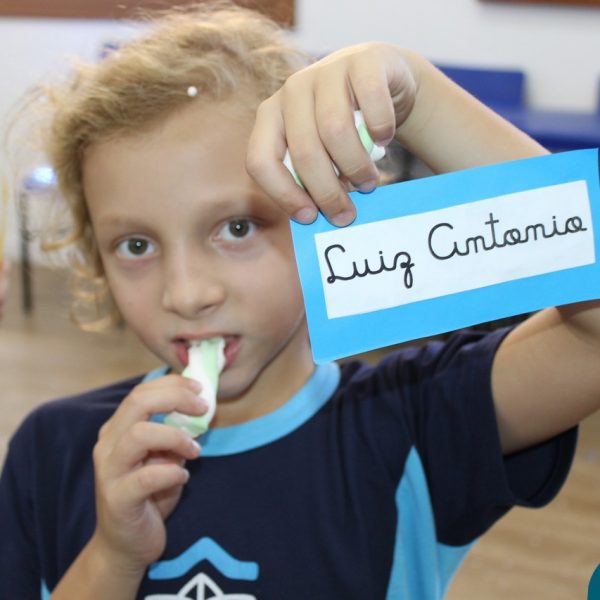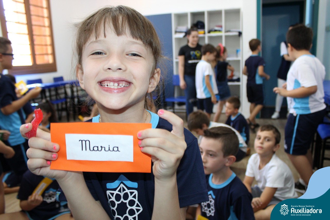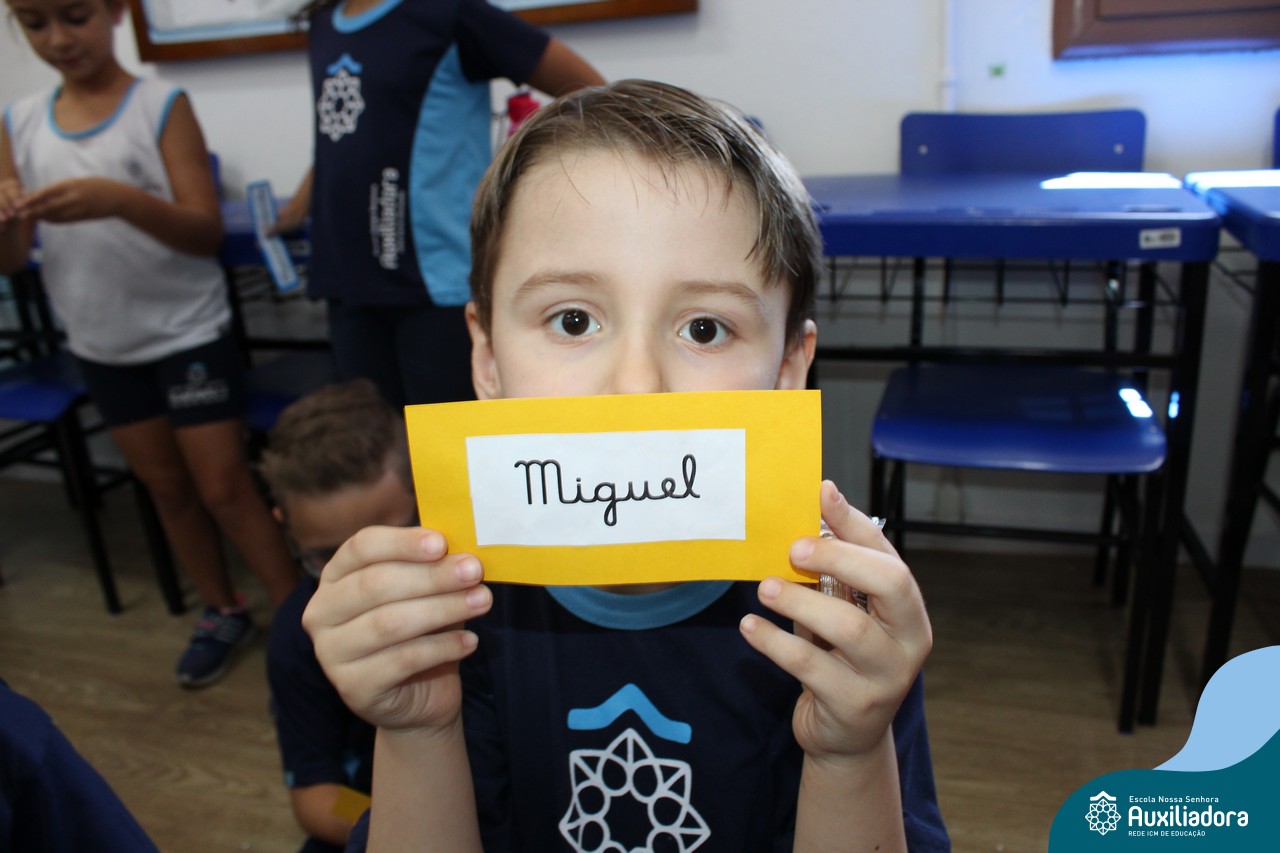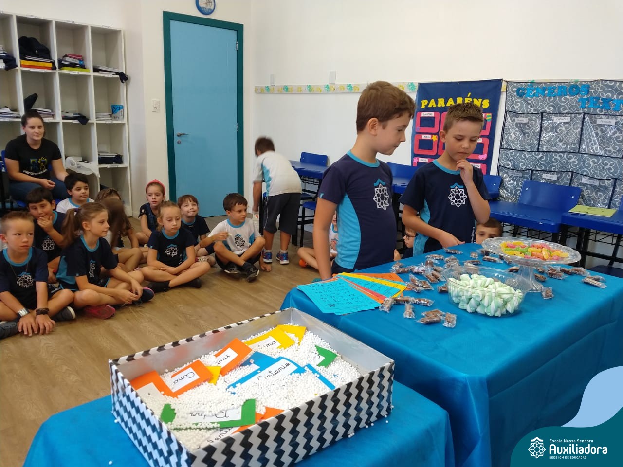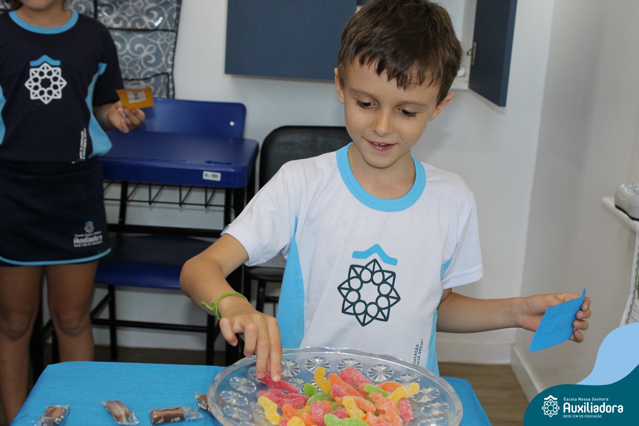 As turmas do 2° ano 21 e 22 estão se aventurando na descoberta da letra cursiva. A transição da letra palito para a letra cursiva aconteceu através de uma festa com brincadeiras e guloseimas.