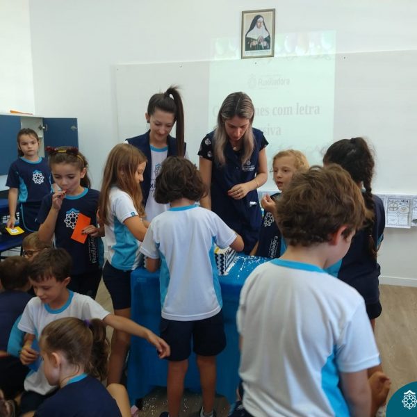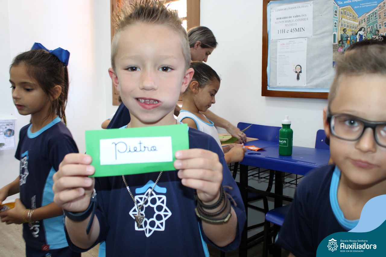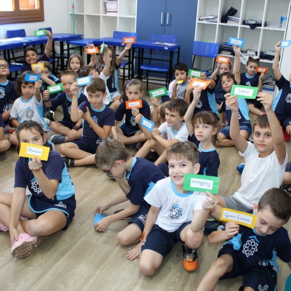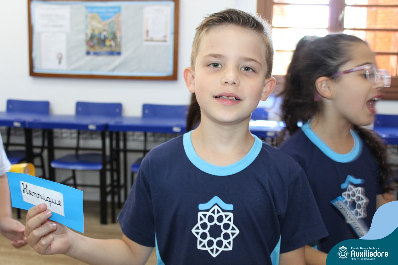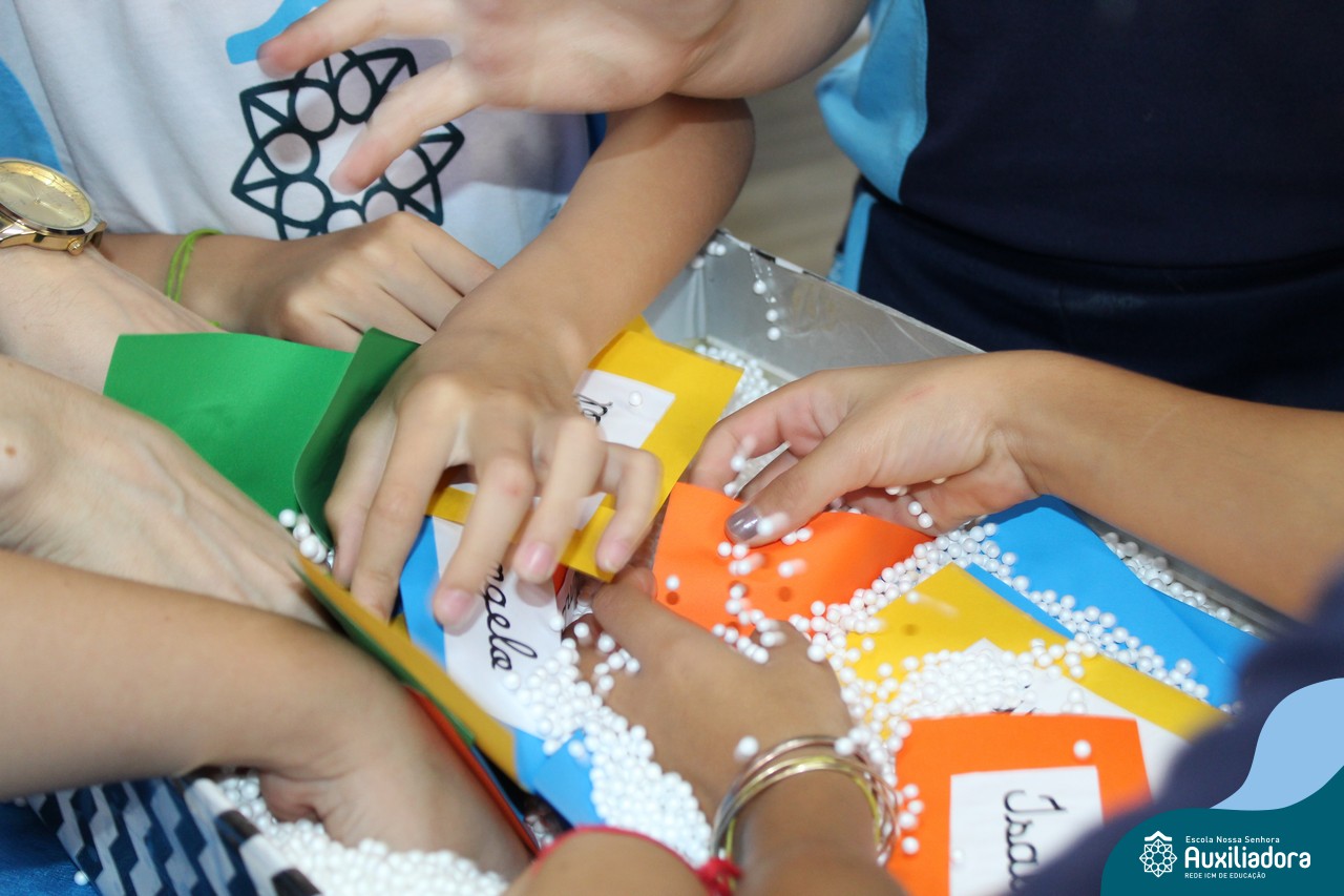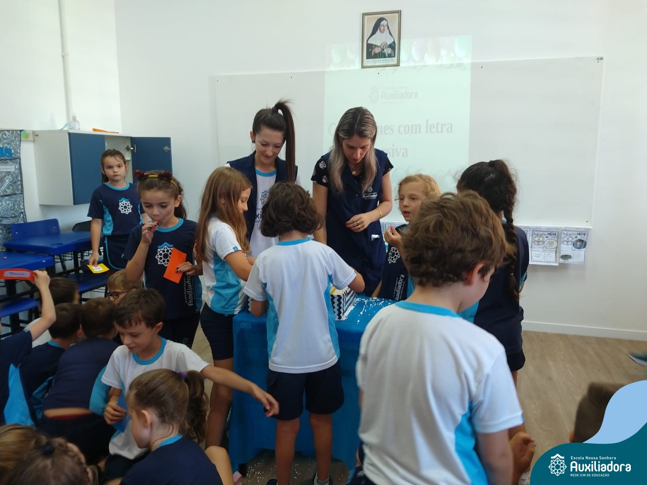 As turmas do 2° ano 21 e 22 estão se aventurando na descoberta da letra cursiva. A transição da letra palito para a letra cursiva aconteceu através de uma festa com brincadeiras e guloseimas.