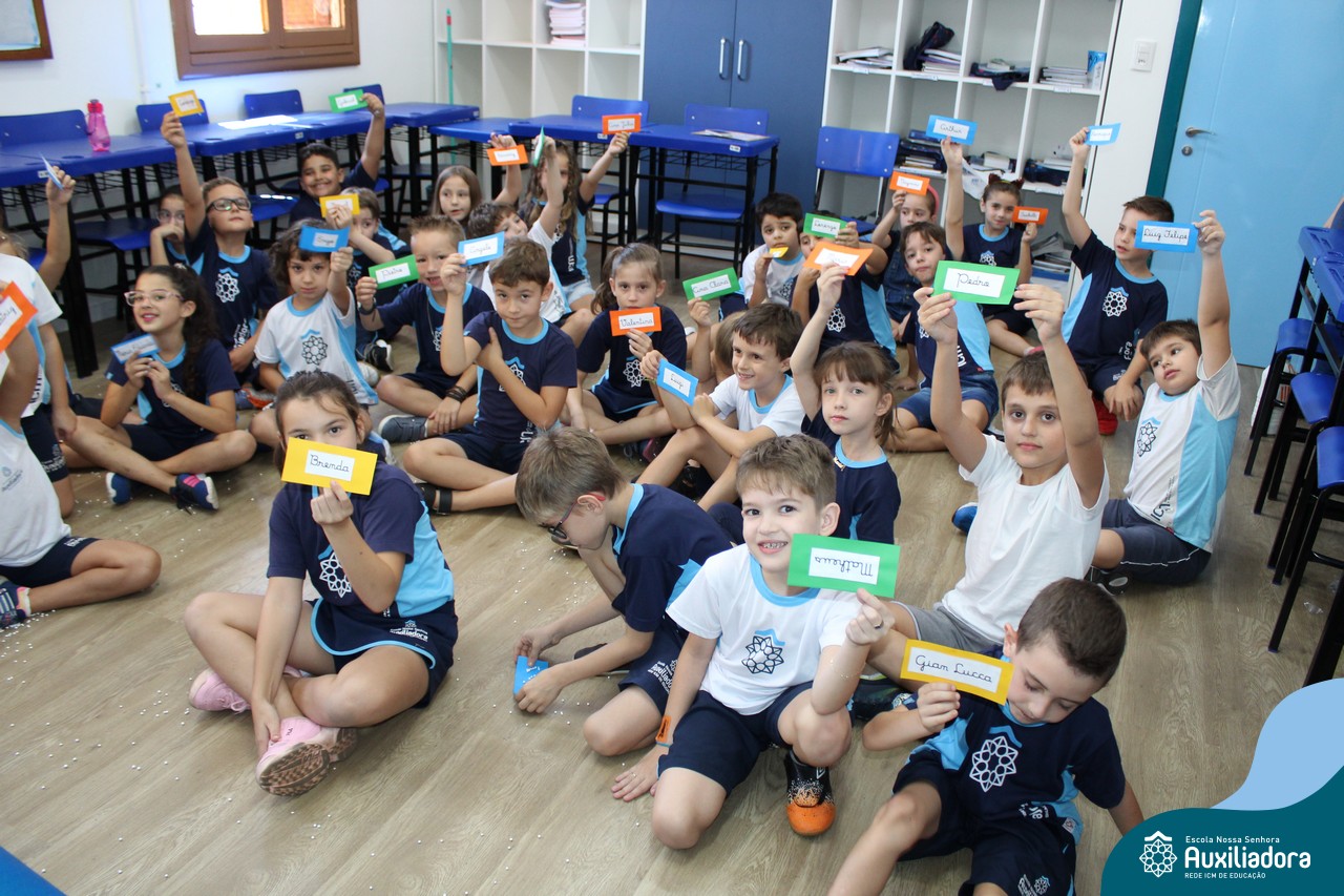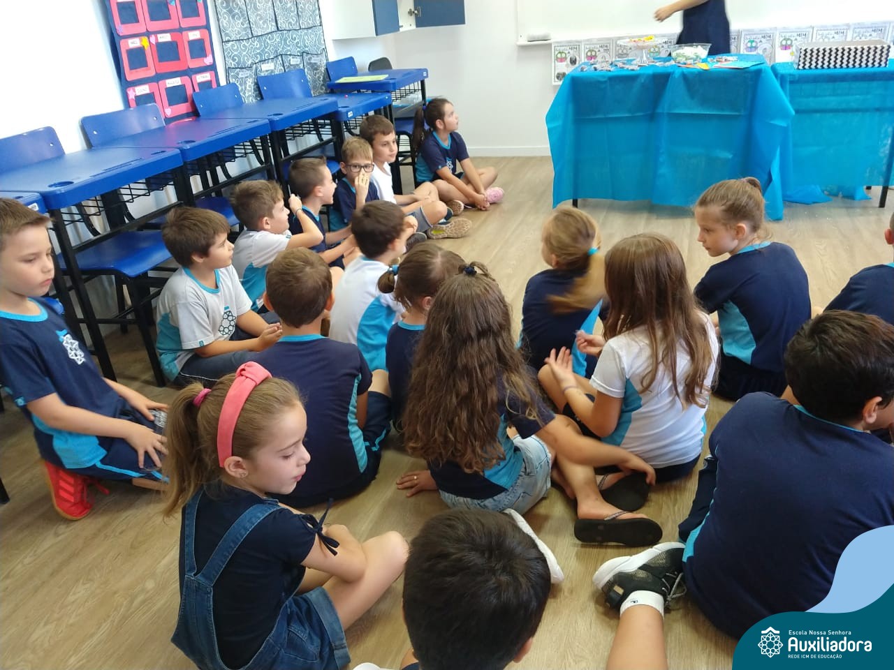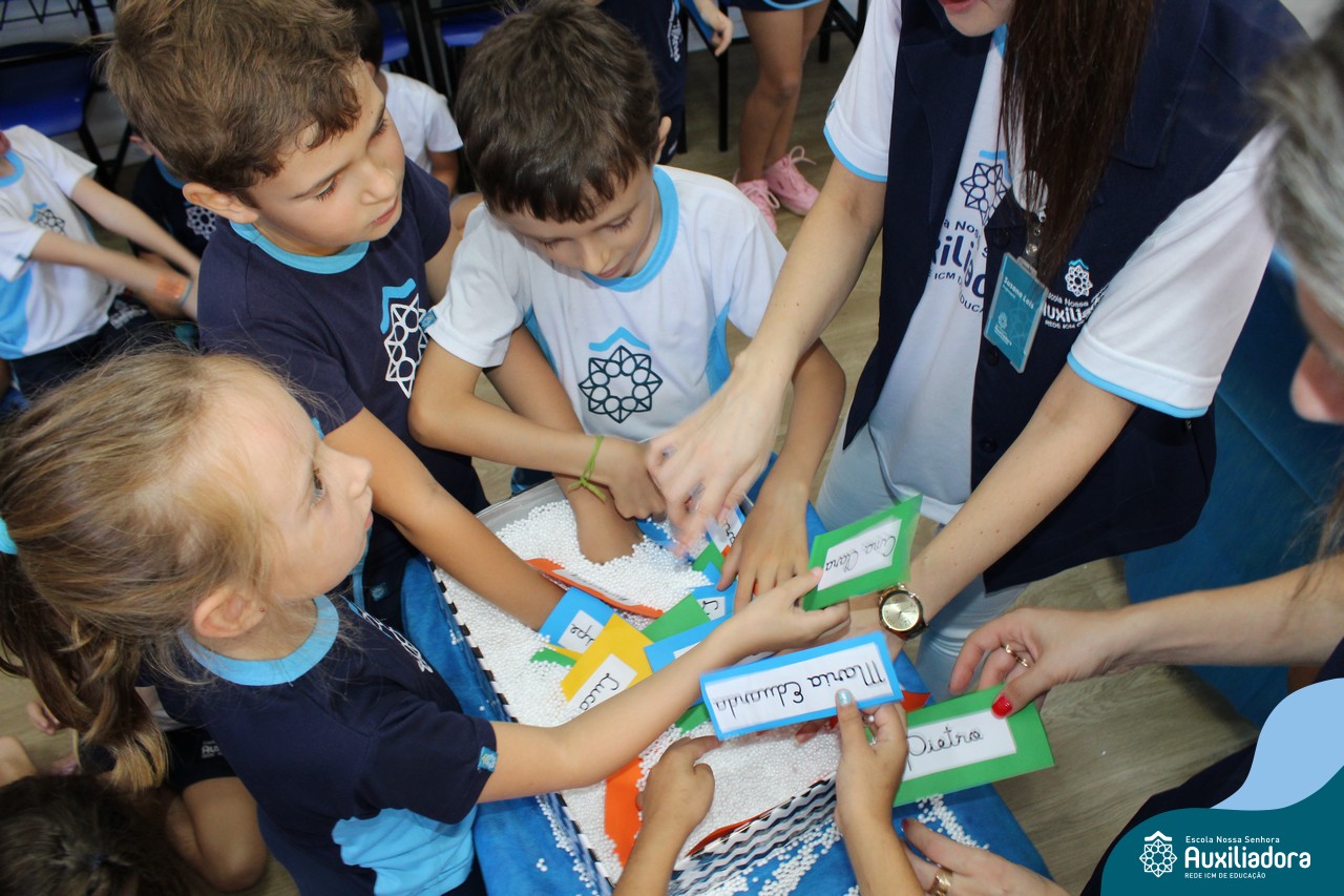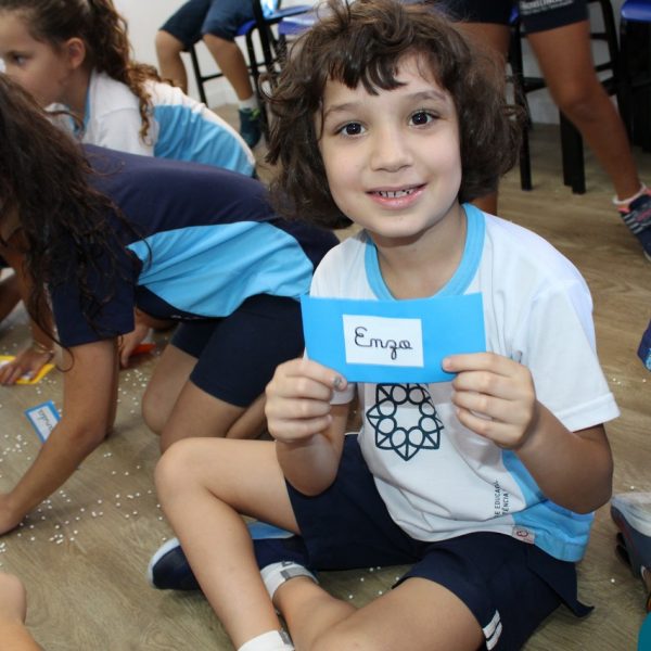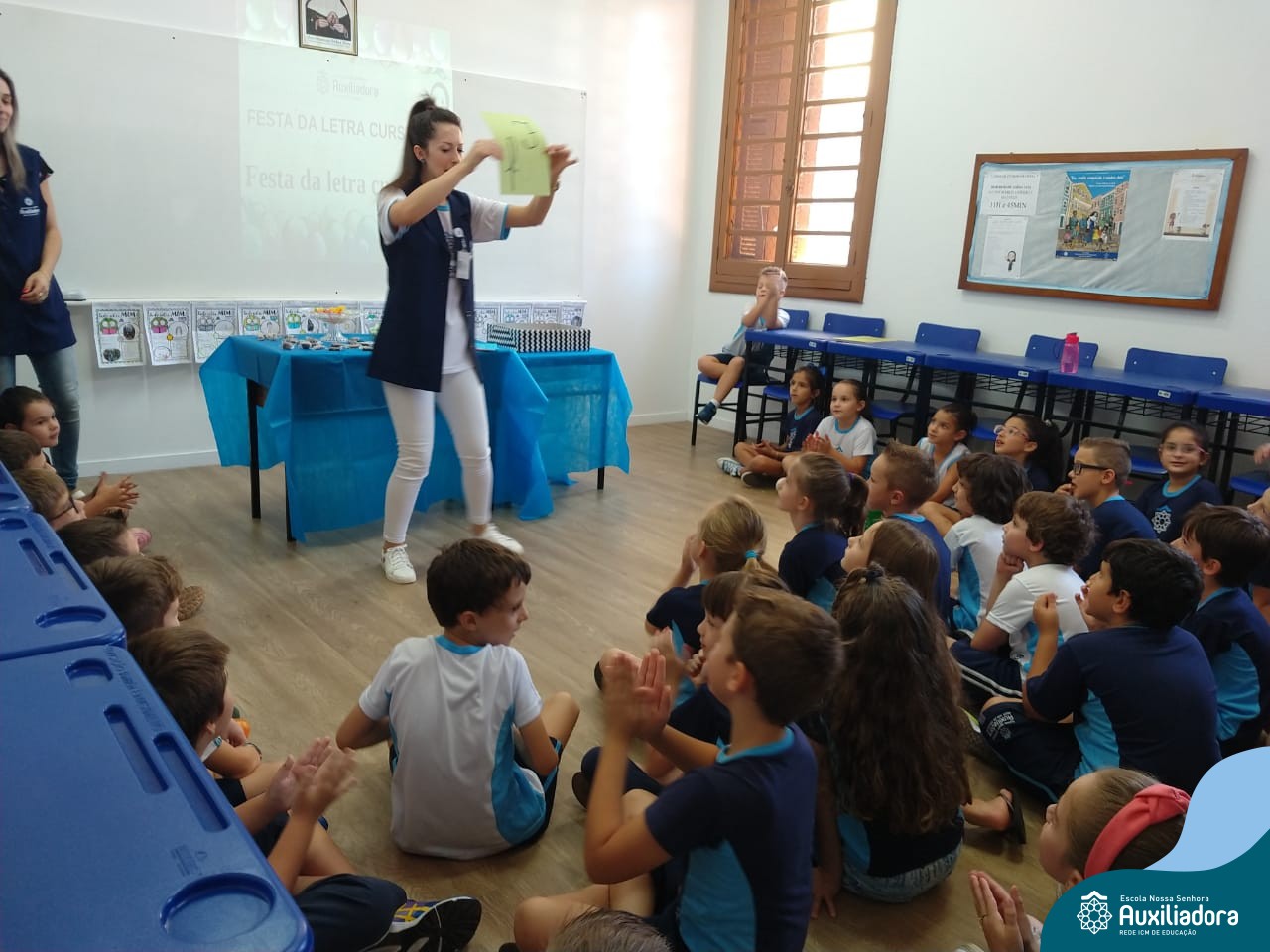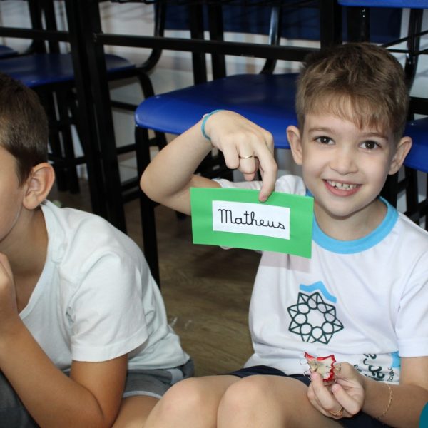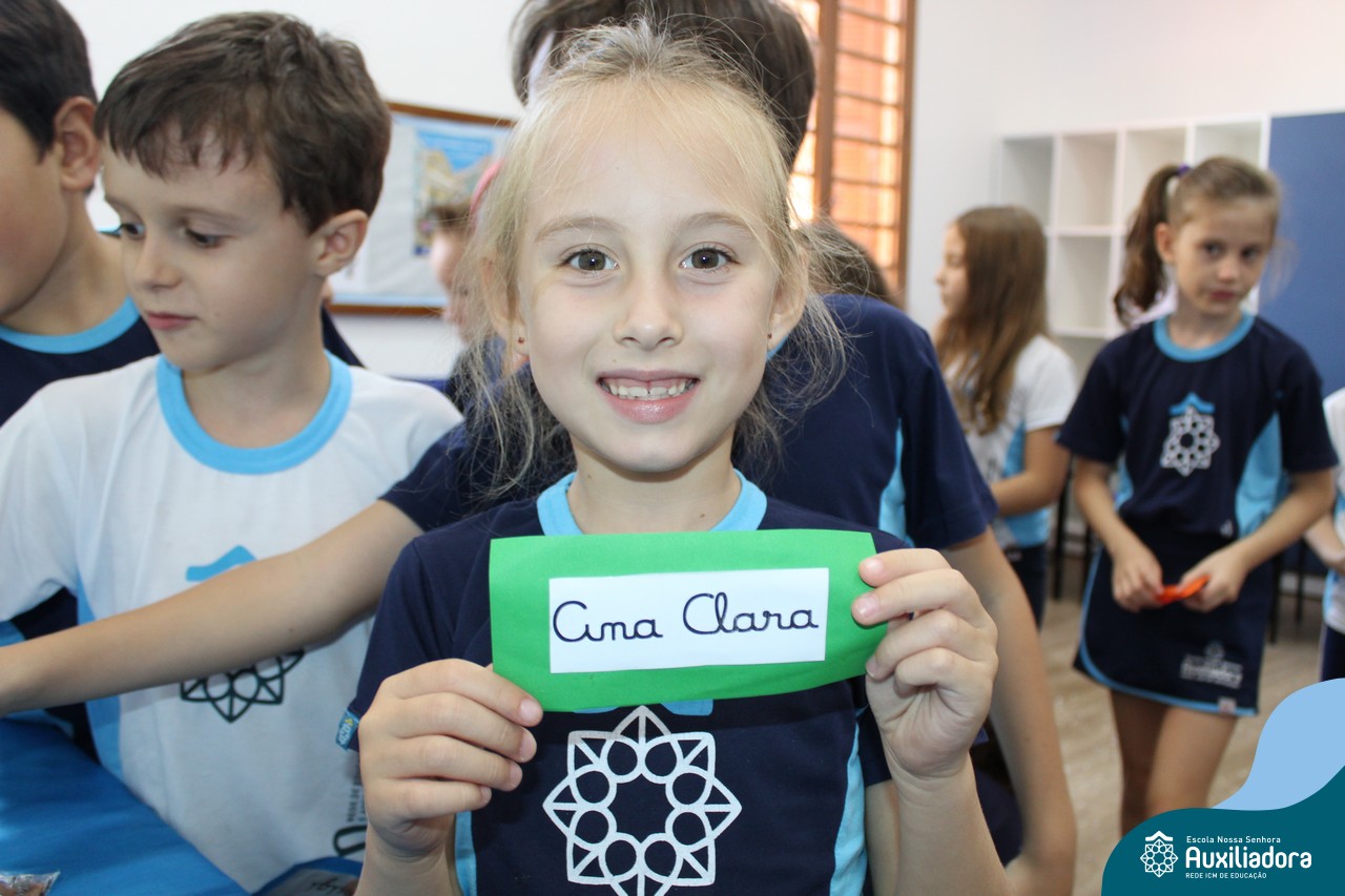As turmas do 2° ano 21 e 22 estão se aventurando na descoberta da letra cursiva. A transição da letra palito para a letra cursiva aconteceu através de uma festa com brincadeiras e guloseimas.