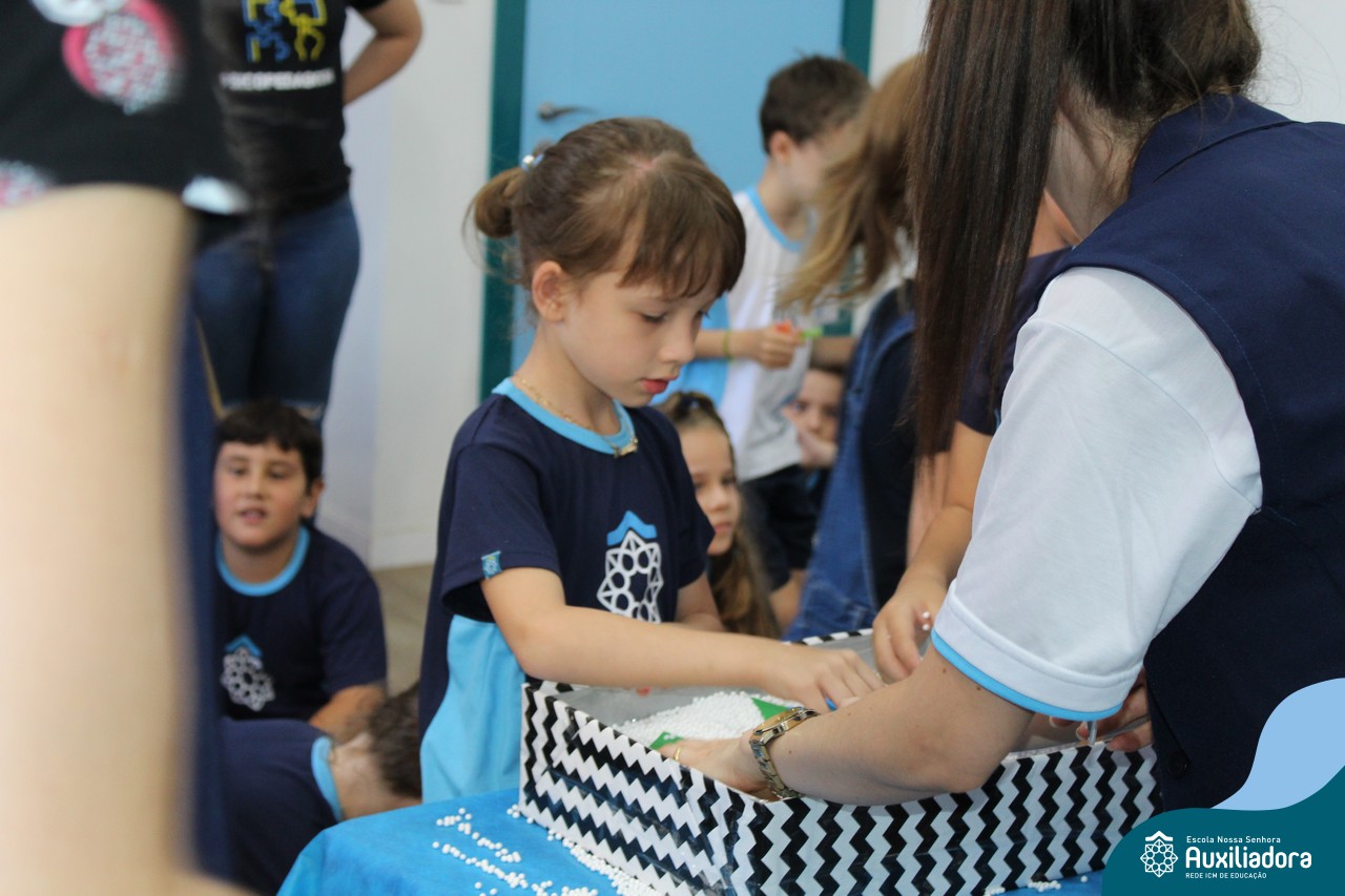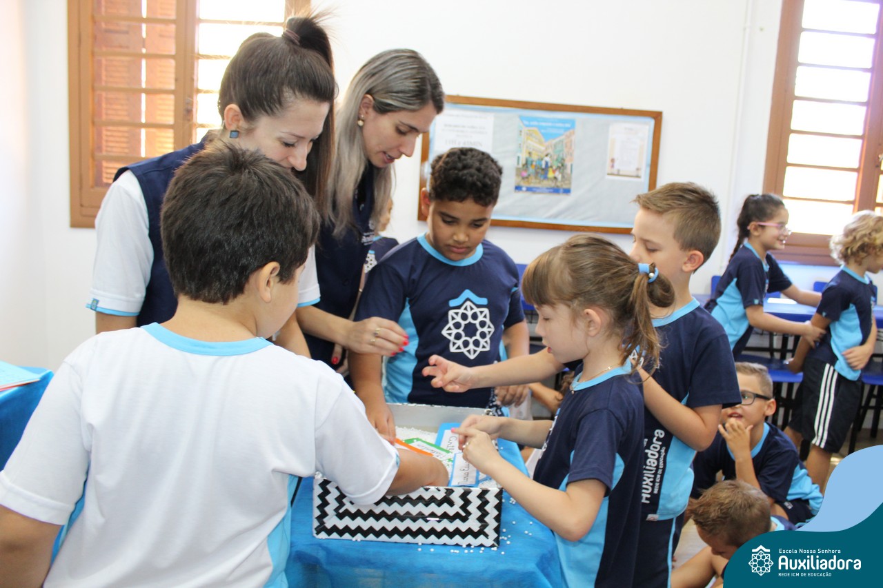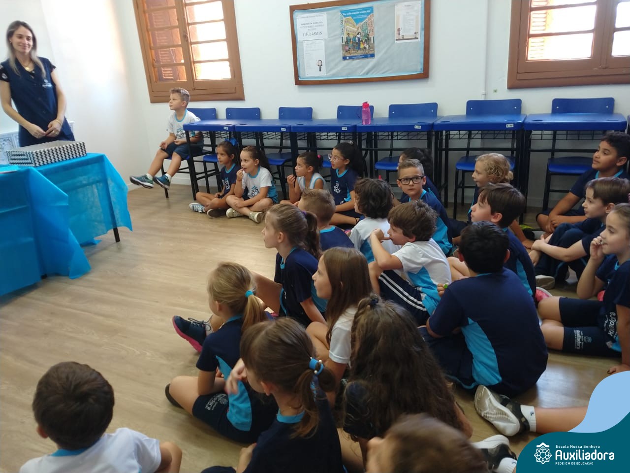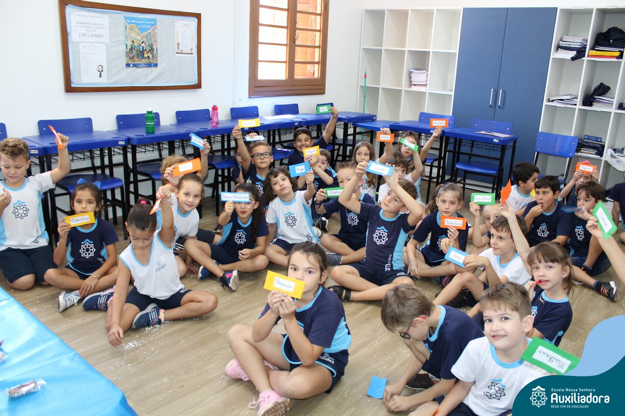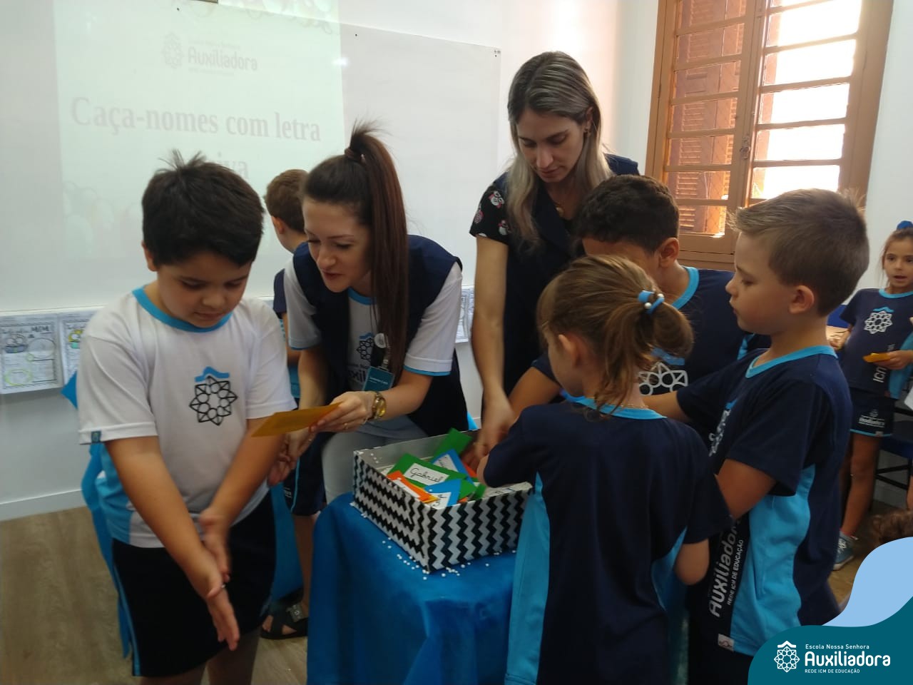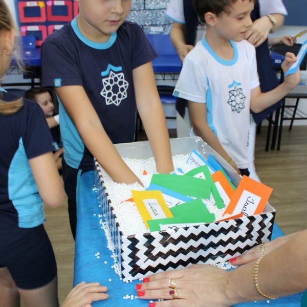 As turmas do 2° ano 21 e 22 estão se aventurando na descoberta da letra cursiva. A transição da letra palito para a letra cursiva aconteceu através de uma festa com brincadeiras e guloseimas.