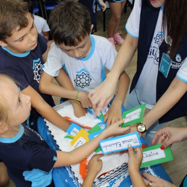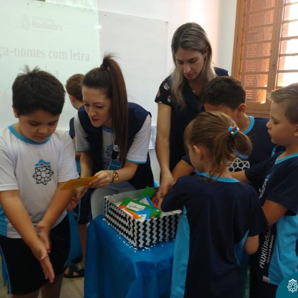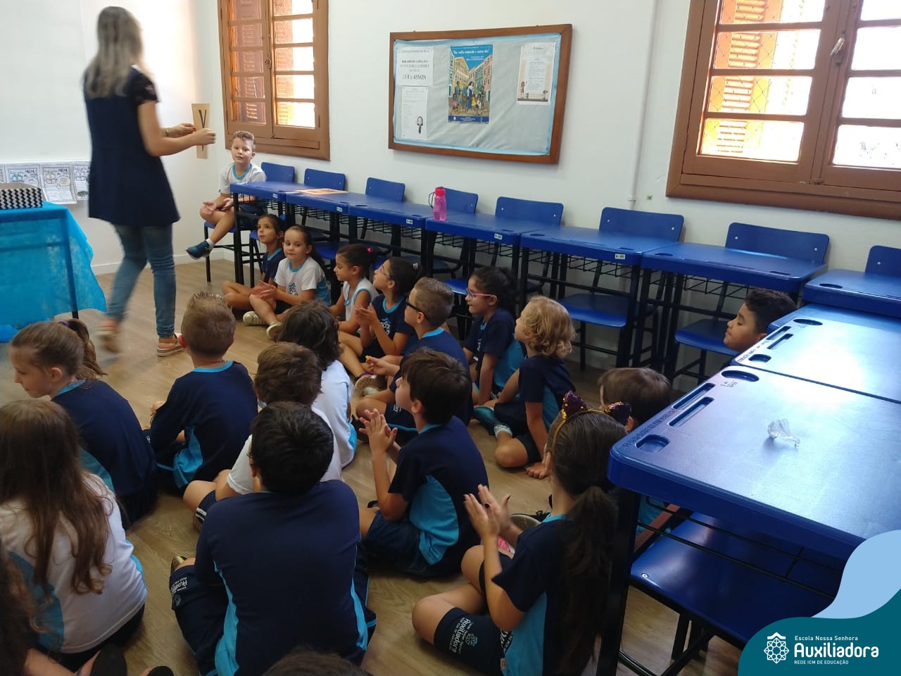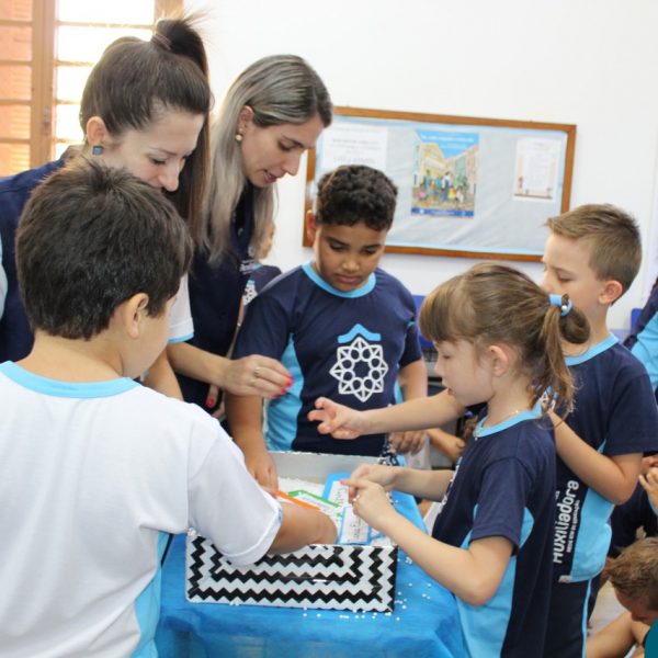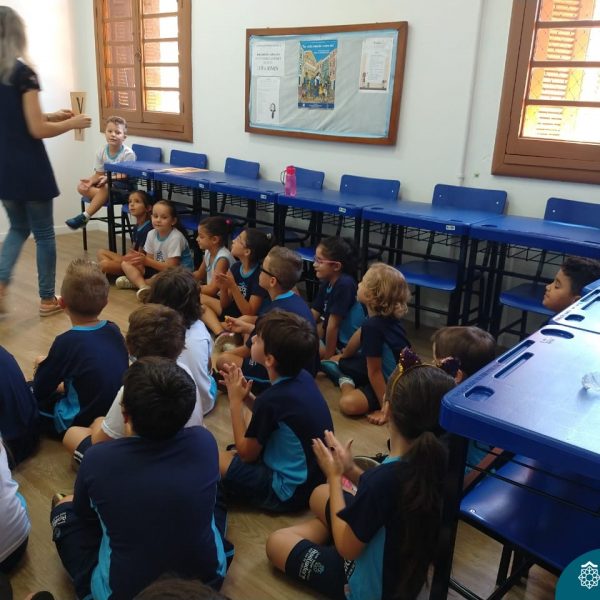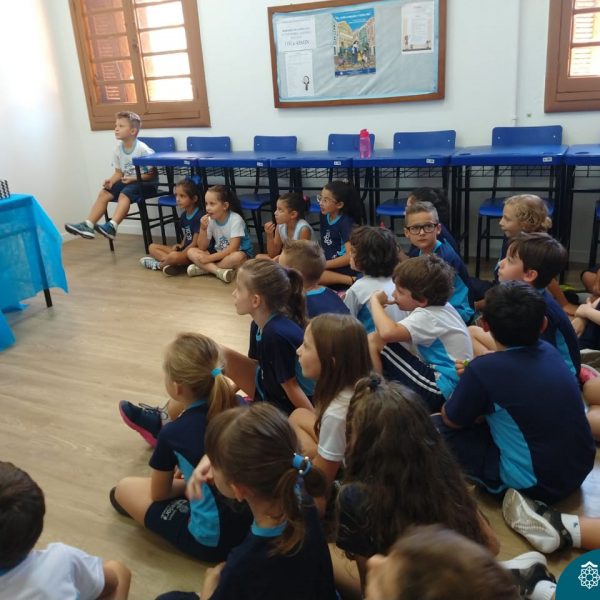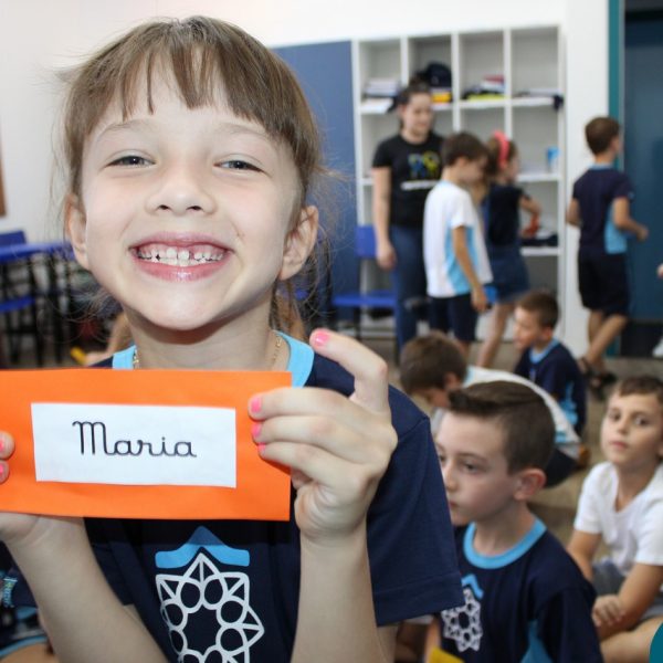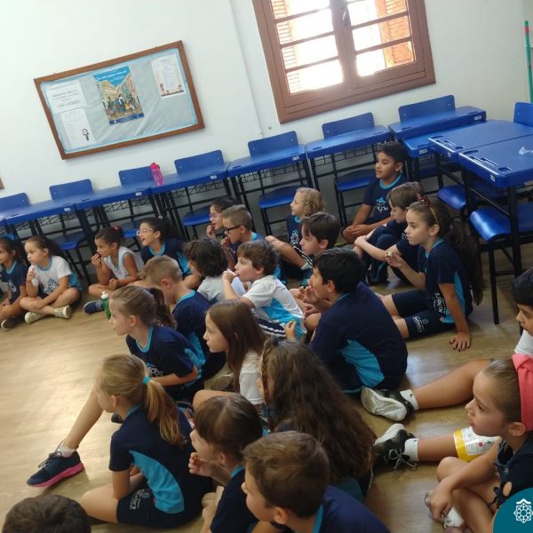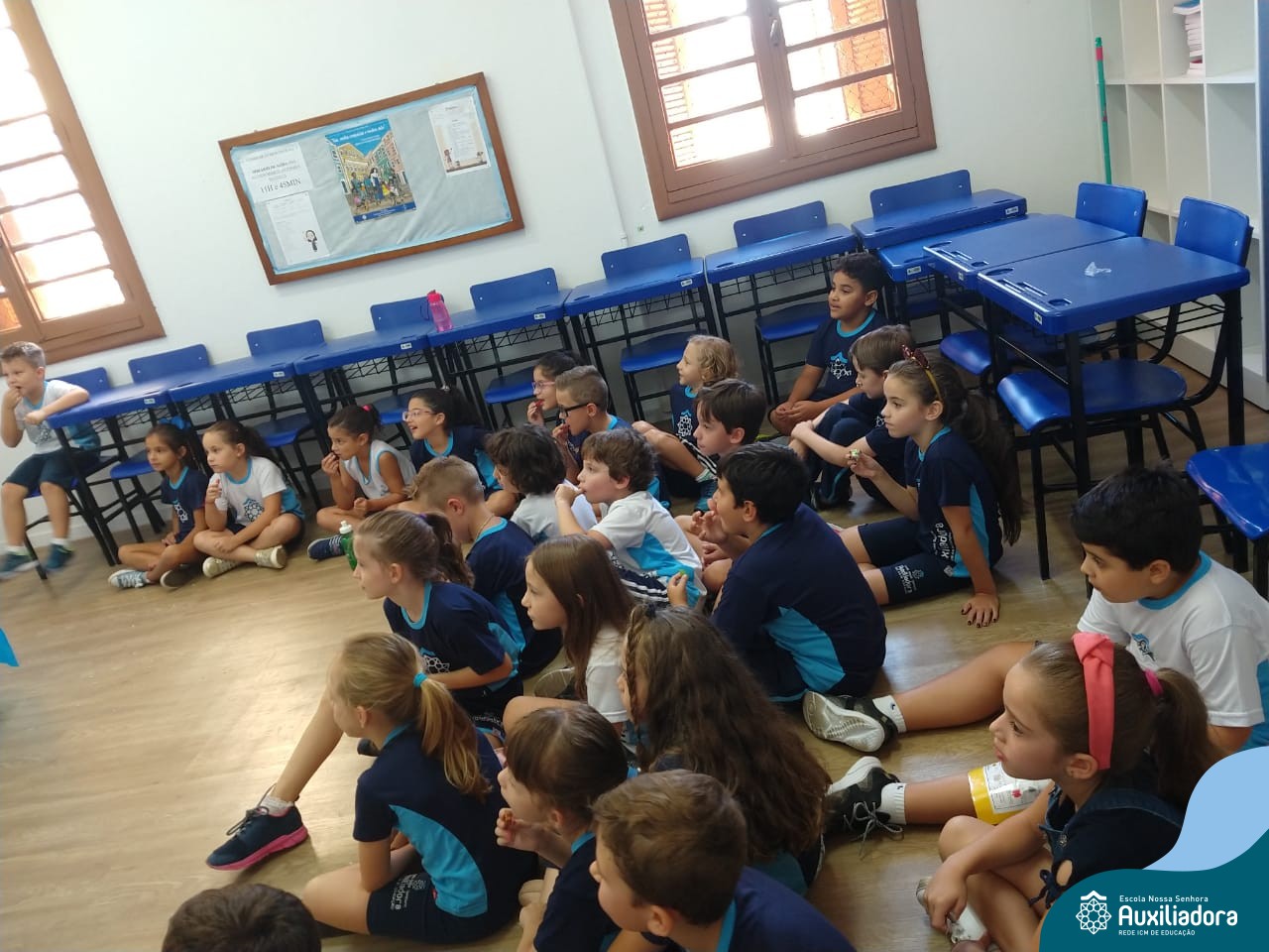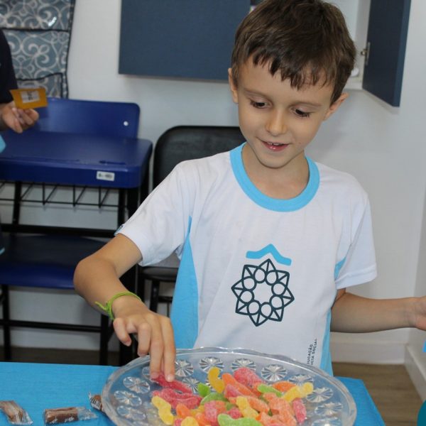 As turmas do 2° ano 21 e 22 estão se aventurando na descoberta da letra cursiva. A transição da letra palito para a letra cursiva aconteceu através de uma festa com brincadeiras e guloseimas.