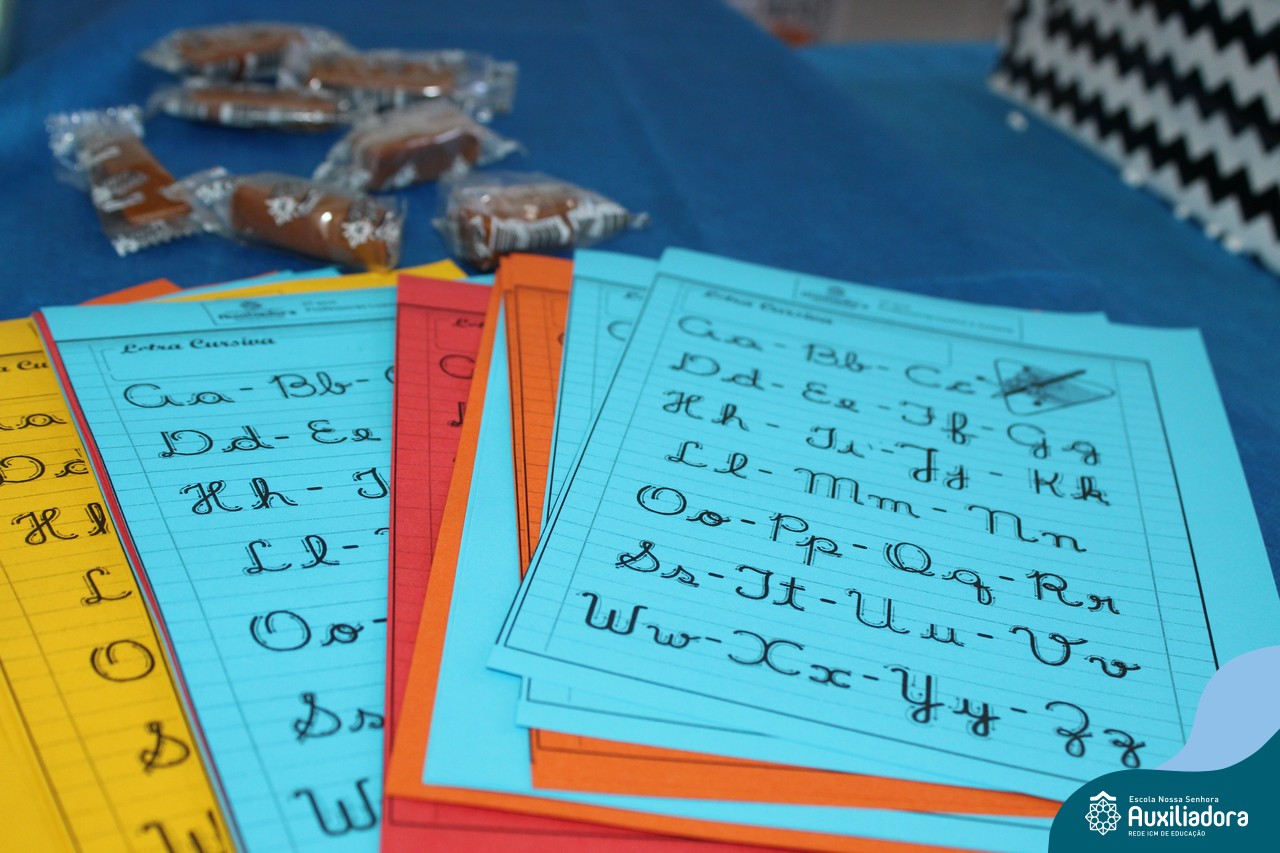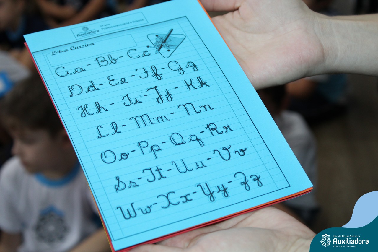 A letra cursiva tem importante papel no desenvolvimento da aprendizagem, favorecendo o foco e a coesão na escrita, além de aprimorar a motricidade fina e permitir que a criança avance um nível na sua aprendizagem.