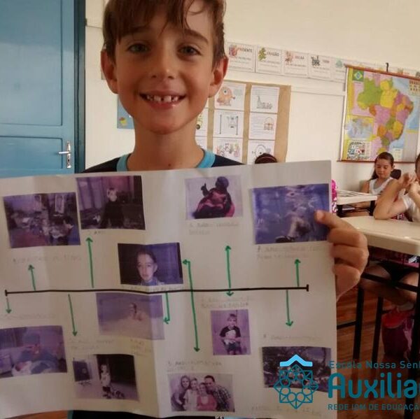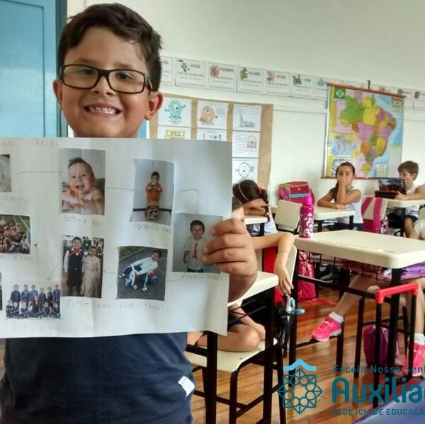 Nesta semana, a turma do 2° ano 22 está trabalhando sobre a passagem do tempo. Uma das atividades foi a construção da linha do tempo de cada criança com registros de momentos importantes, desde o nascimento até agora. A turminha adorou compartilhar suas histórias com os amigos! Profe Suh Brondani.