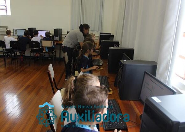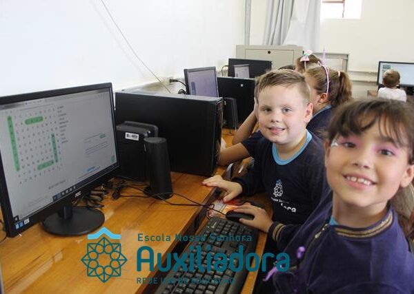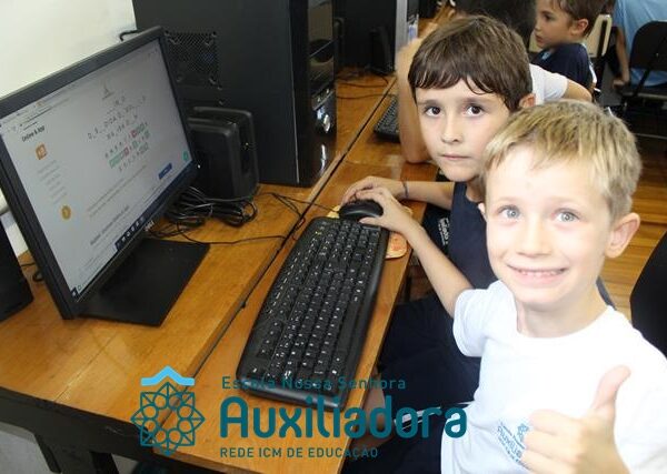 Olha que forma legal de aprender! 😉 🔎 Turma do 2º ano na aula de informática no laboratório com a Profe Lisi e a Profe Cris. Aprender assim fica fácil e divertido! 🎲 ❤ Escola Auxiliadora ➡ A Escola que acredita na educação com amor.