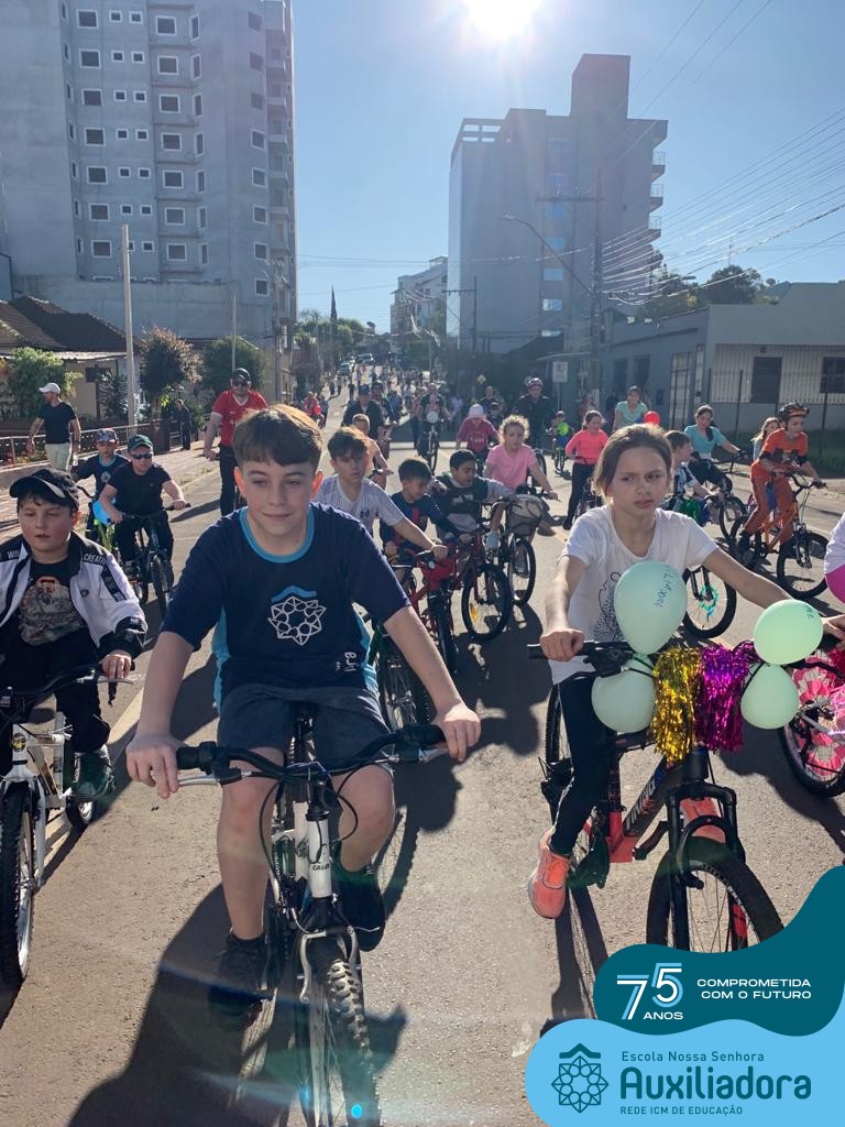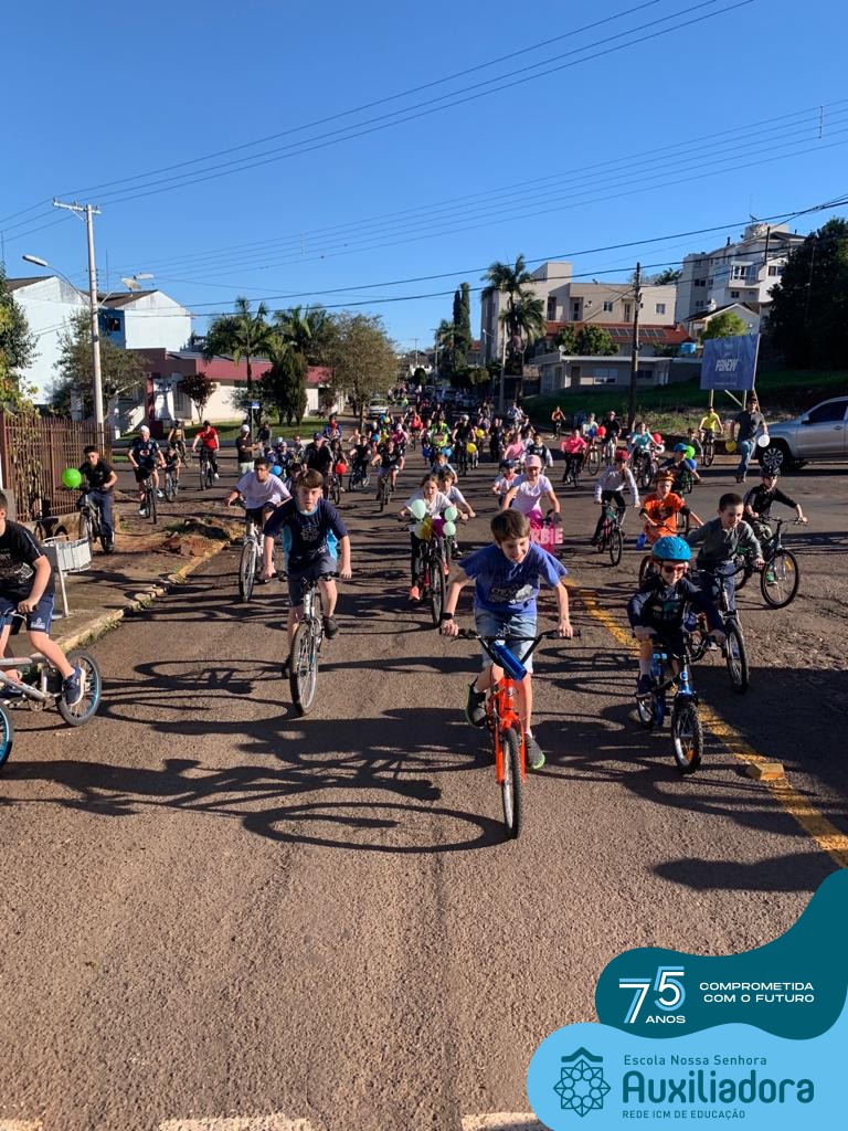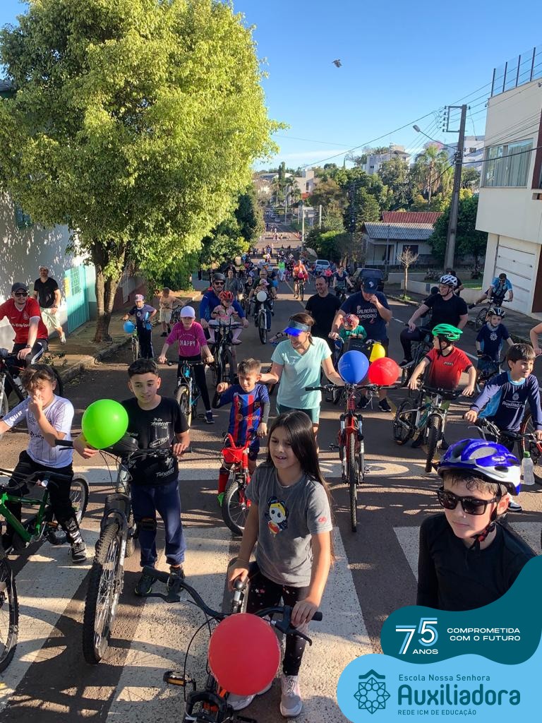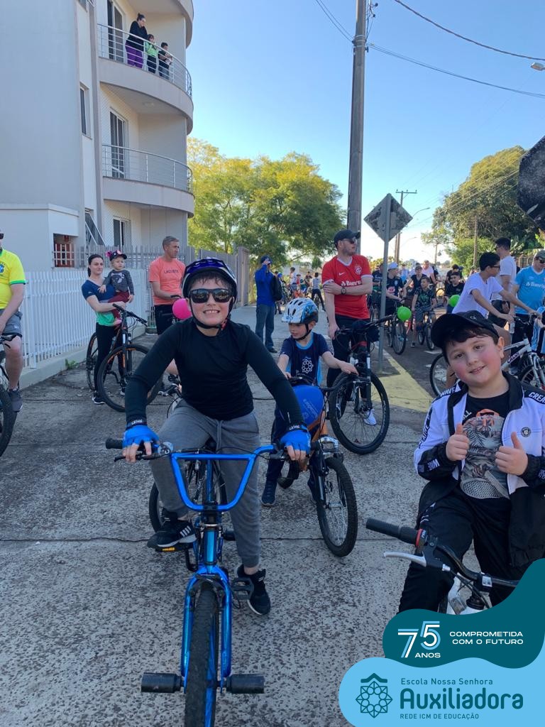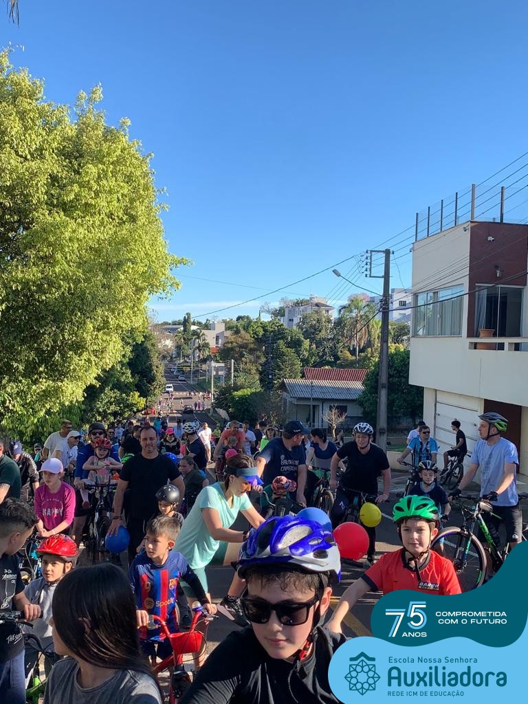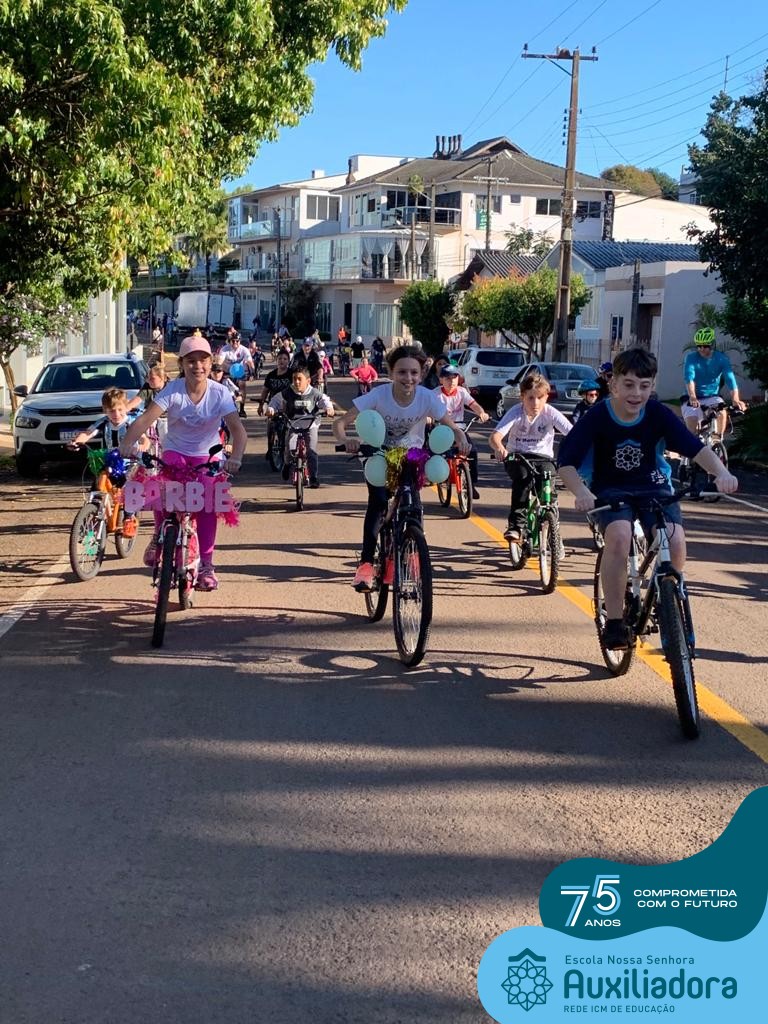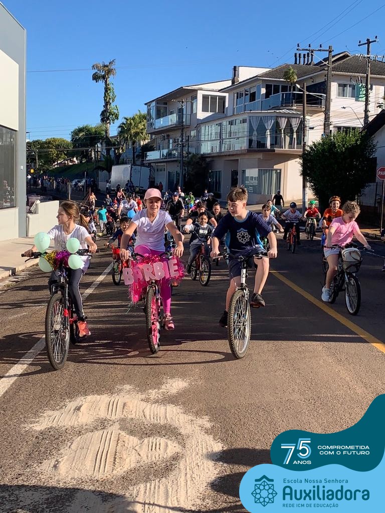 ✅ No sábado, dia 19 de agosto, aconteceu a segunda edição do Pedal do Auxi. Neste ano, o evento objetivou comemorar o 76º aniversário da Escola Auxiliadora e promover atividade física, recreativa e de integração da escola, alunos, funcionários, famílias e comunidade em geral. Os participantes saíram da frente da escola e percorreram cerca de 4km pelas ruas da cidade com organização e parceria da empresa Barril Moto & Bike e apoio da Prefeitura Municipal. Para a Educação Infantil, as atividades aconteceram no pátio da escola, oferecendo um ambiente acolhedor para as famílias desfrutarem de um sábado a tarde. Uma parceria entre escola e o programa Líder em Mim.