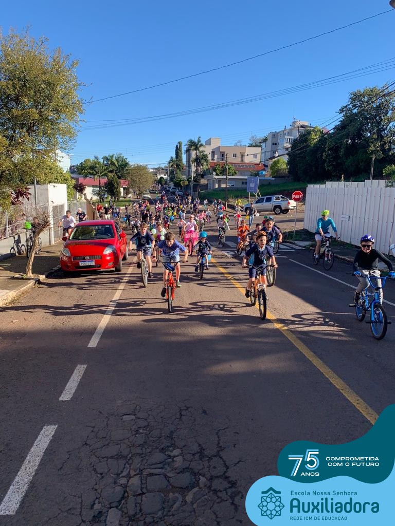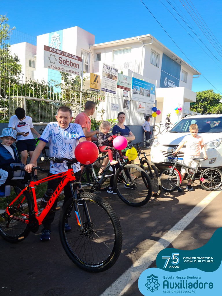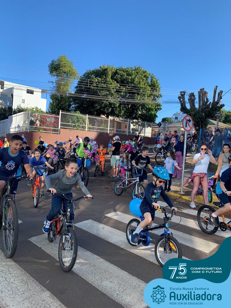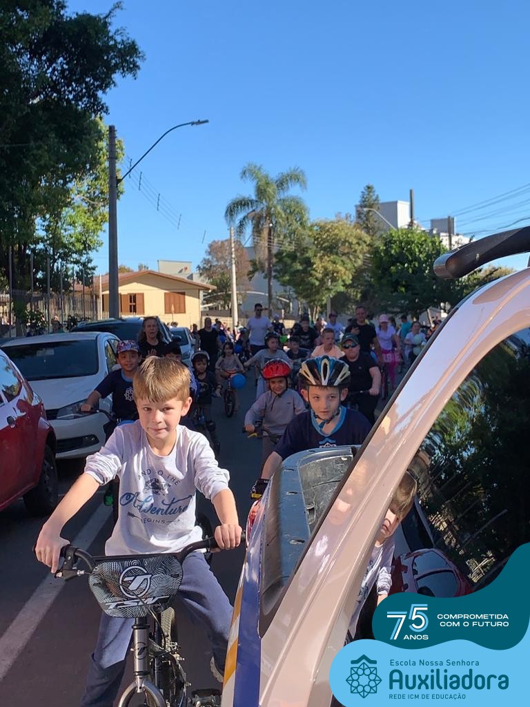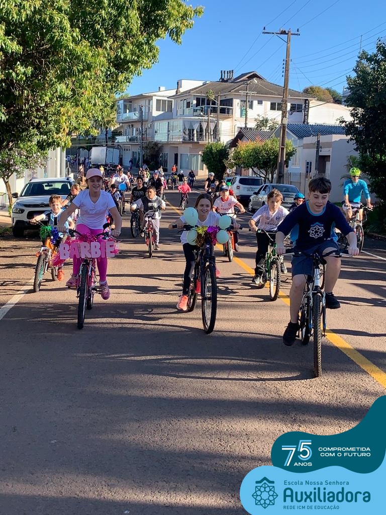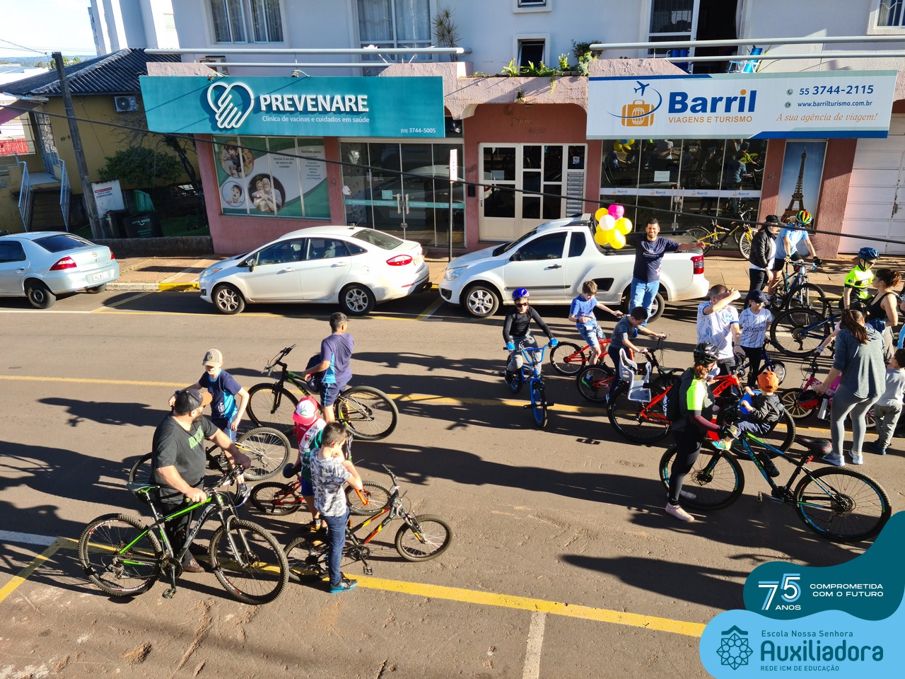 ✅ No sábado, dia 19 de agosto, aconteceu a segunda edição do Pedal do Auxi. Neste ano, o evento objetivou comemorar o 76º aniversário da Escola Auxiliadora e promover atividade física, recreativa e de integração da escola, alunos, funcionários, famílias e comunidade em geral. Os participantes saíram da frente da escola e percorreram cerca de 4km pelas ruas da cidade com organização e parceria da empresa Barril Moto & Bike e apoio da Prefeitura Municipal. Para a Educação Infantil, as atividades aconteceram no pátio da escola, oferecendo um ambiente acolhedor para as famílias desfrutarem de um sábado a tarde. Uma parceria entre escola e o programa Líder em Mim.