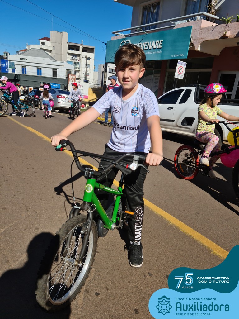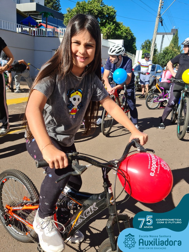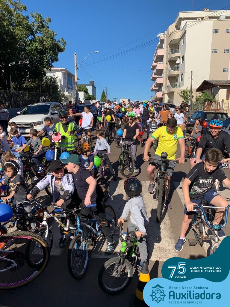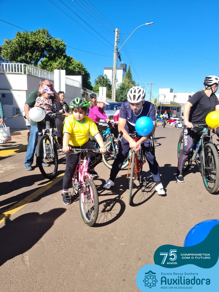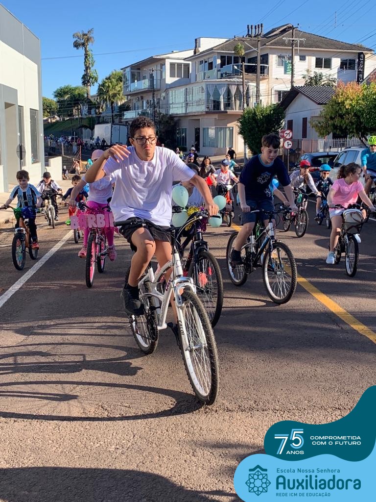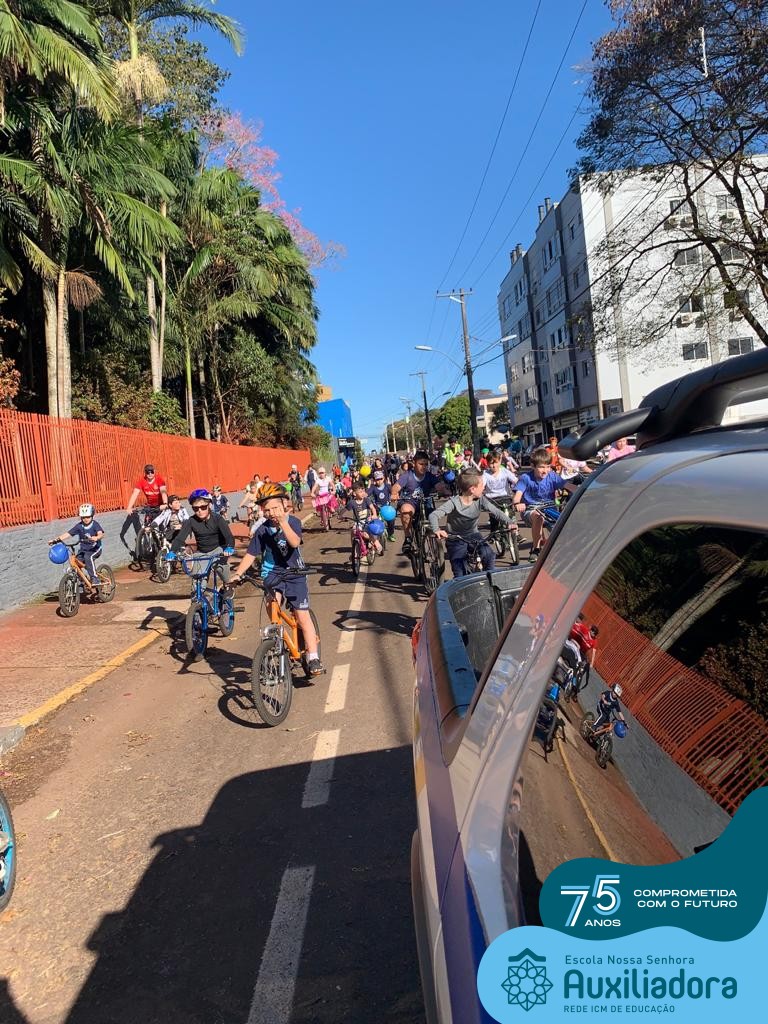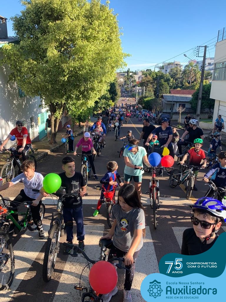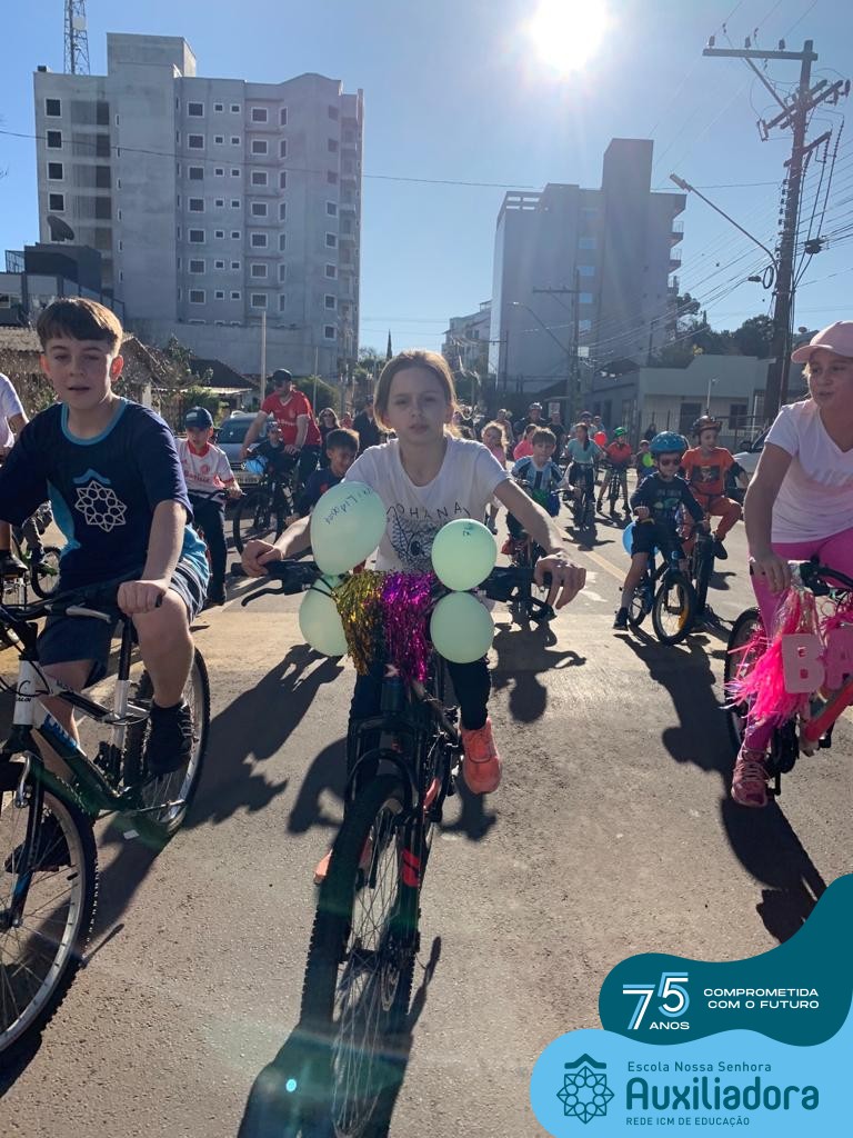 ✅ No sábado, dia 19 de agosto, aconteceu a segunda edição do Pedal do Auxi. Neste ano, o evento objetivou comemorar o 76º aniversário da Escola Auxiliadora e promover atividade física, recreativa e de integração da escola, alunos, funcionários, famílias e comunidade em geral. Os participantes saíram da frente da escola e percorreram cerca de 4km pelas ruas da cidade com organização e parceria da empresa Barril Moto & Bike e apoio da Prefeitura Municipal. Para a Educação Infantil, as atividades aconteceram no pátio da escola, oferecendo um ambiente acolhedor para as famílias desfrutarem de um sábado a tarde. Uma parceria entre escola e o programa Líder em Mim.
