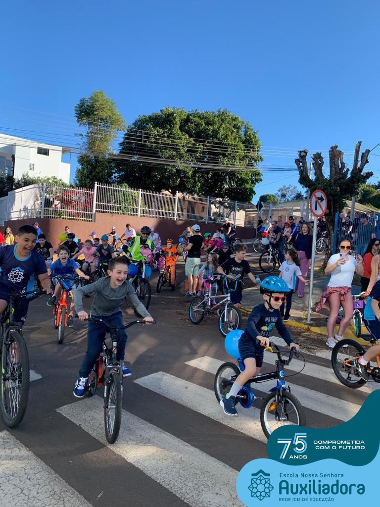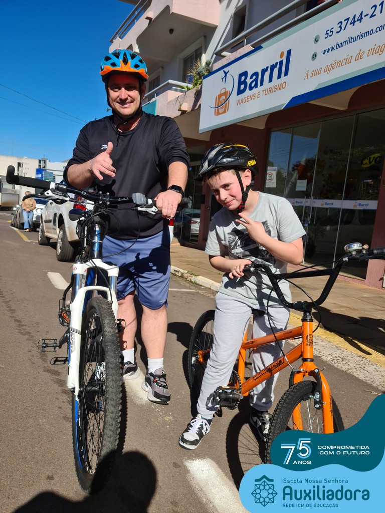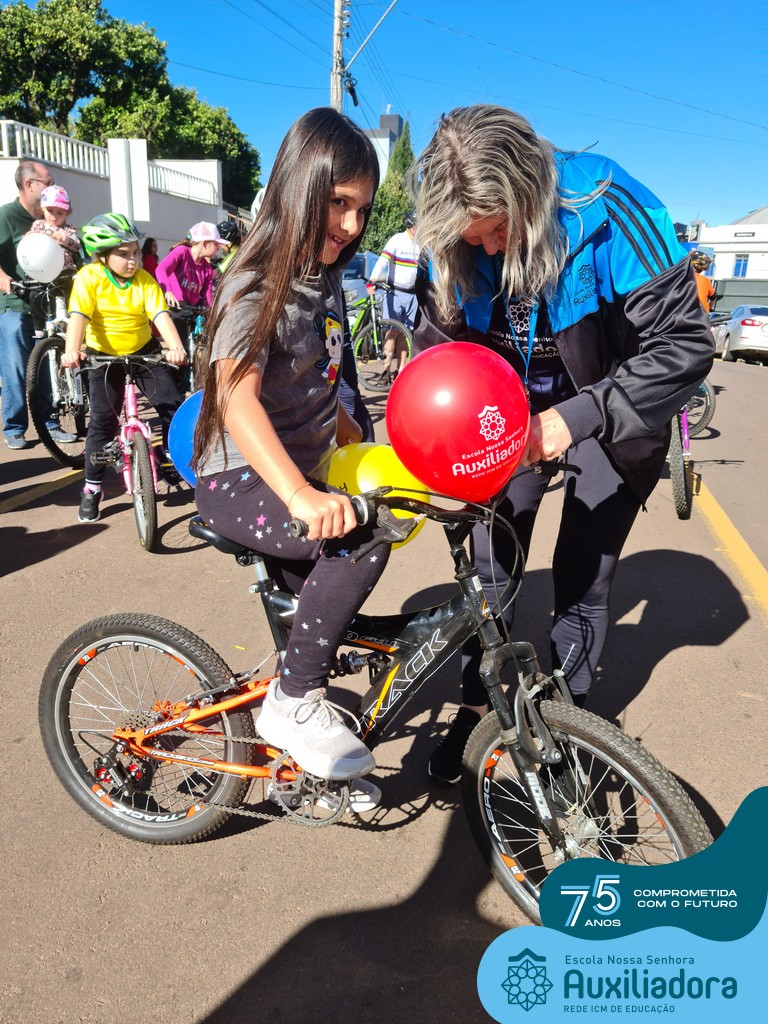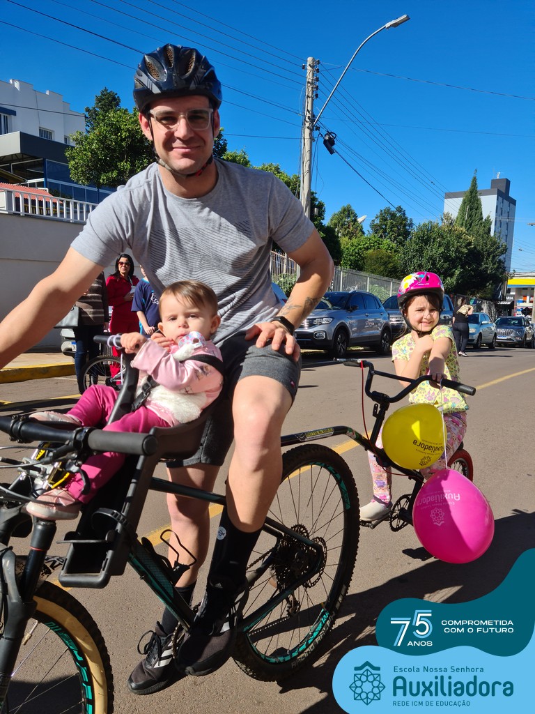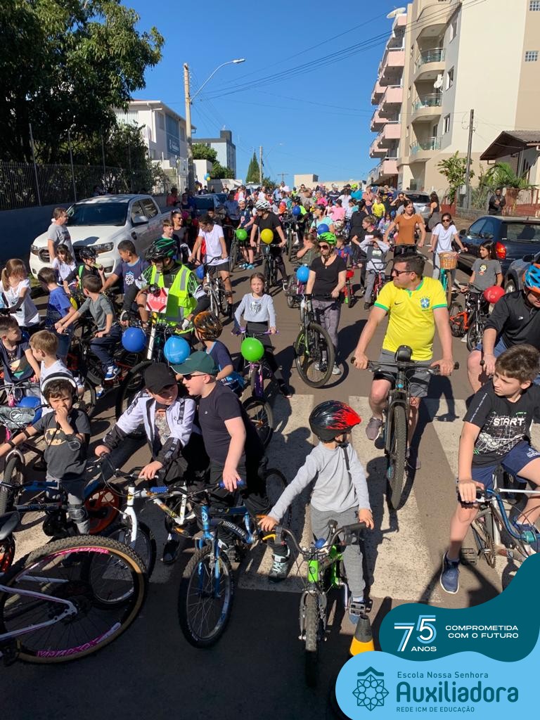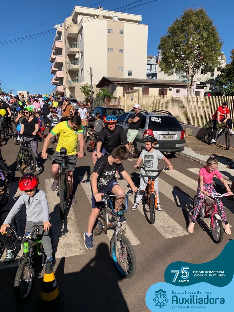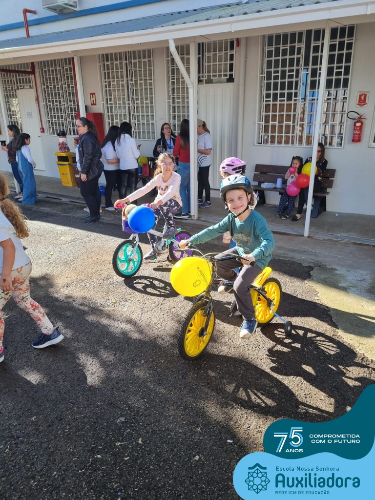 ✅ No sábado, dia 19 de agosto, aconteceu a segunda edição do Pedal do Auxi. Neste ano, o evento objetivou comemorar o 76º aniversário da Escola Auxiliadora e promover atividade física, recreativa e de integração da escola, alunos, funcionários, famílias e comunidade em geral. Os participantes saíram da frente da escola e percorreram cerca de 4km pelas ruas da cidade com organização e parceria da empresa Barril Moto & Bike e apoio da Prefeitura Municipal. Para a Educação Infantil, as atividades aconteceram no pátio da escola, oferecendo um ambiente acolhedor para as famílias desfrutarem de um sábado a tarde. Uma parceria entre escola e o programa Líder em Mim.