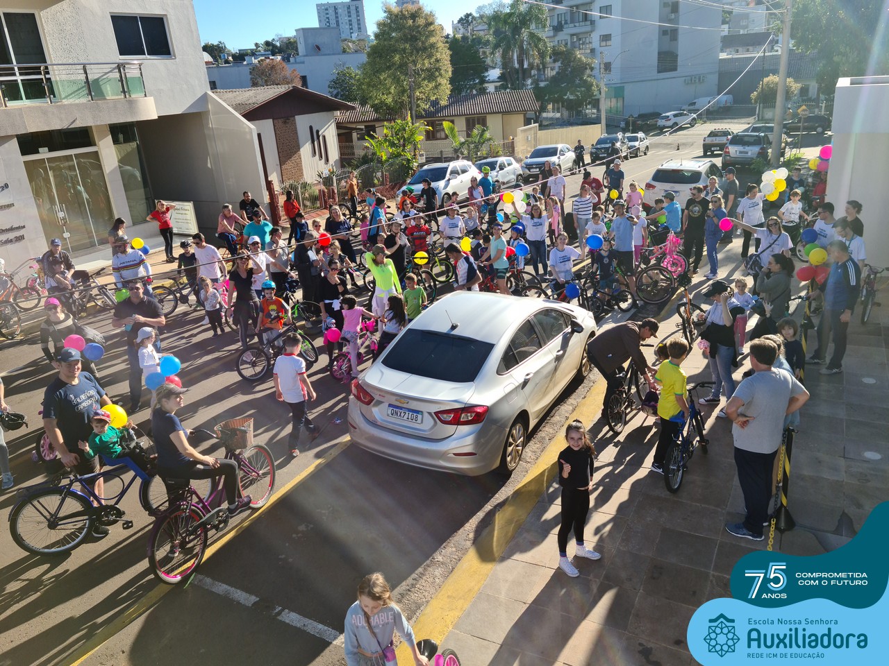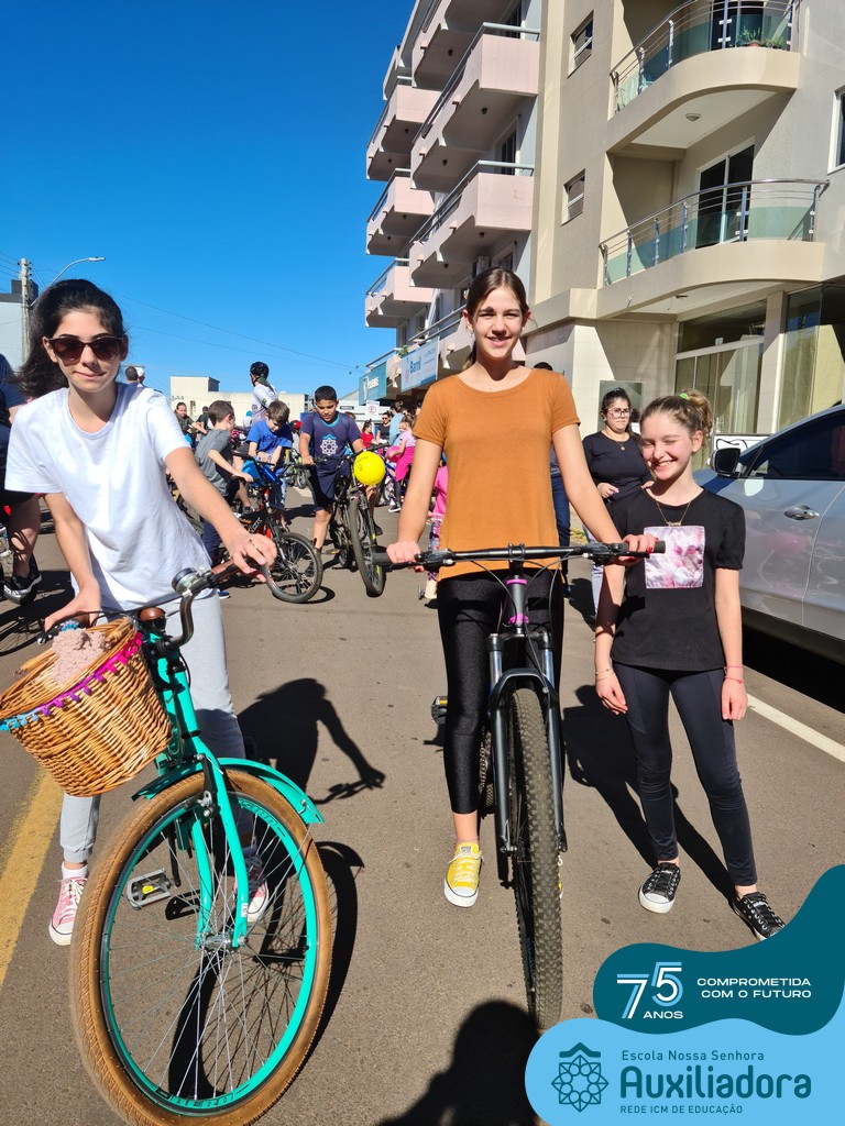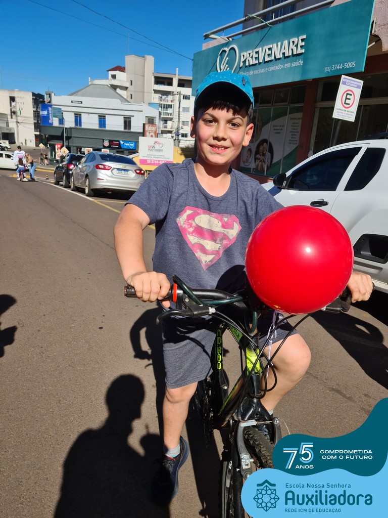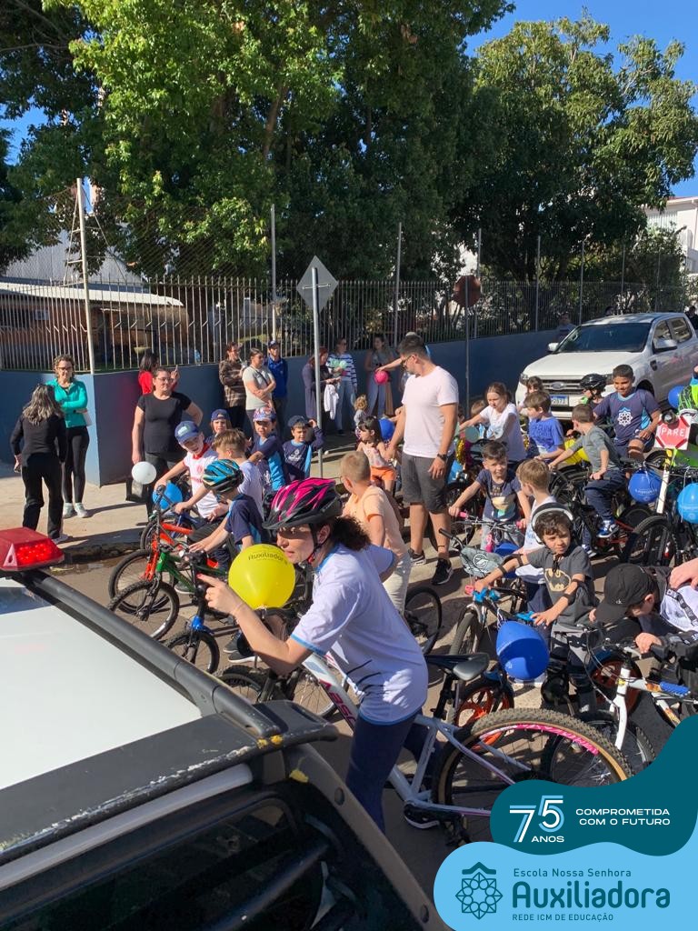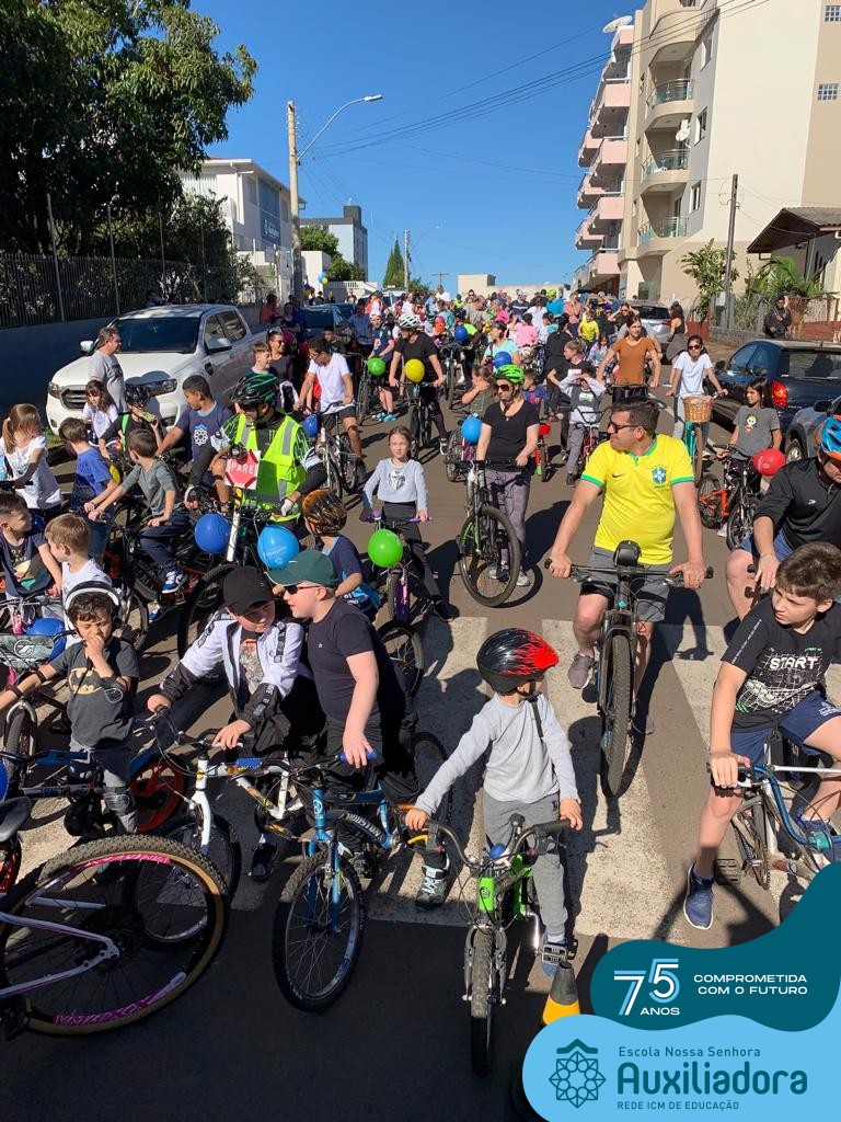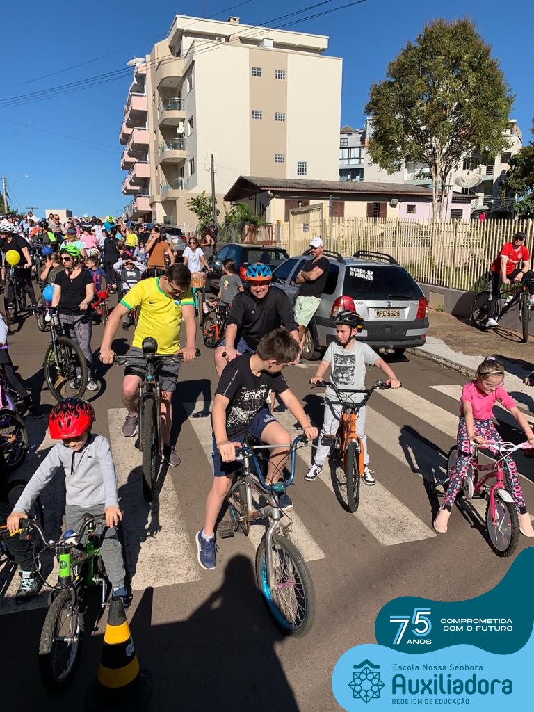 ✅ No sábado, dia 19 de agosto, aconteceu a segunda edição do Pedal do Auxi. Neste ano, o evento objetivou comemorar o 76º aniversário da Escola Auxiliadora e promover atividade física, recreativa e de integração da escola, alunos, funcionários, famílias e comunidade em geral. Os participantes saíram da frente da escola e percorreram cerca de 4km pelas ruas da cidade com organização e parceria da empresa Barril Moto & Bike e apoio da Prefeitura Municipal. Para a Educação Infantil, as atividades aconteceram no pátio da escola, oferecendo um ambiente acolhedor para as famílias desfrutarem de um sábado a tarde. Uma parceria entre escola e o programa Líder em Mim.