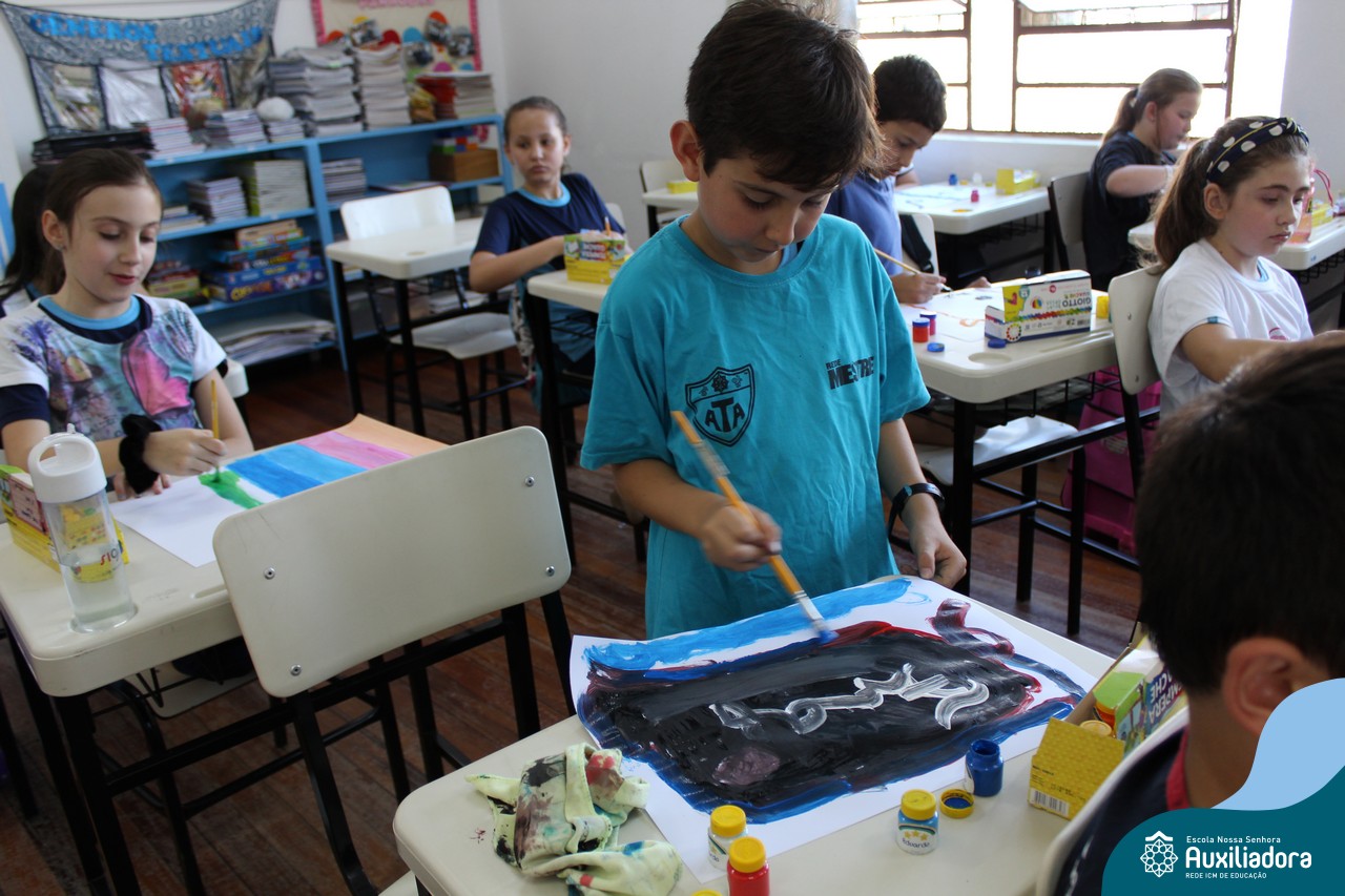 Experimentar as sensações que as cores produzem ao serem misturadas, conhecer as produções for grandes artistas e se aventurar no mundo da criação… Quem não gostaria de viver estes momentos? Nossos pequenos vivem a Arte em toda a sua intensidade!