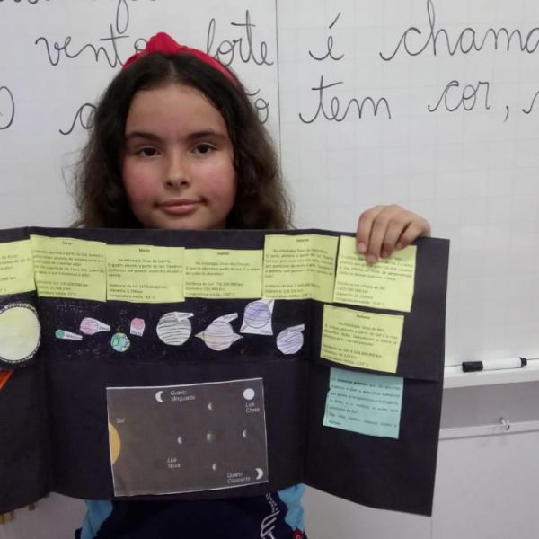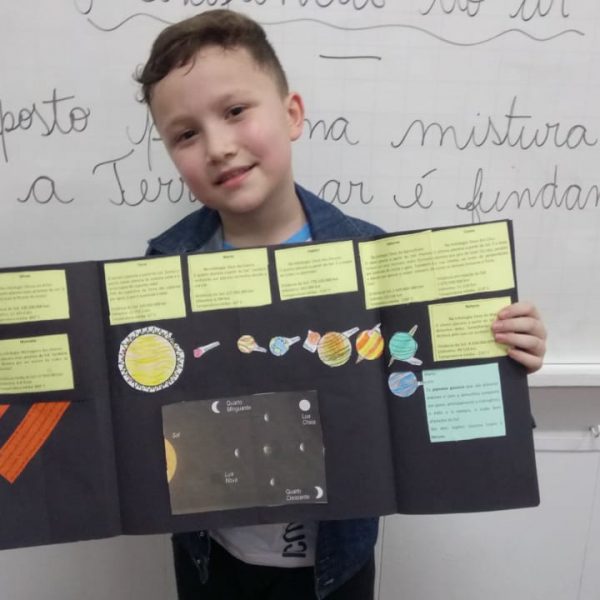 Com intuito de aprofundar o conhecimento no conteúdo sobre o Sistema Solar, as crianças confeccionaram um “Lapbook” com partes importantes e conceitos relativos ao estudo deste assunto! Profe Grazieli.