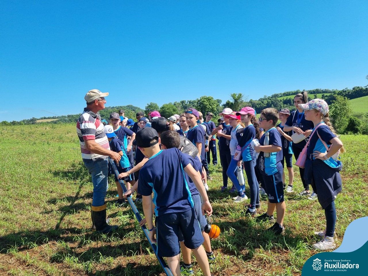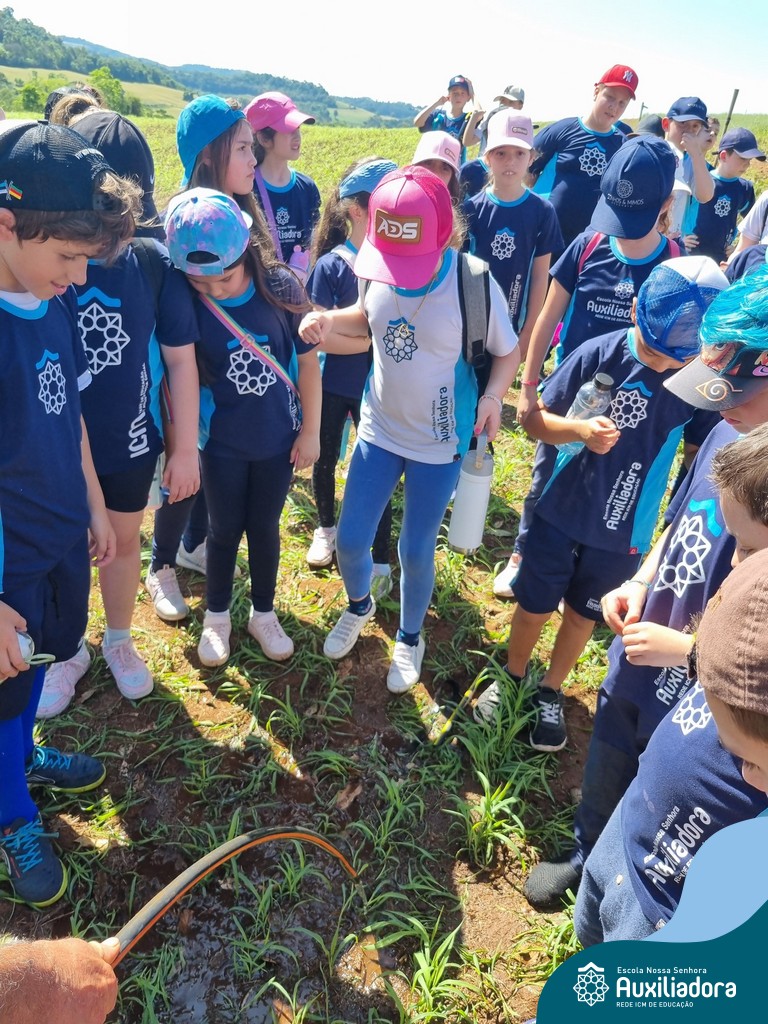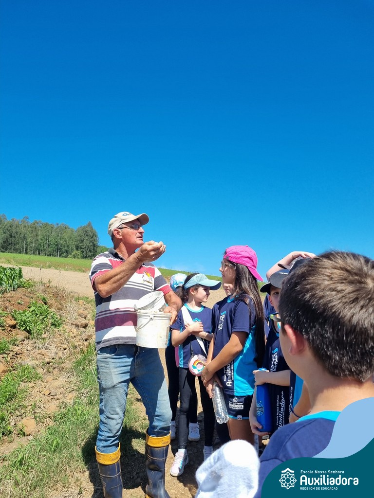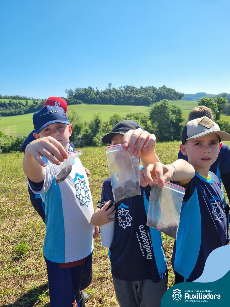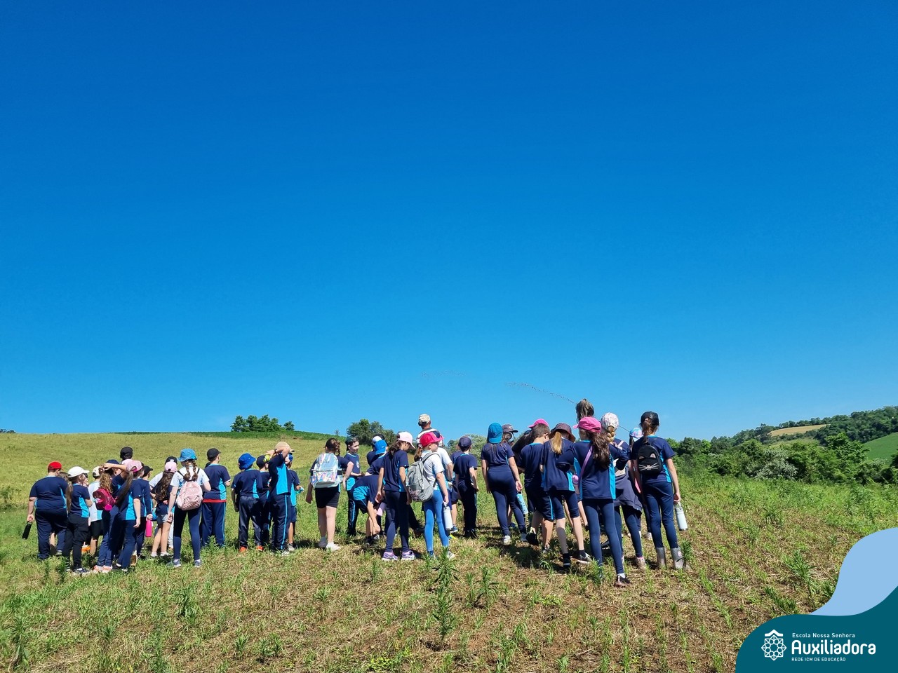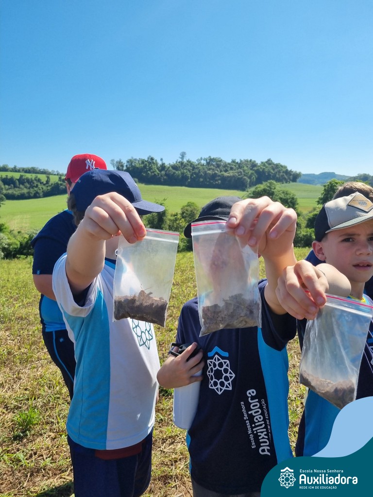 Como uma das ações do Projeto de Iniciação Científica, no intuito de vivenciar na prática os conhecimentos adquiridos de forma teórica, as turmas de 3º ano viveram um dia incrível na comunidade de Getúlio Vargas! Durante a saída a campo, fizeram coleta para análise de solos, conheceram uma nascente e observaram as propriedades da água encontrada no ambiente visitado. Além disso, tiveram a oportunidade de aprender na prática sobre adubação orgânica e inorgânica.