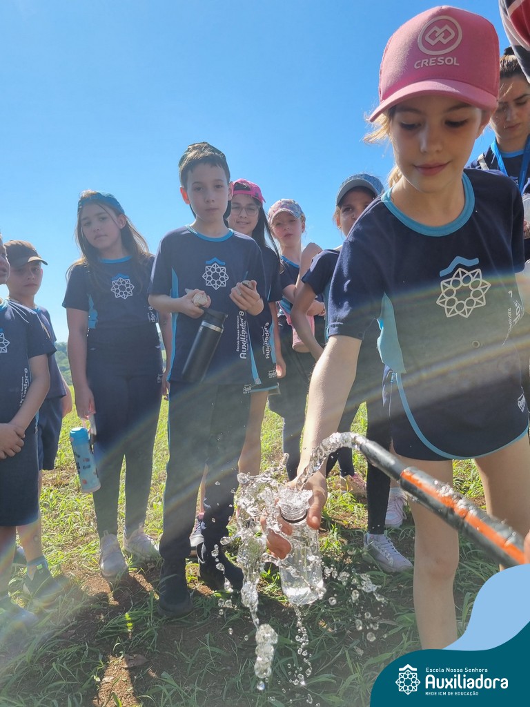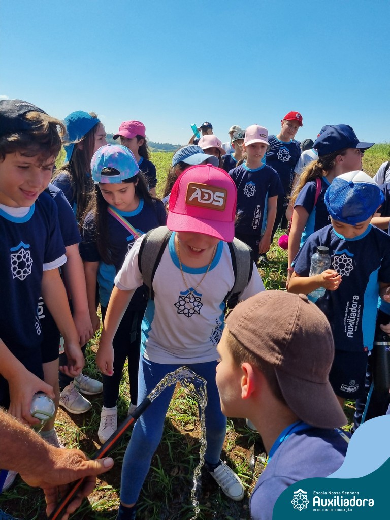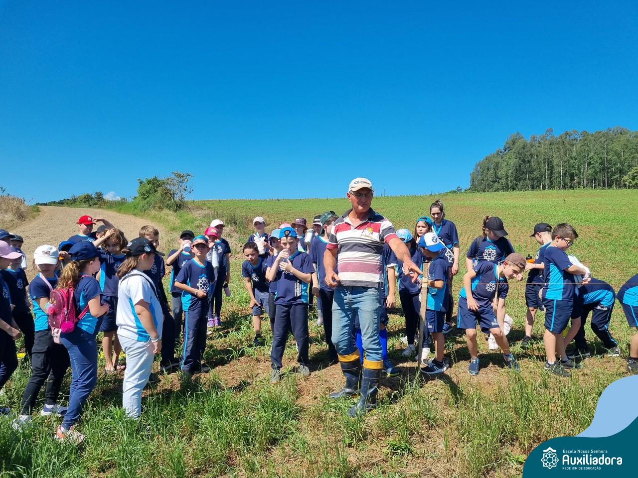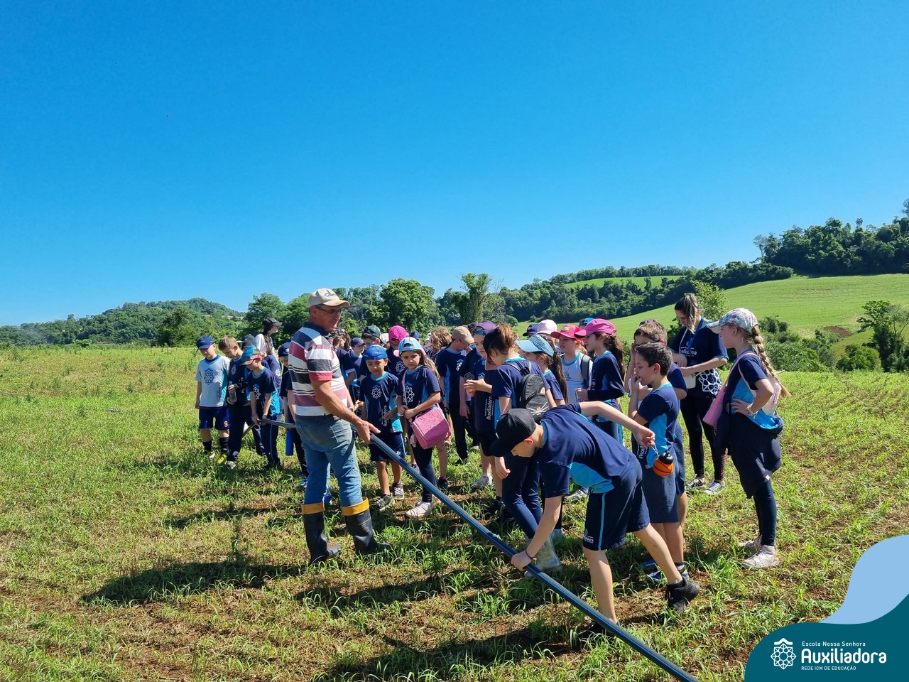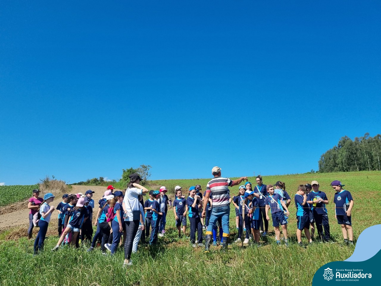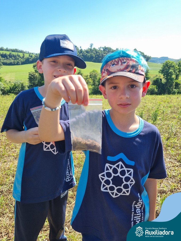 Como uma das ações do Projeto de Iniciação Científica, no intuito de vivenciar na prática os conhecimentos adquiridos de forma teórica, as turmas de 3º ano viveram um dia incrível na comunidade de Getúlio Vargas! Durante a saída a campo, fizeram coleta para análise de solos, conheceram uma nascente e observaram as propriedades da água encontrada no ambiente visitado. Além disso, tiveram a oportunidade de aprender na prática sobre adubação orgânica e inorgânica.