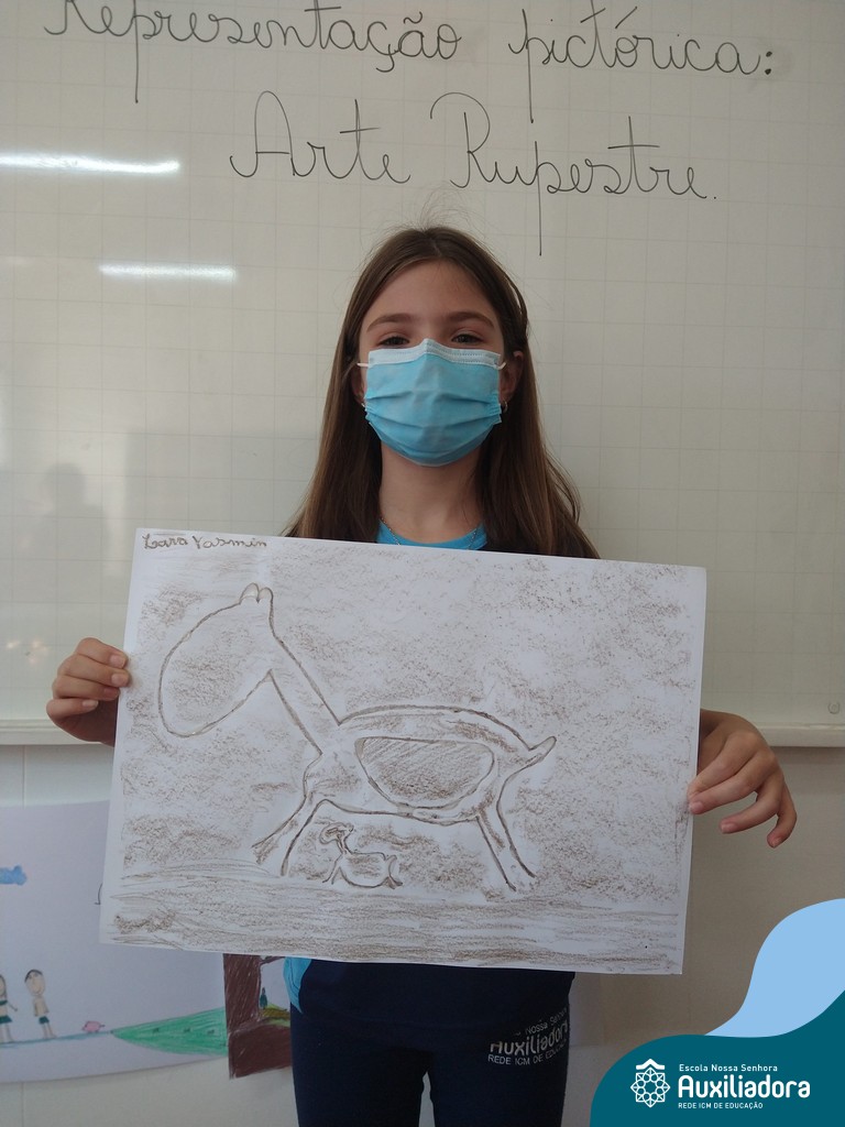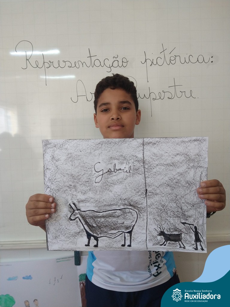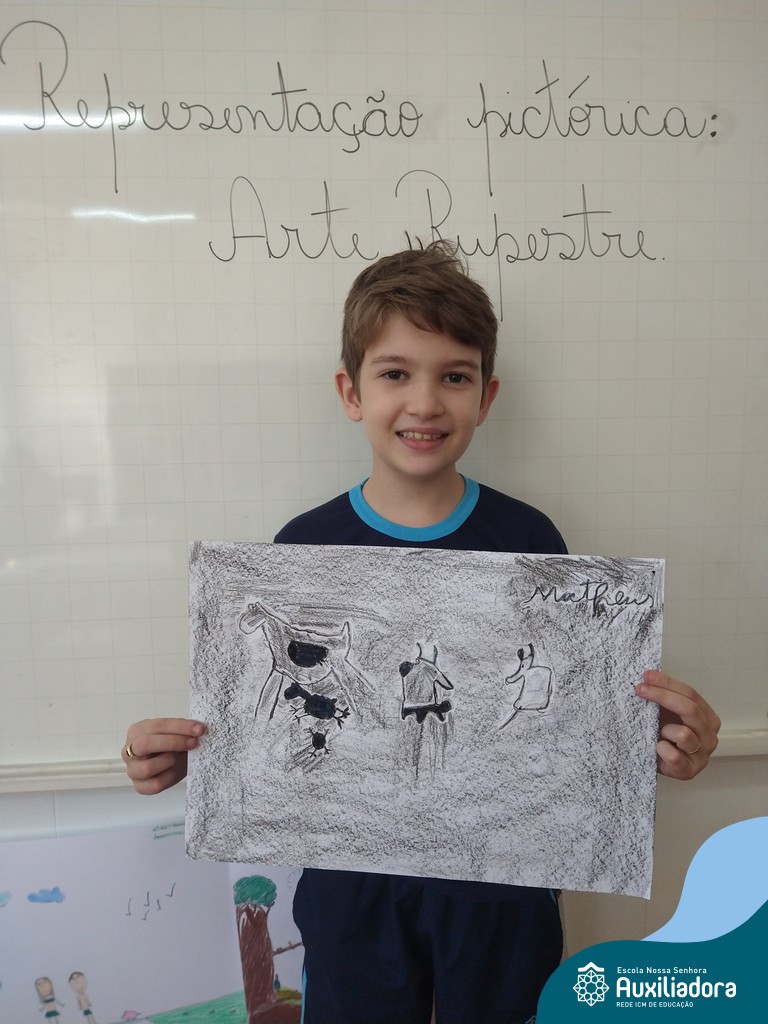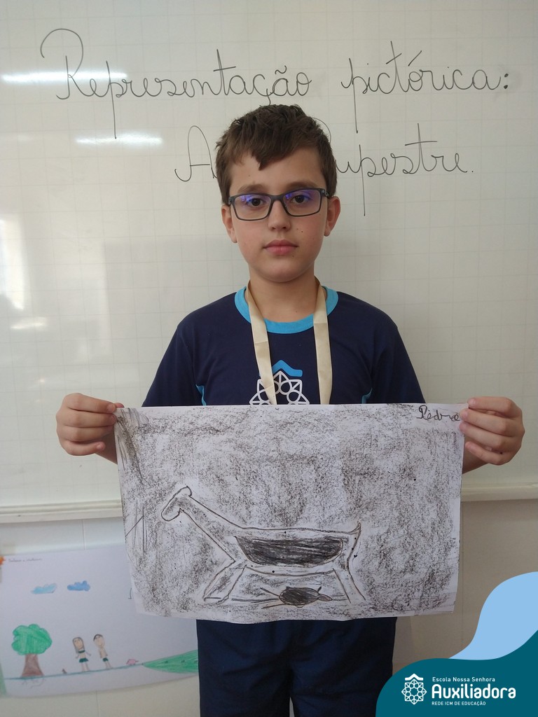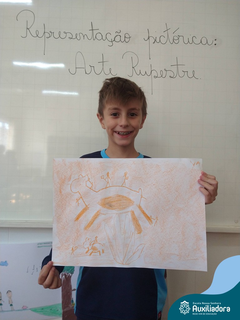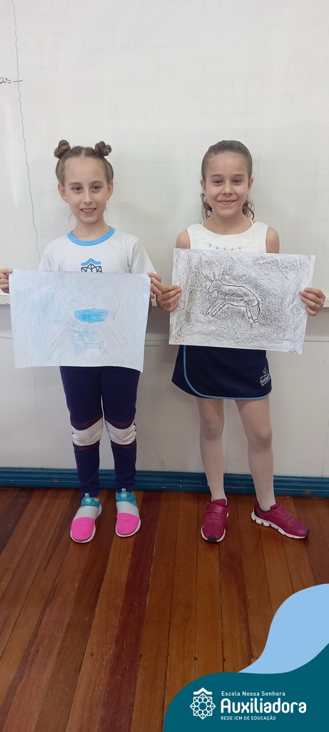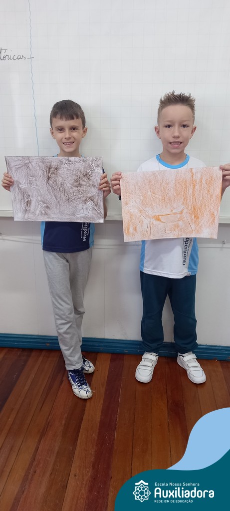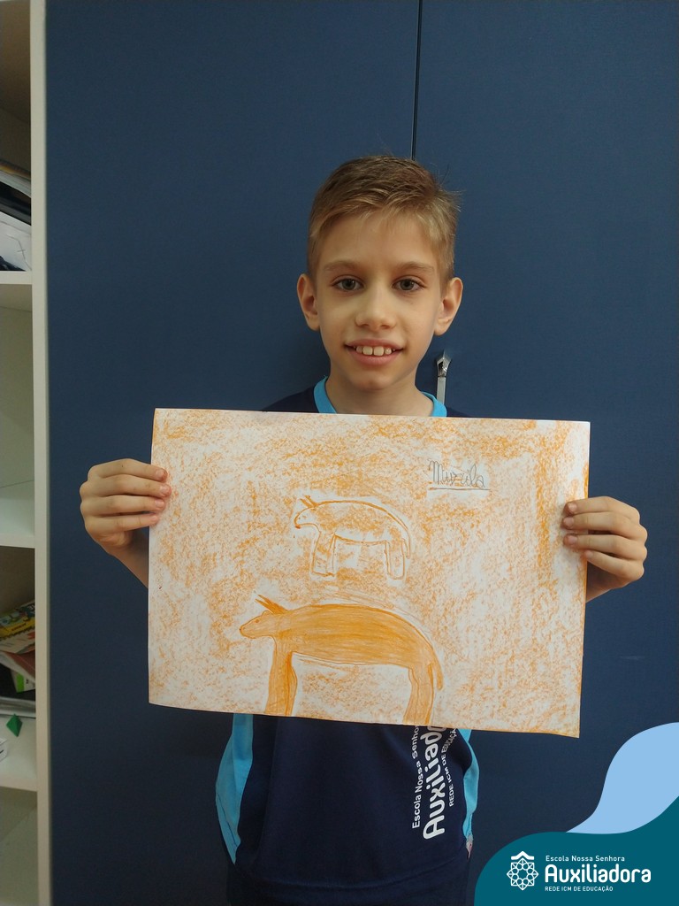 Ao estudar Fontes Históricas os alunos do 4º ano, turmas 41 e 42, realizaram a releitura de representações pictóricas através da Arte Rupestre.