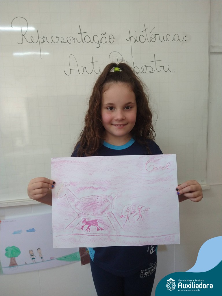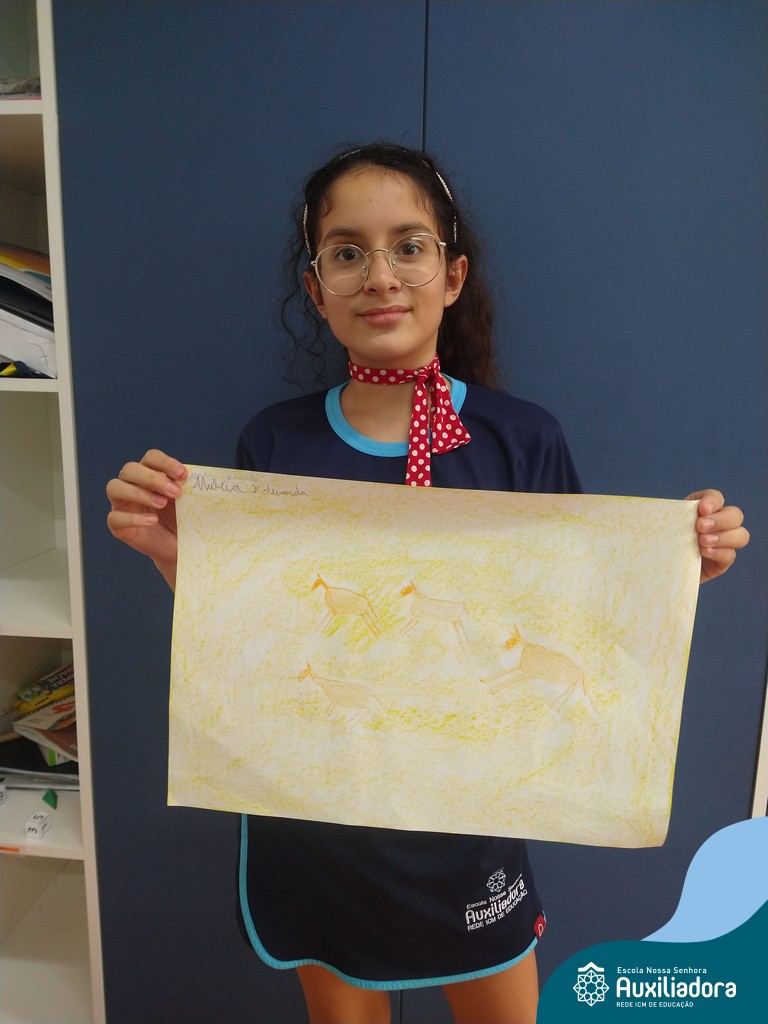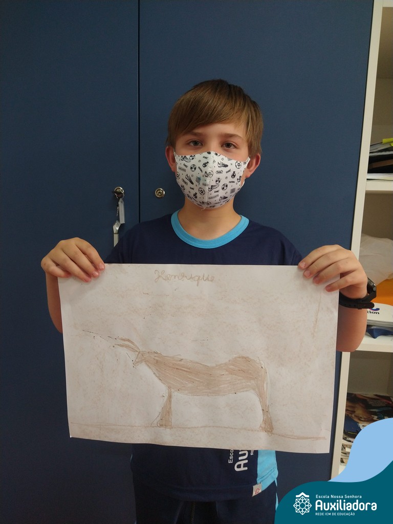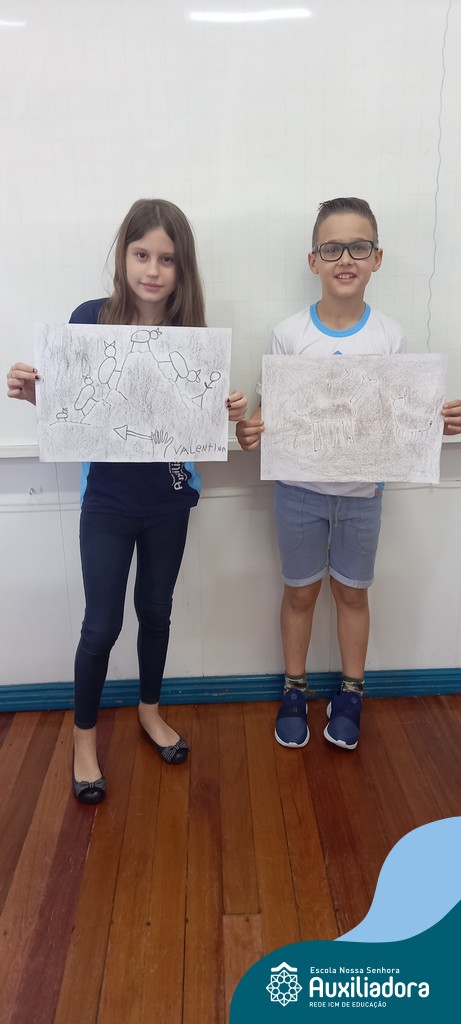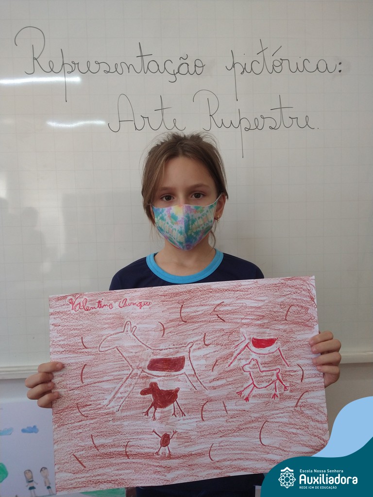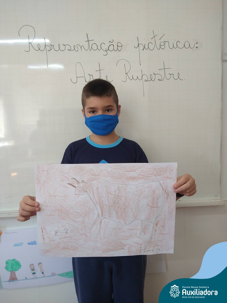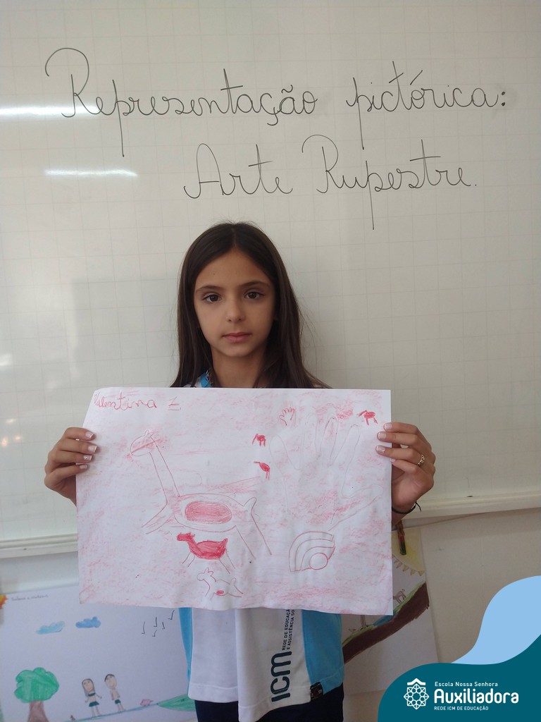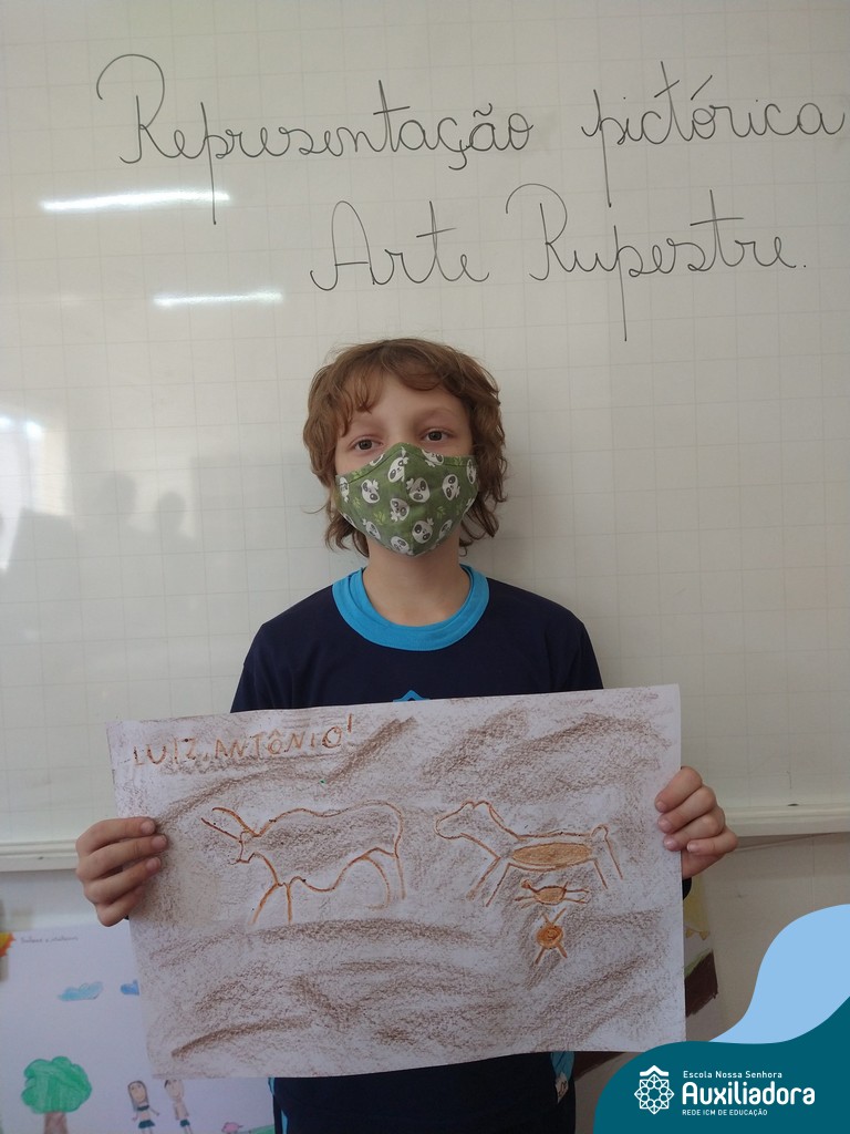 Ao estudar Fontes Históricas os alunos do 4º ano, turmas 41 e 42, realizaram a releitura de representações pictóricas através da Arte Rupestre.