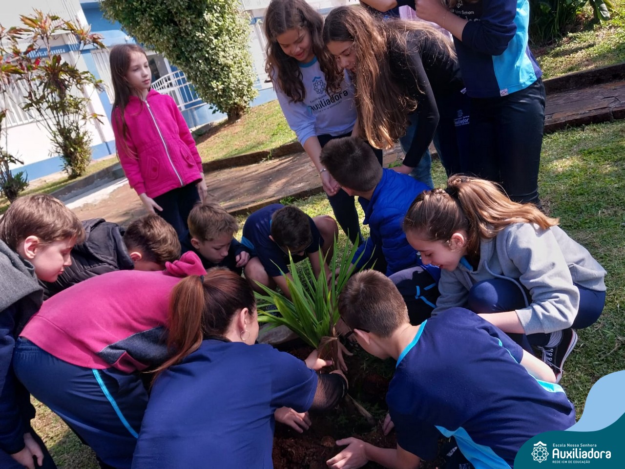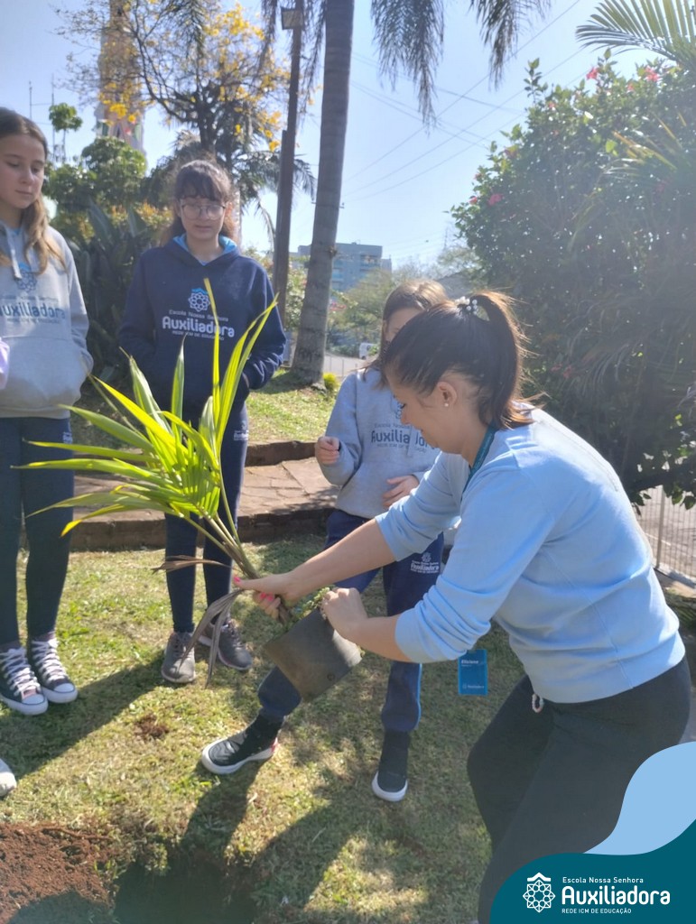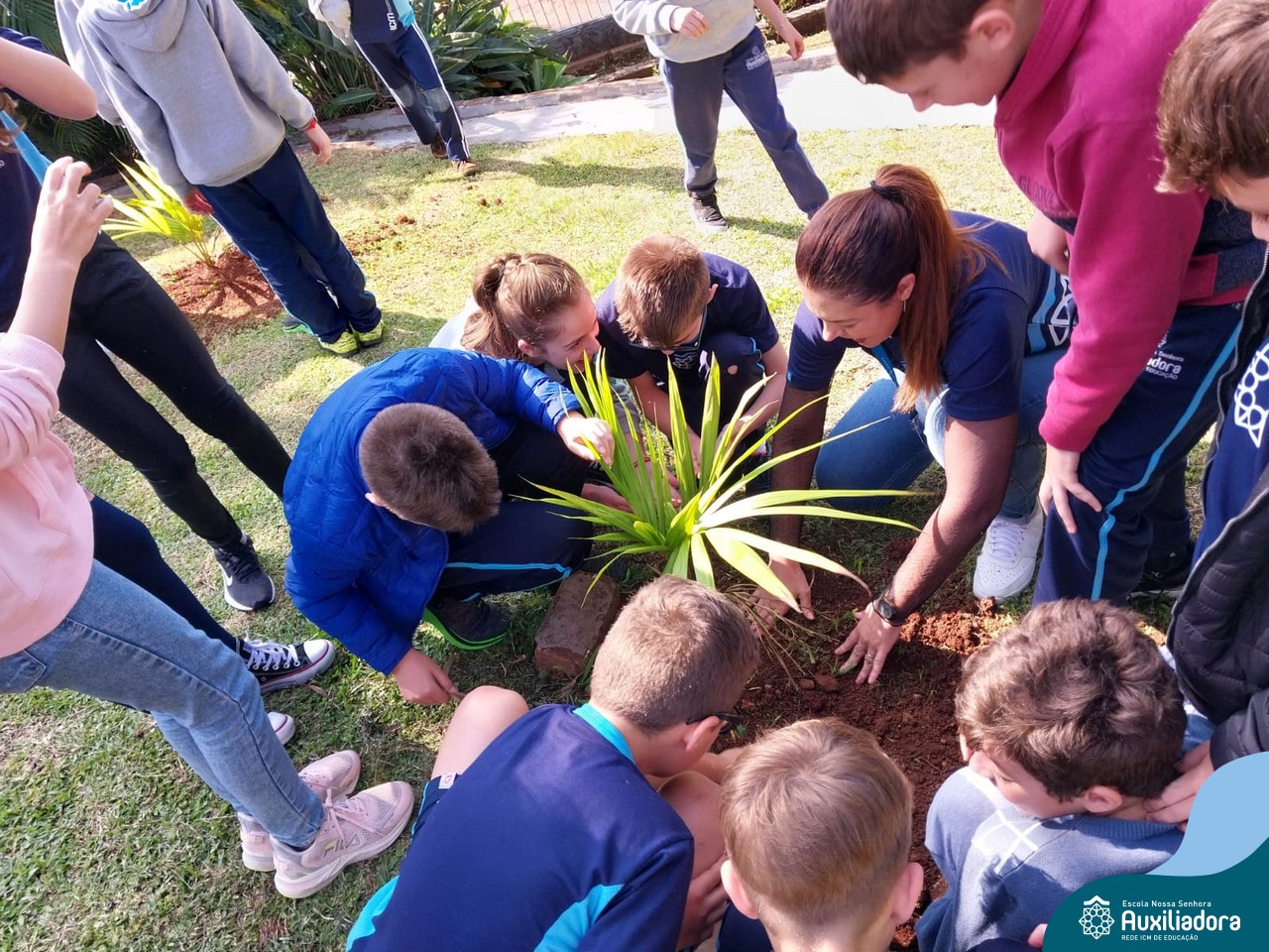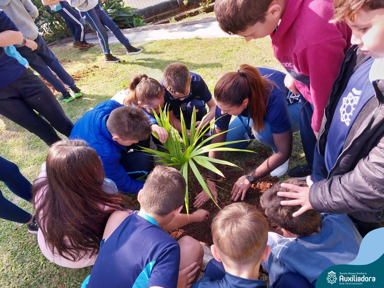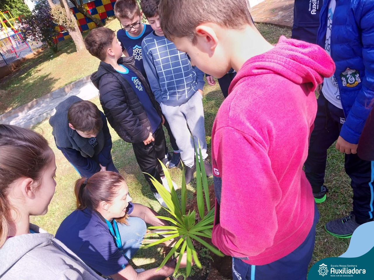 Com objetivo de dar sequência ao estudo dos biomas brasileiros e das vegetações nativas, os alunos realizaram o plantio de mudas de Açaí (típico da Região Amazônica) para cuidado e observações diárias.