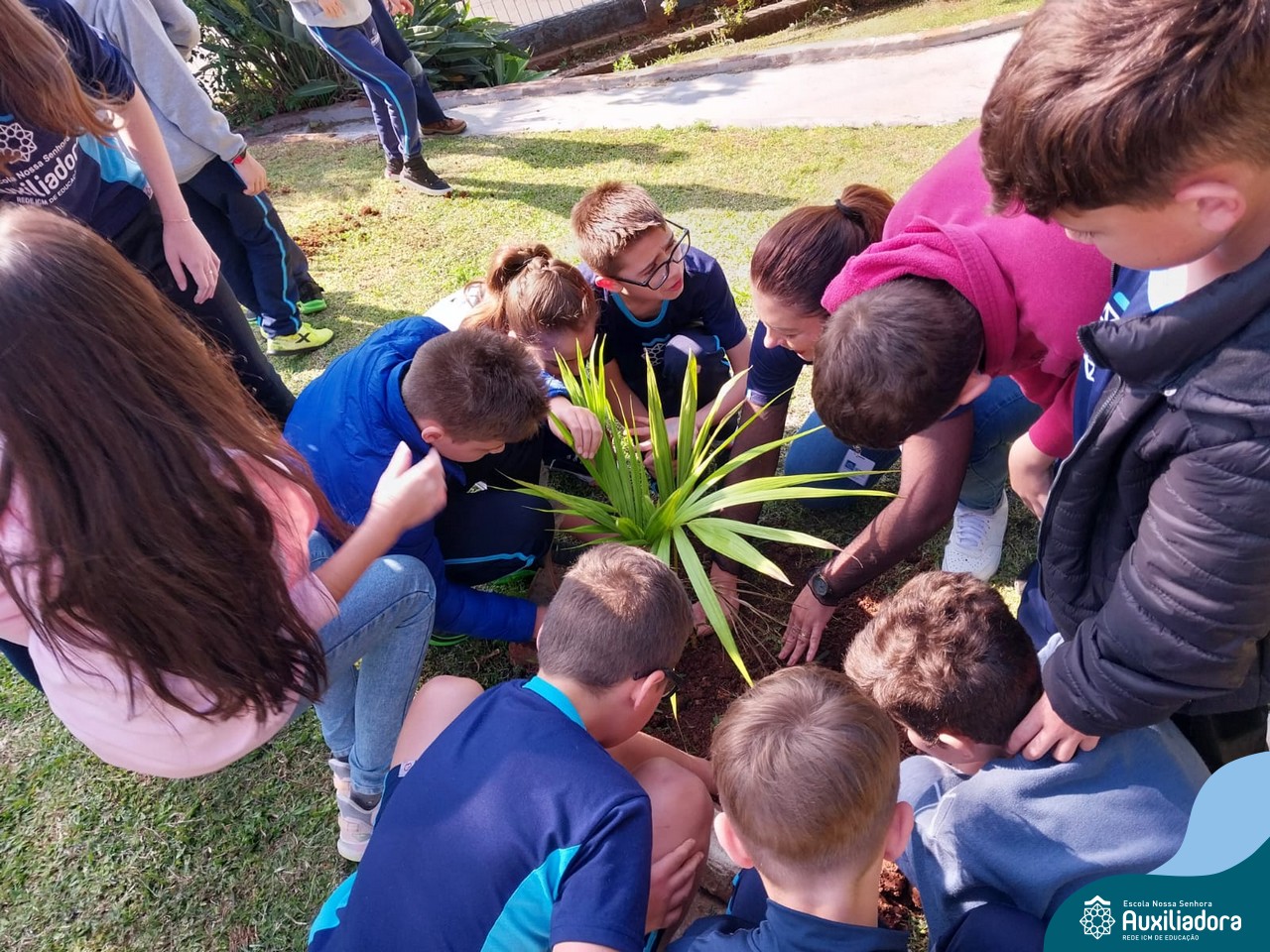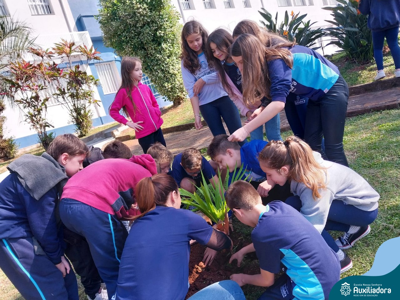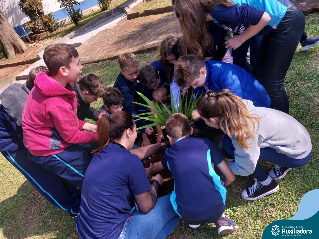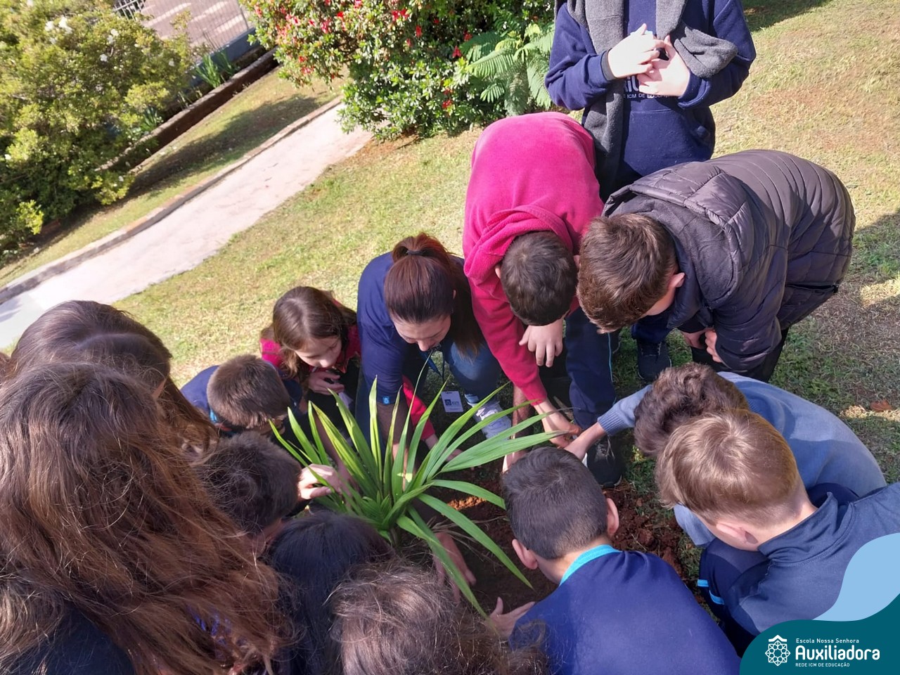 Com objetivo de dar sequência ao estudo dos biomas brasileiros e das vegetações nativas, os alunos realizaram o plantio de mudas de Açaí (típico da Região Amazônica) para cuidado e observações diárias.