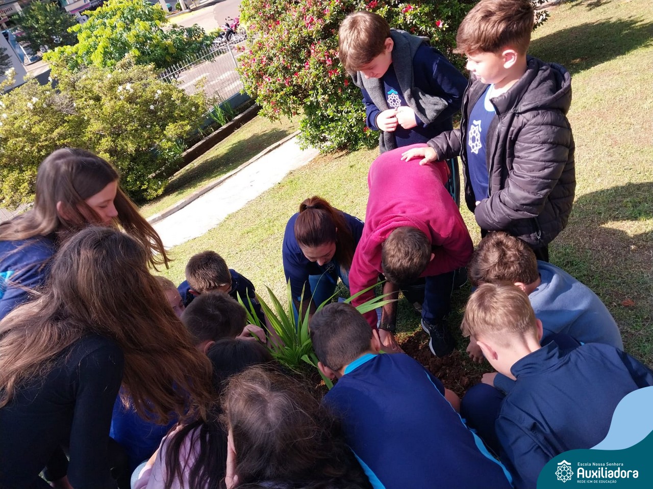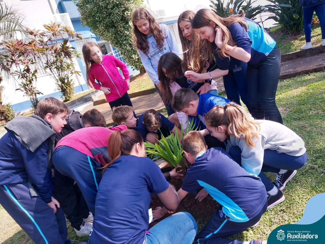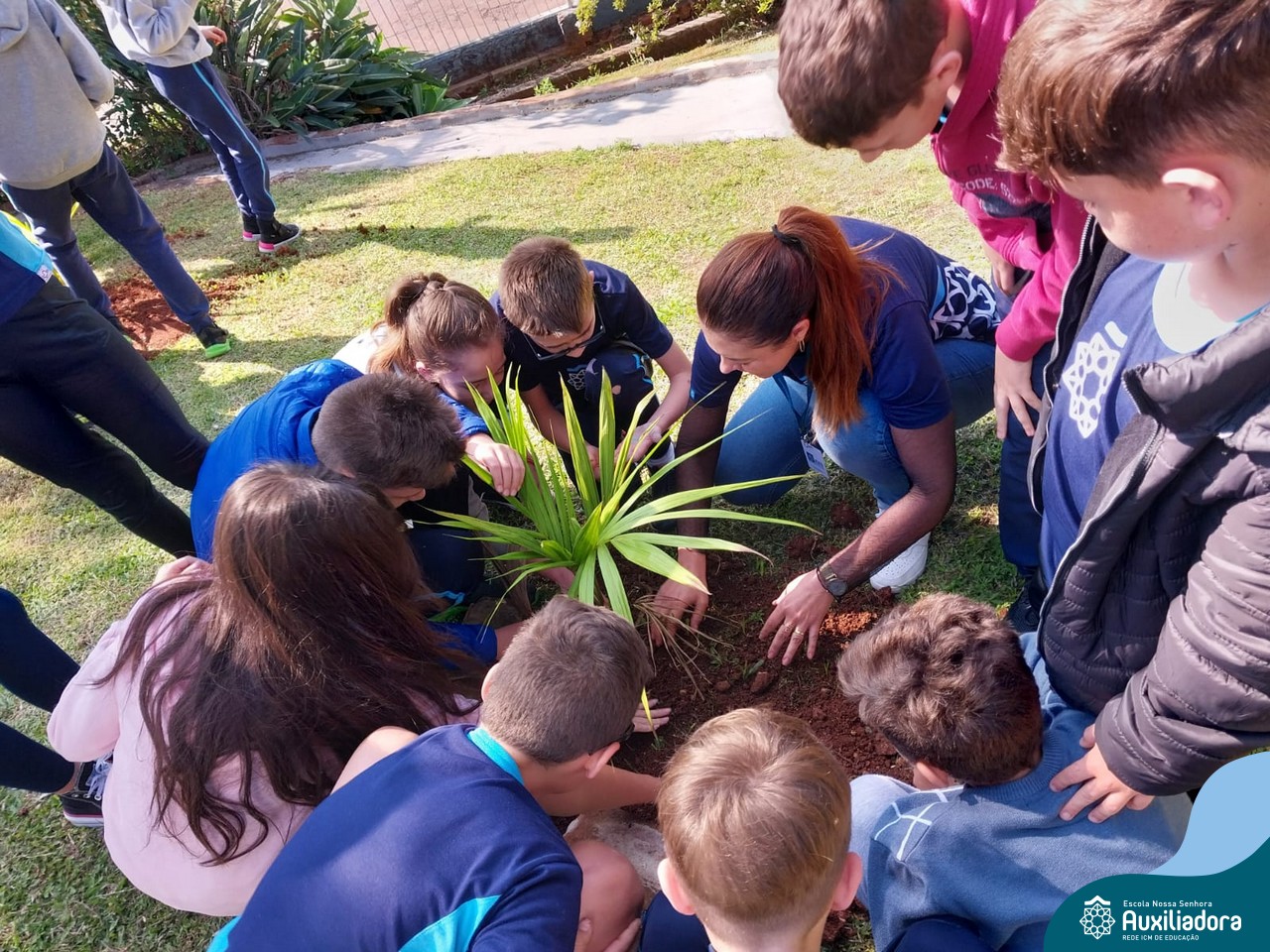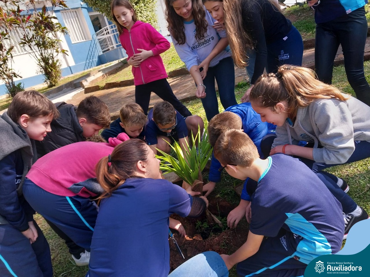 Com objetivo de dar sequência ao estudo dos biomas brasileiros e das vegetações nativas, os alunos realizaram o plantio de mudas de Açaí (típico da Região Amazônica) para cuidado e observações diárias.