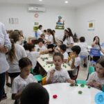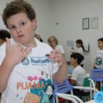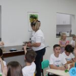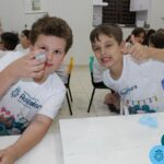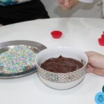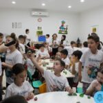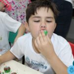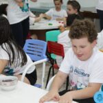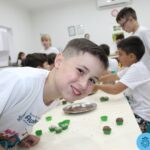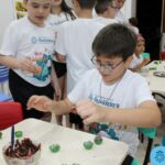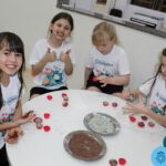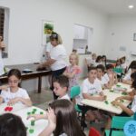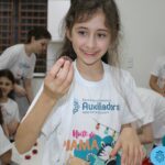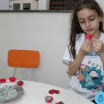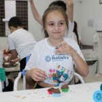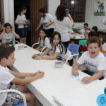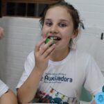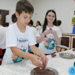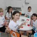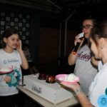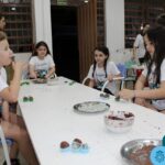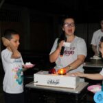 Ah, sem falar no delicioso jantar, com direito a pizza e batata frita! 🍕🍟 Teve sobremesa? 🧁 Claro que sim… Após o jantar, foi realizada uma oficina de docinhos, deliciosa e divertidíssima, com a Paula Bakof.