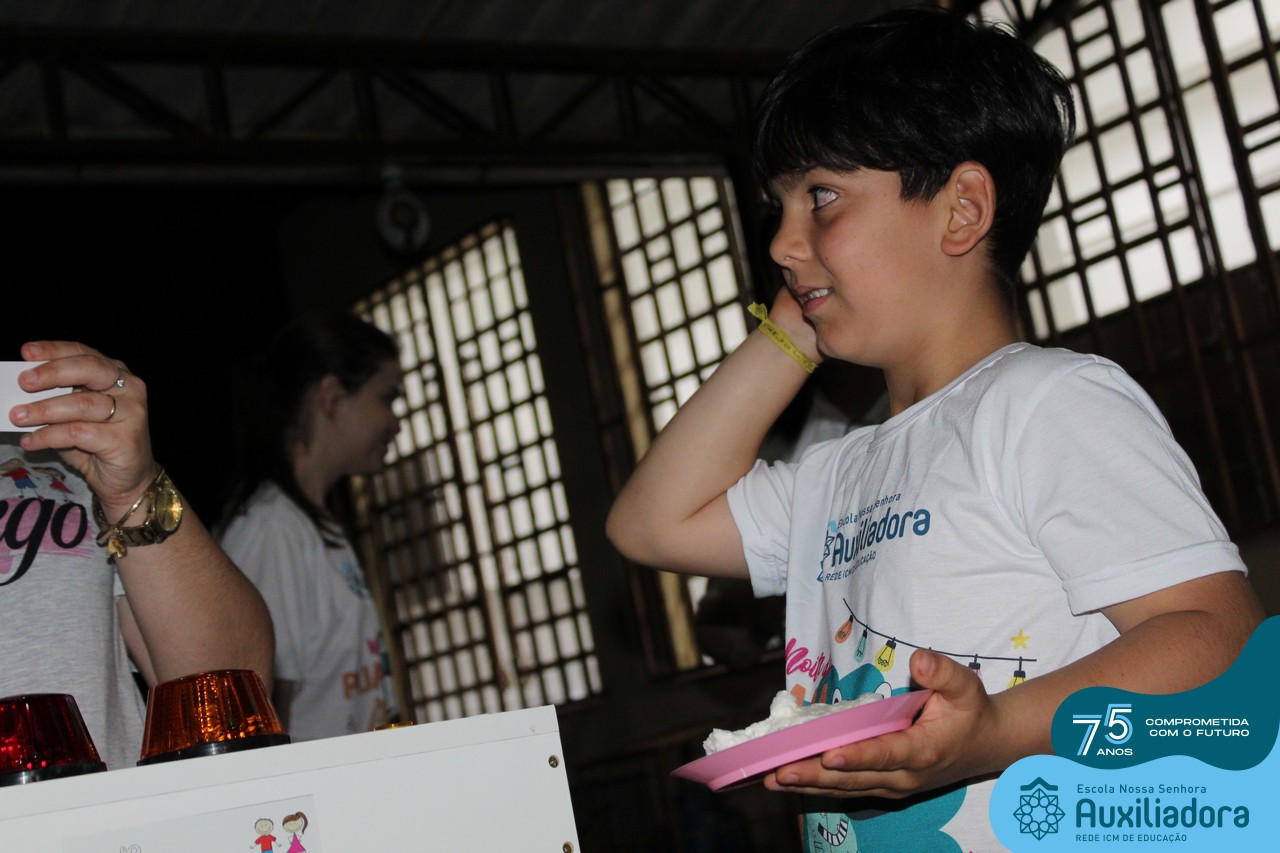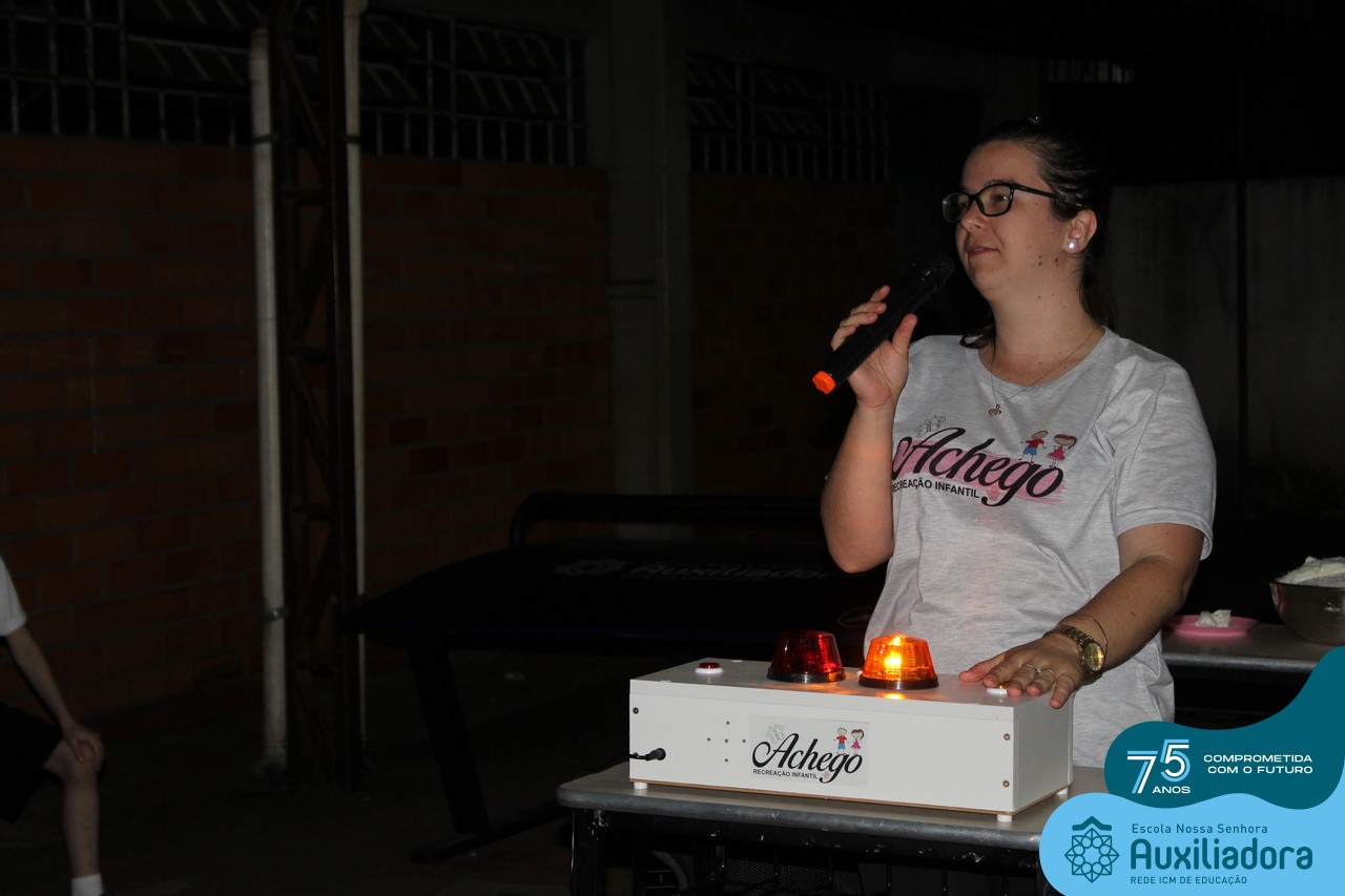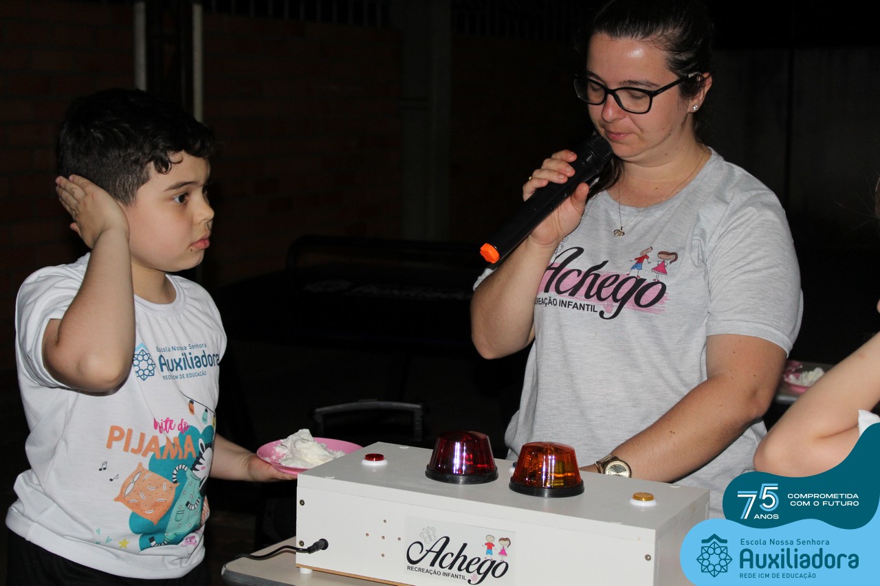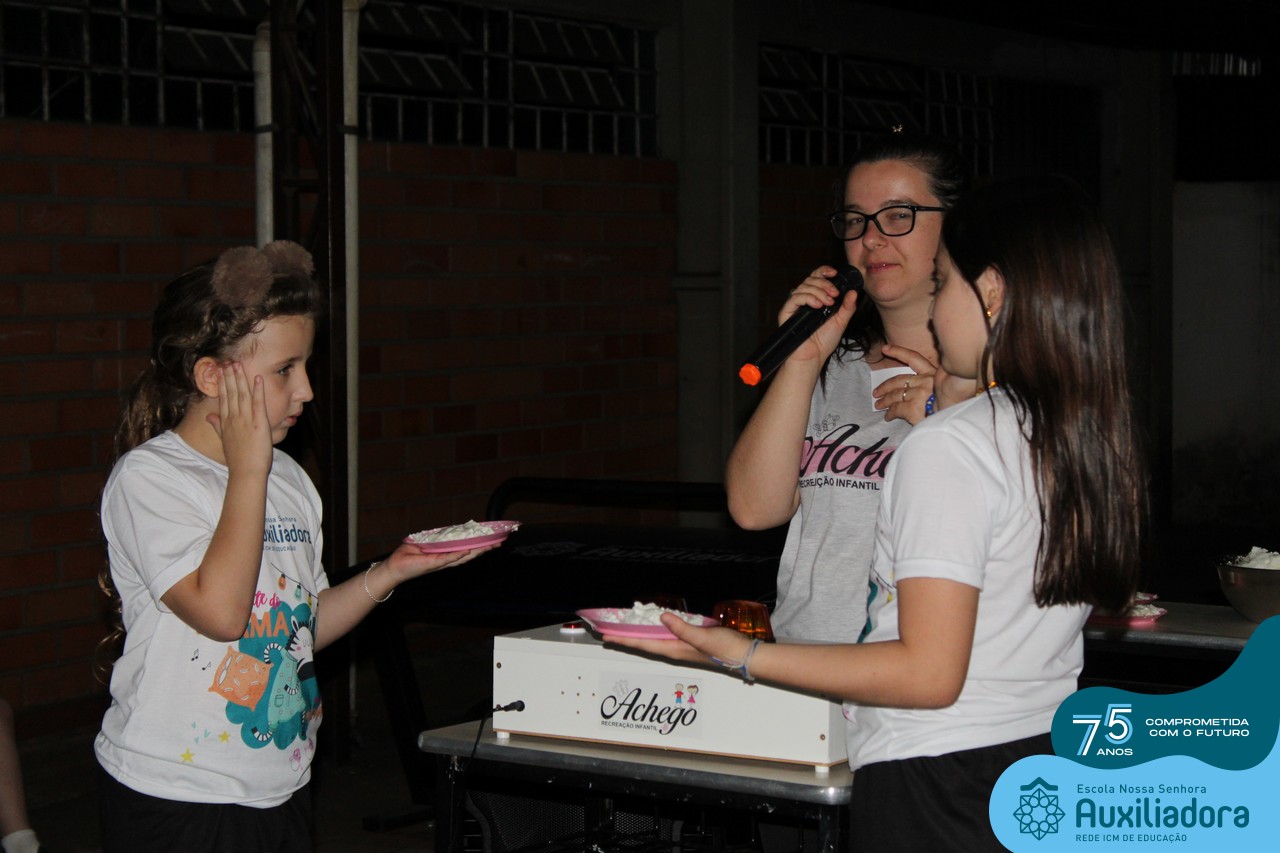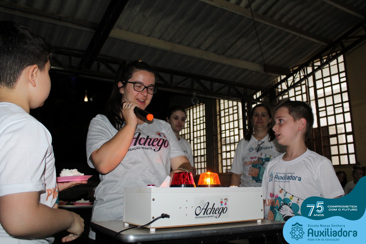 A noite foi de muitas atrações, que fizeram esse dia inesquecível. Teve espelho fotográfico, circuito de brincadeiras com a professora Jenifer, brincadeira “torta na cara” e baladinha com a Achego Recreação Infantil, fogueirinha de marshmallow, brincadeiras recreativas e, para fechar a noite, sessão cinema.
