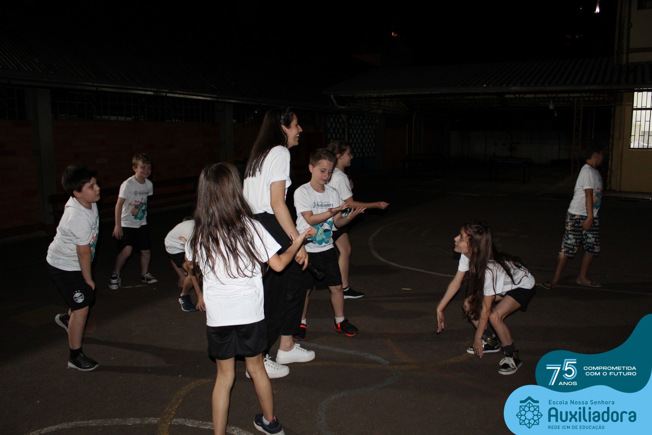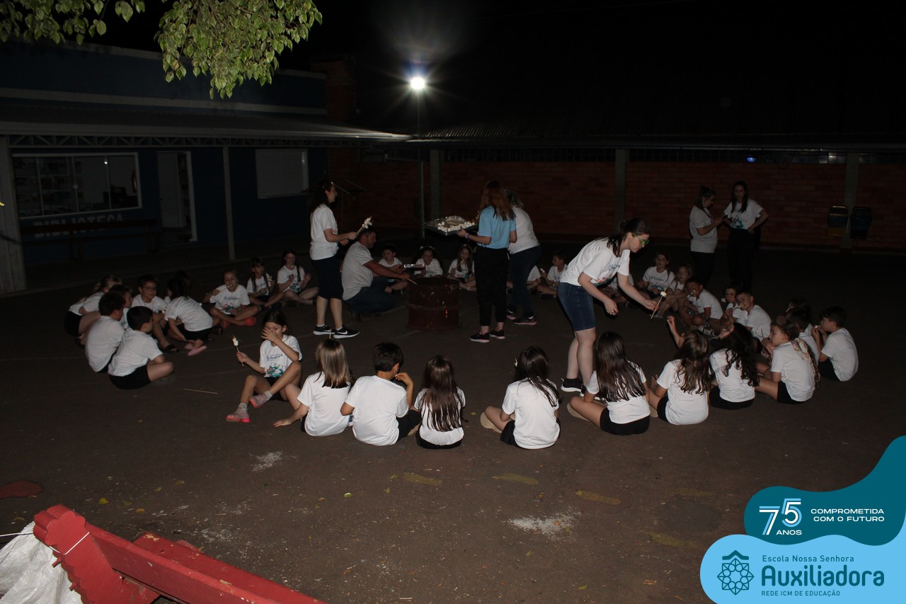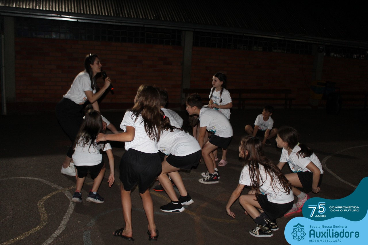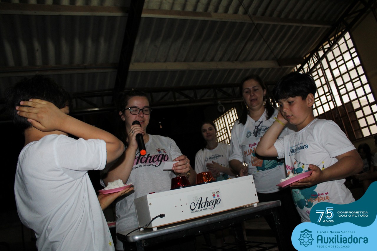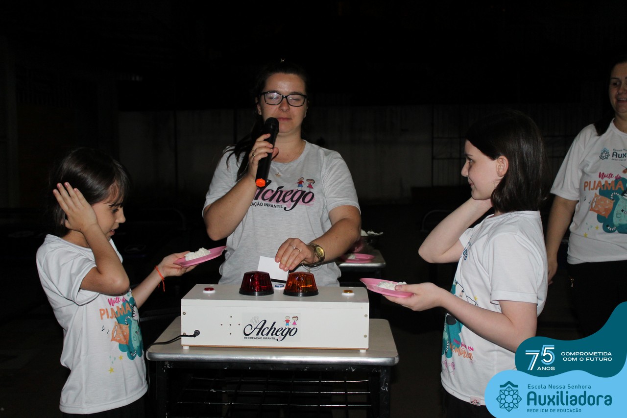 A noite foi de muitas atrações, que fizeram esse dia inesquecível. Teve espelho fotográfico, circuito de brincadeiras com a professora Jenifer, brincadeira “torta na cara” e baladinha com a Achego Recreação Infantil, fogueirinha de marshmallow, brincadeiras recreativas e, para fechar a noite, sessão cinema.