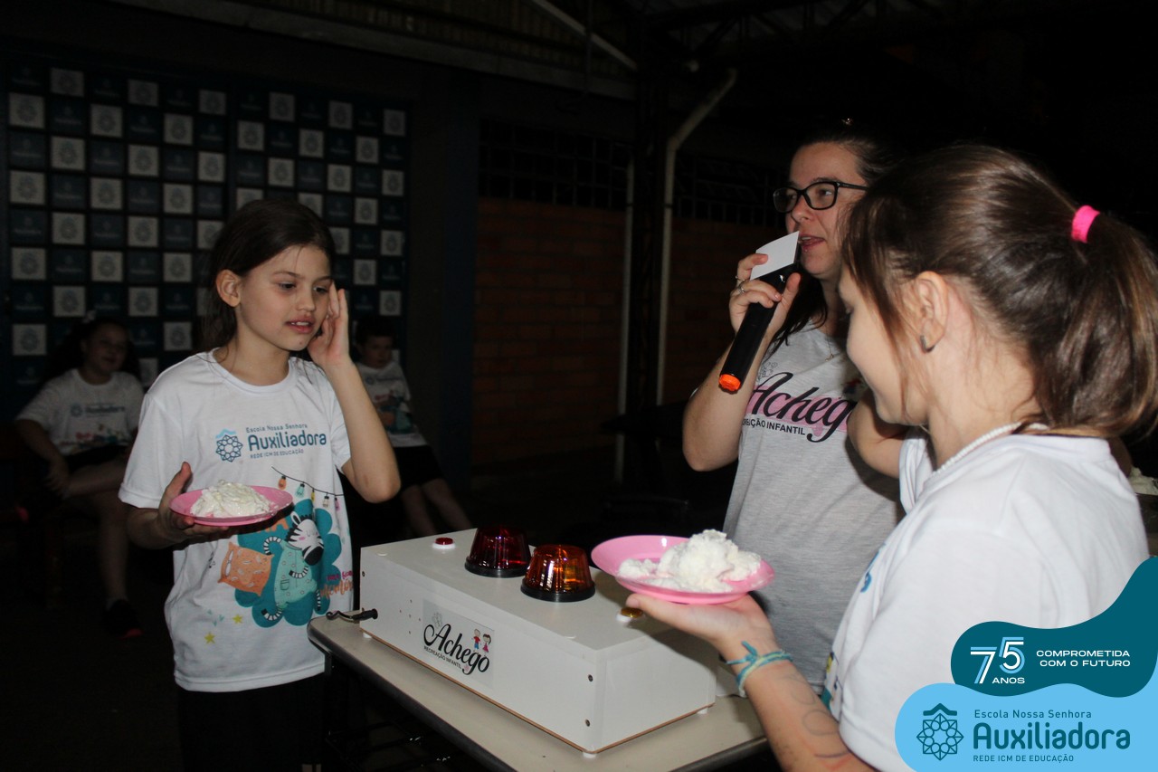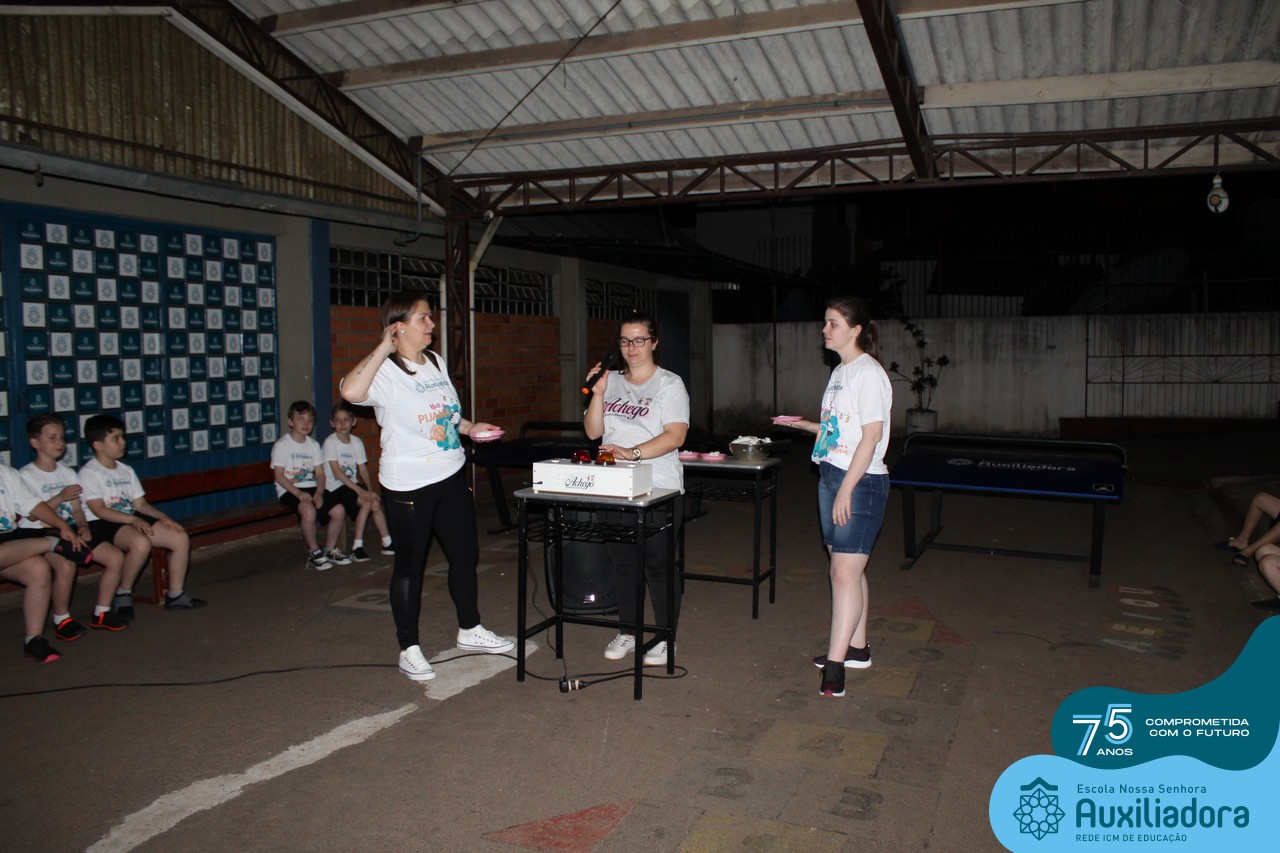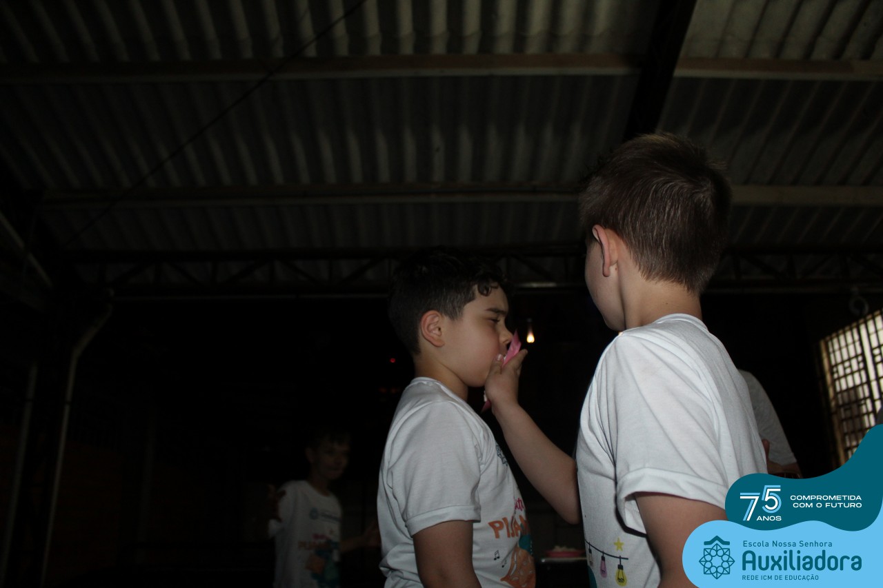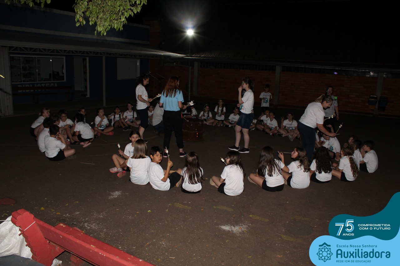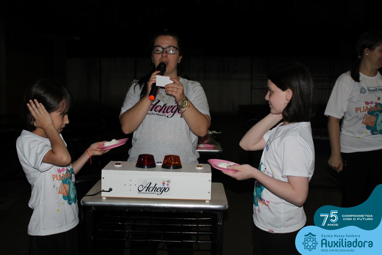 A noite foi de muitas atrações, que fizeram esse dia inesquecível. Teve espelho fotográfico, circuito de brincadeiras com a professora Jenifer, brincadeira “torta na cara” e baladinha com a Achego Recreação Infantil, fogueirinha de marshmallow, brincadeiras recreativas e, para fechar a noite, sessão cinema.