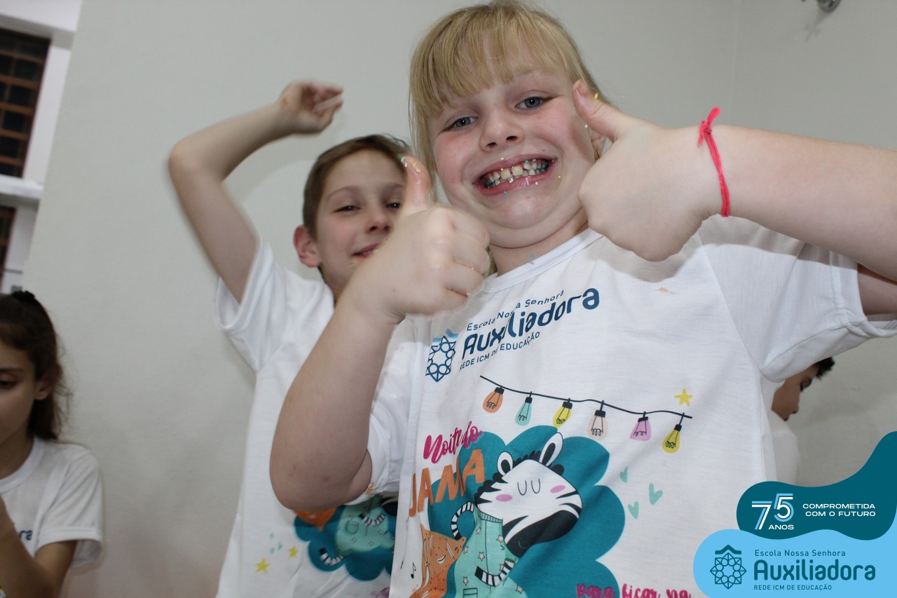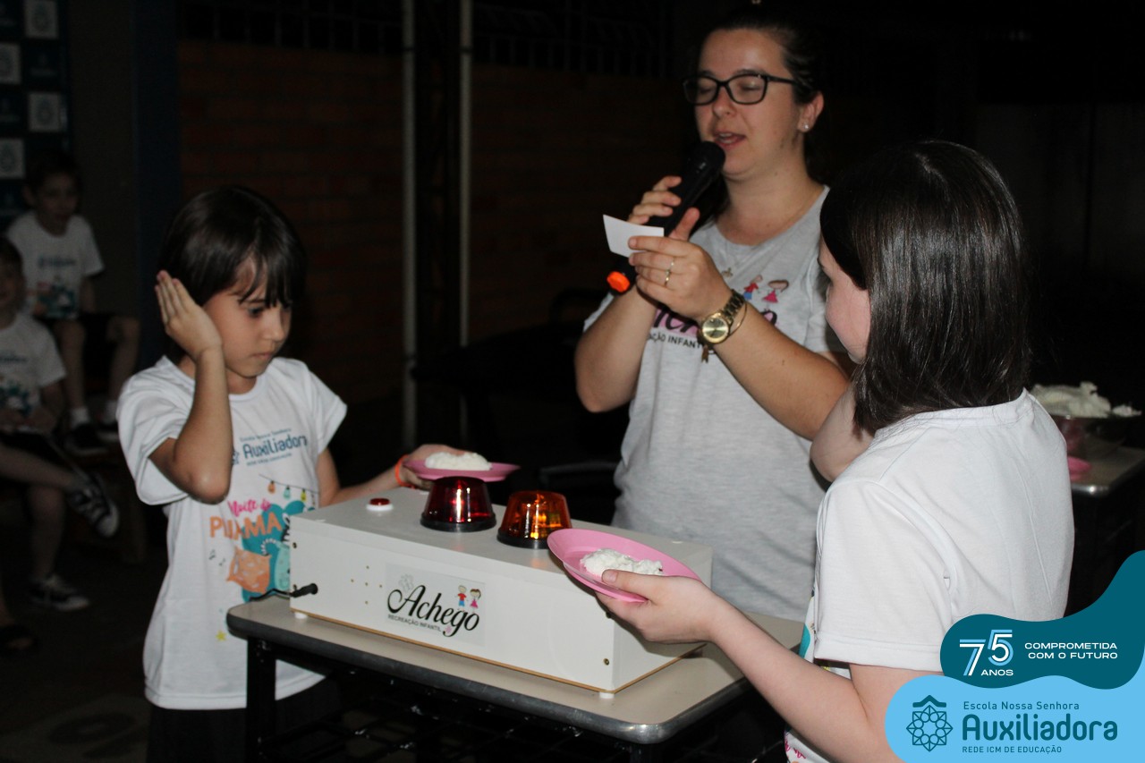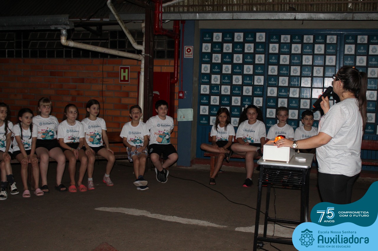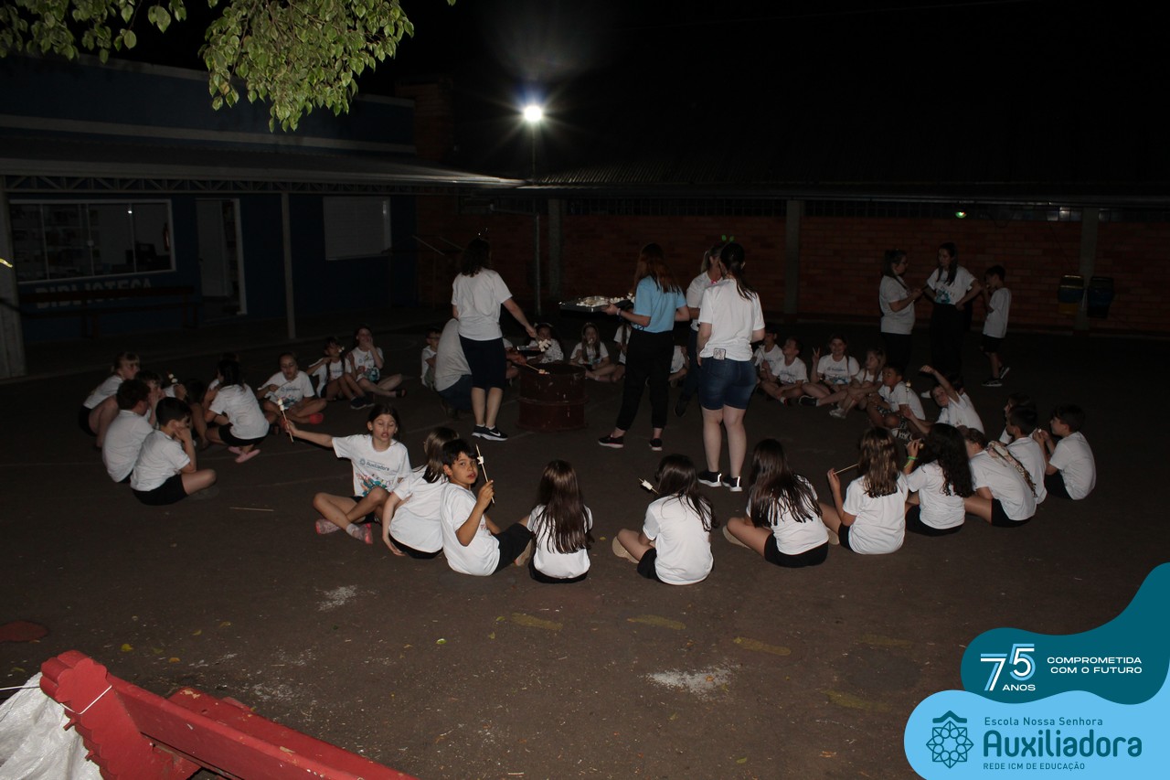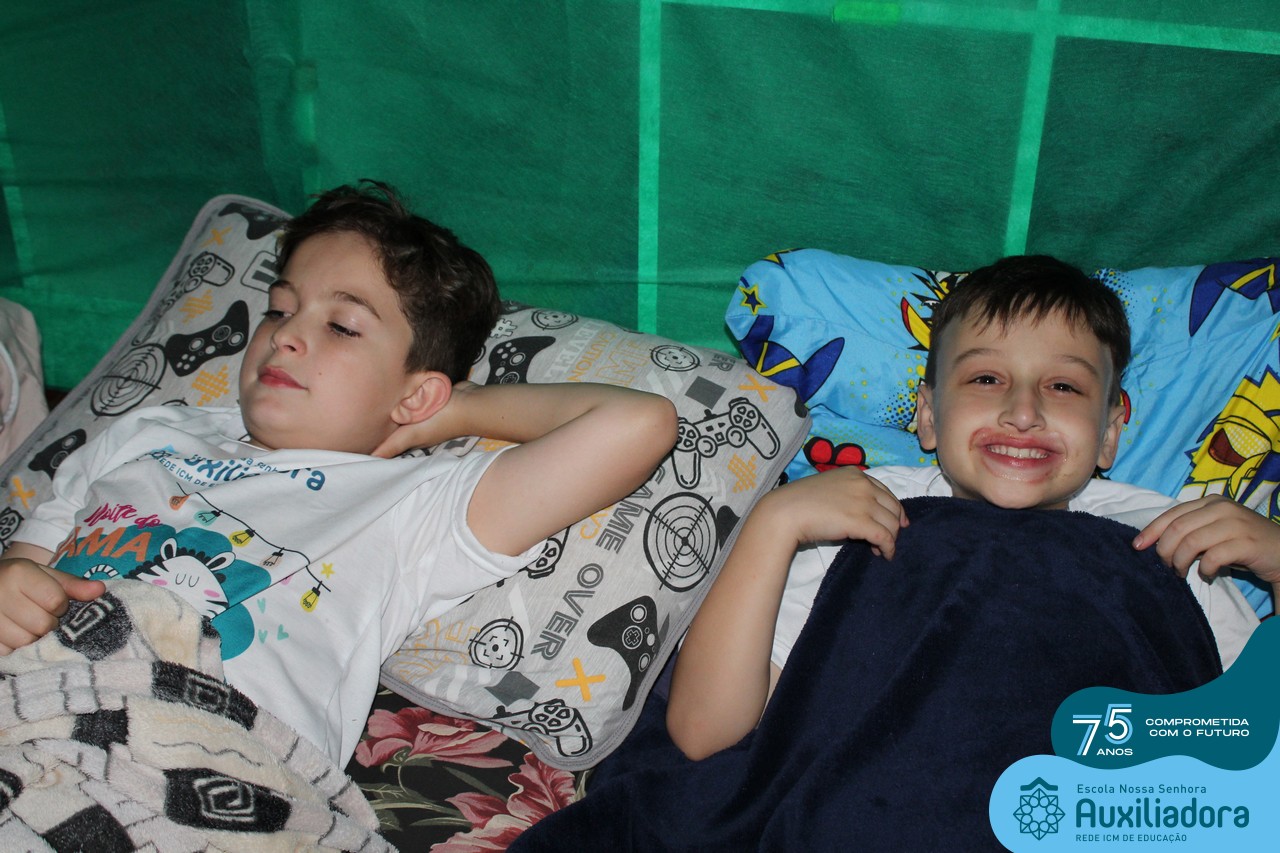 A noite foi de muitas atrações, que fizeram esse dia inesquecível. Teve espelho fotográfico, circuito de brincadeiras com a professora Jenifer, brincadeira “torta na cara” e baladinha com a Achego Recreação Infantil, fogueirinha de marshmallow, brincadeiras recreativas e, para fechar a noite, sessão cinema.