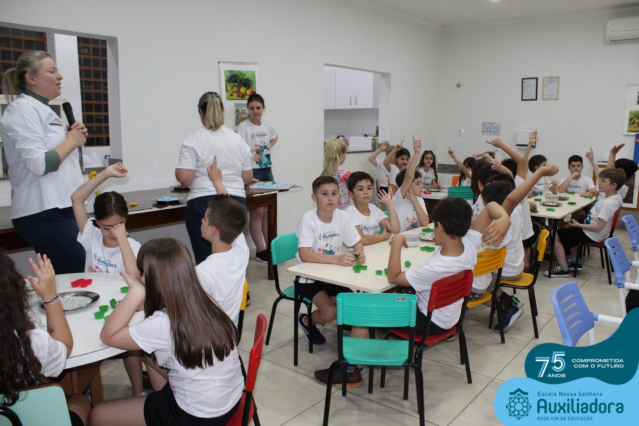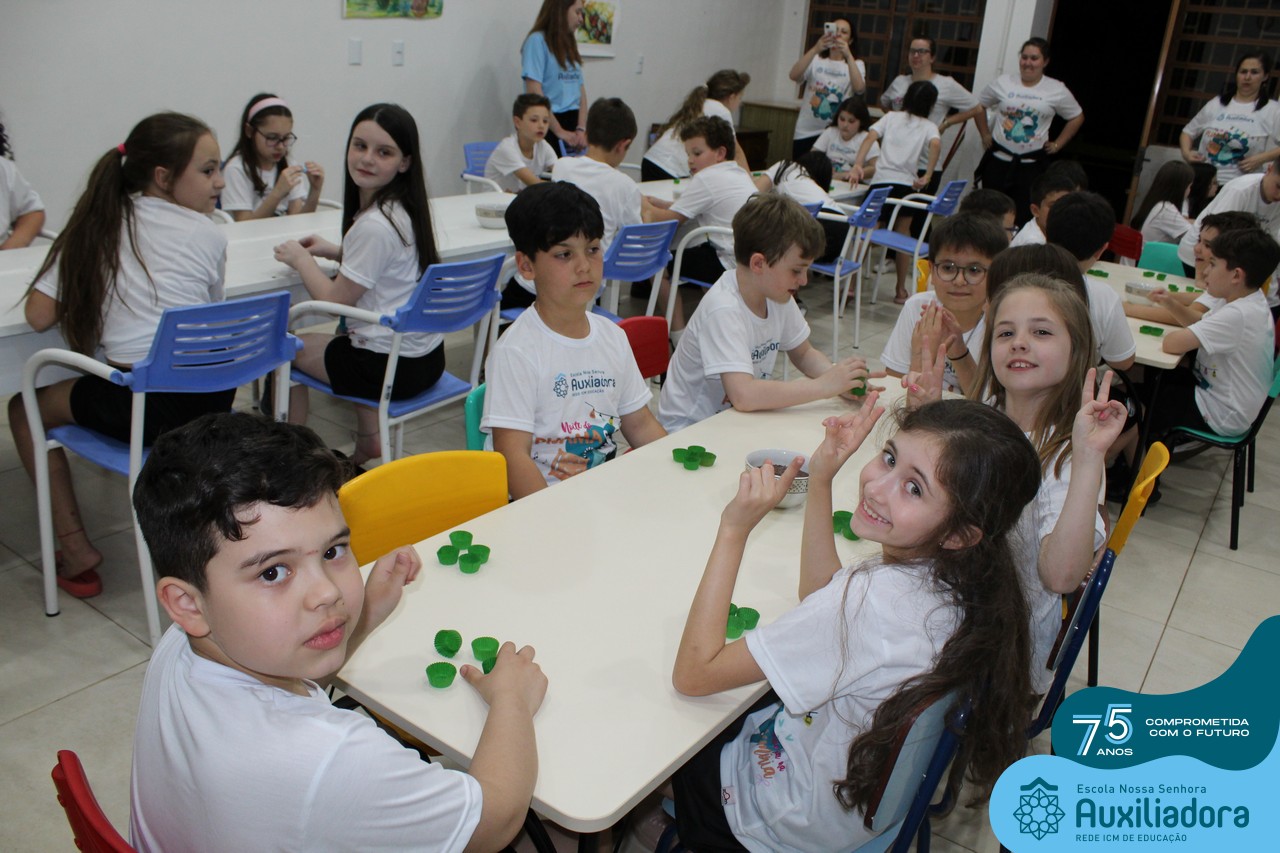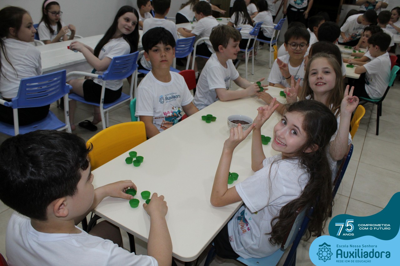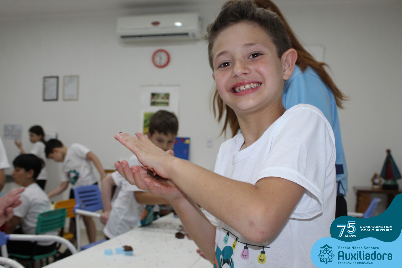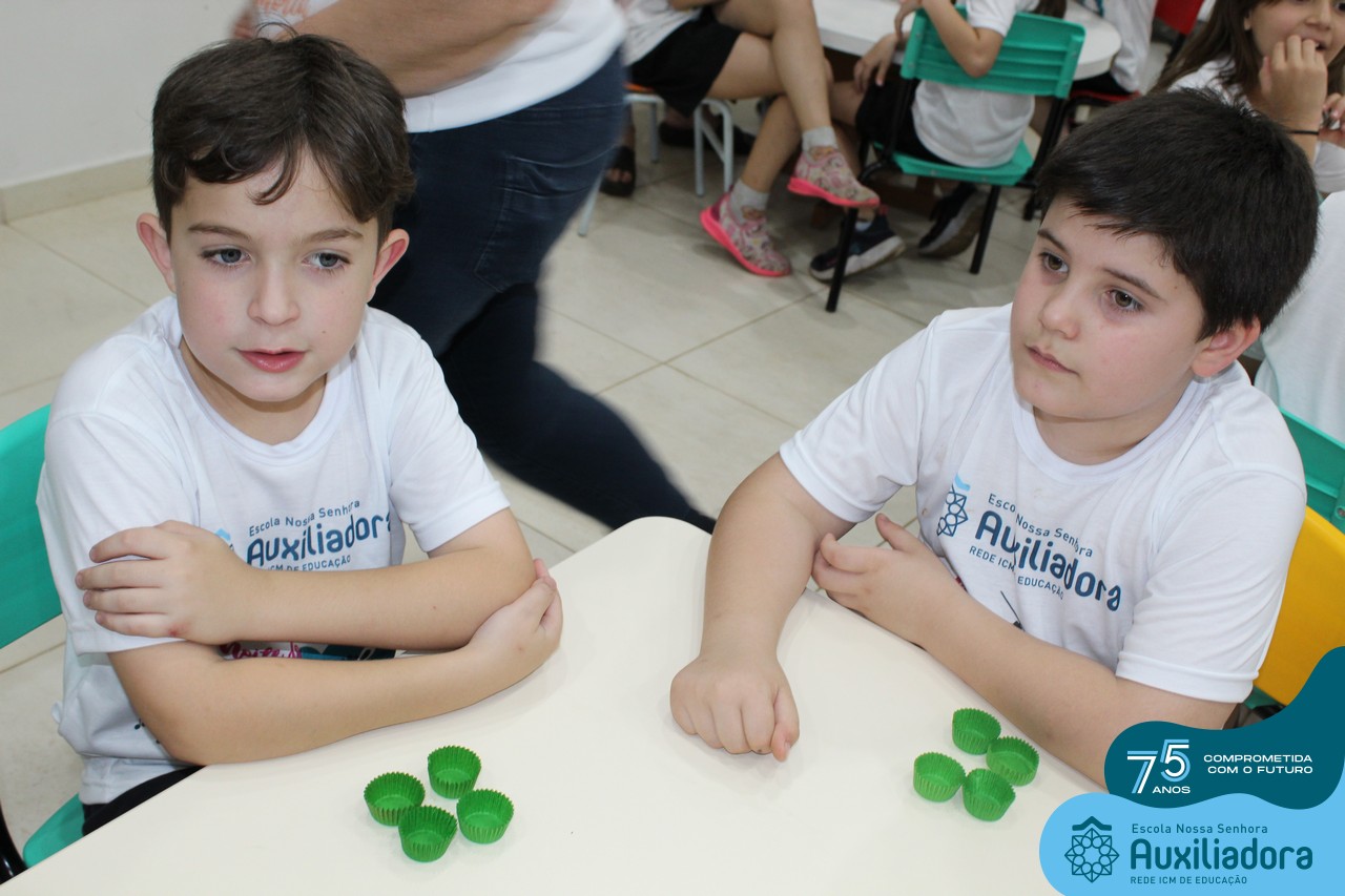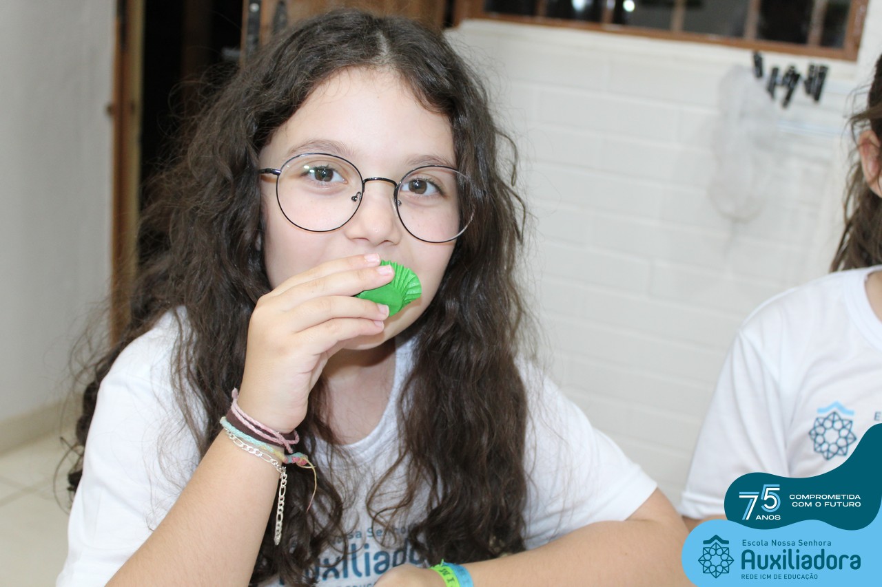 Ah, sem falar no delicioso jantar, com direito a pizza e batata frita! 🍕🍟 Teve sobremesa? 🧁 Claro que sim… Após o jantar, foi realizada uma oficina de docinhos, deliciosa e divertidíssima, com a Paula Bakof.