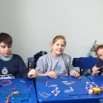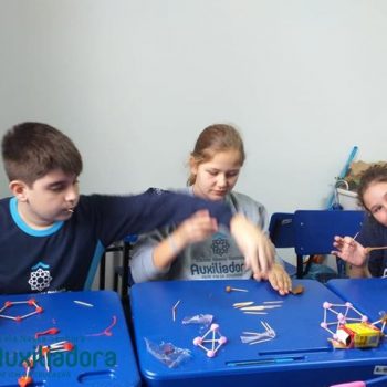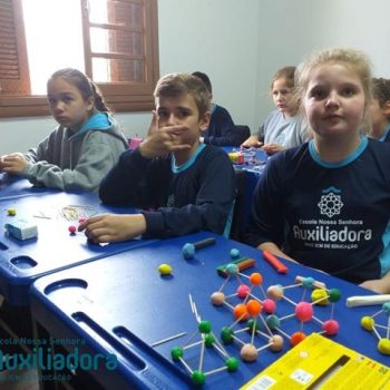 Aula de Matemática super divertida! Depois de estudar faces, ângulos, vértices… os alunos mostraram o que aprenderam construindo com massinha de modelar e palitos os sólido geométricos. Confira! Profe Elisiane.