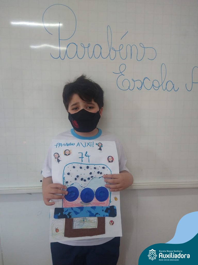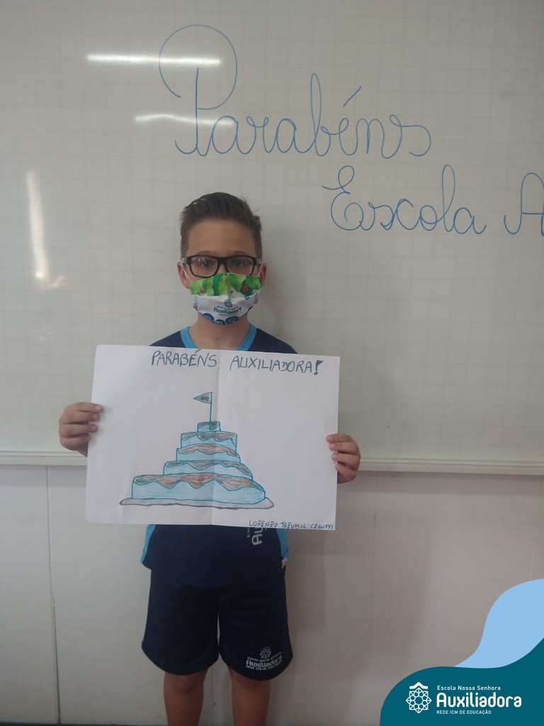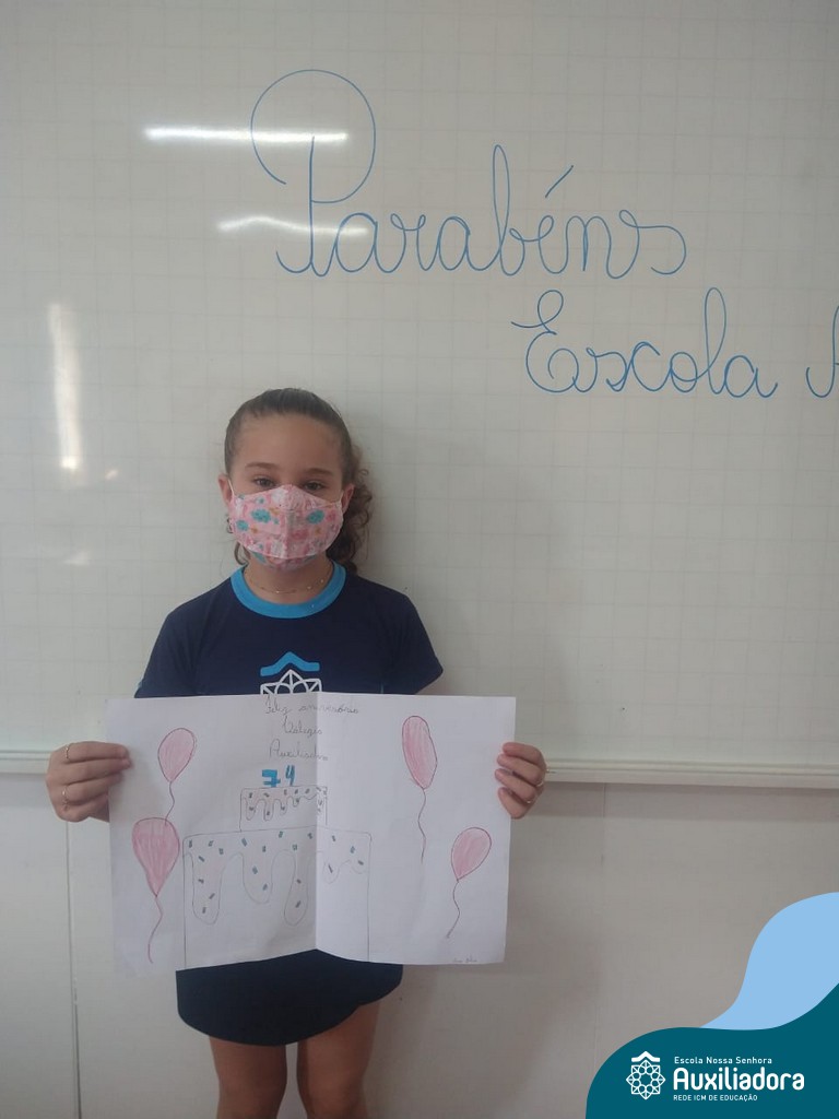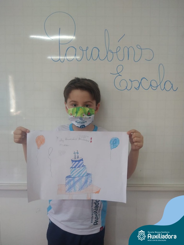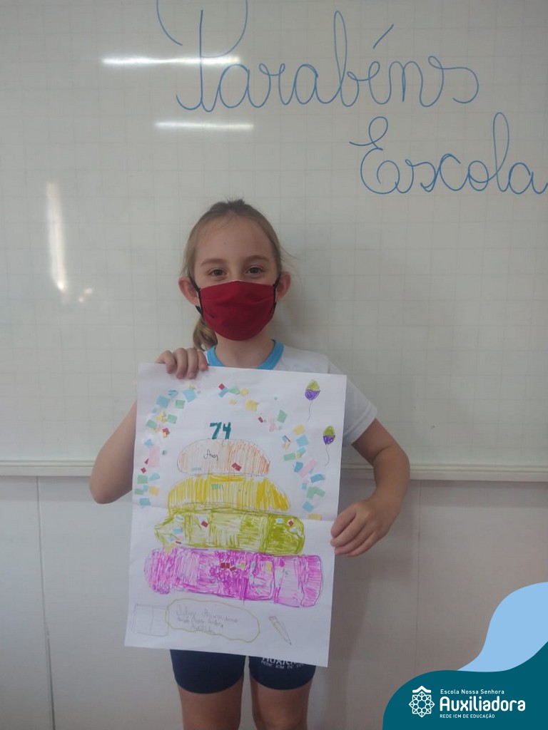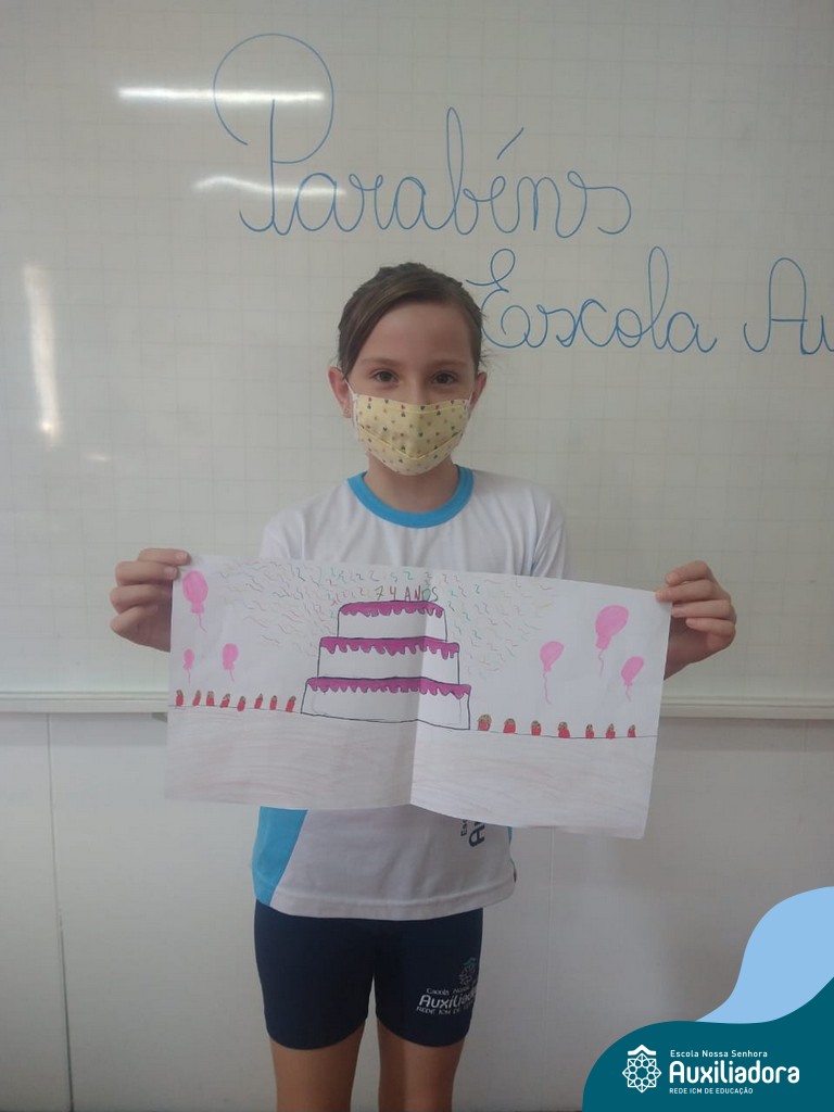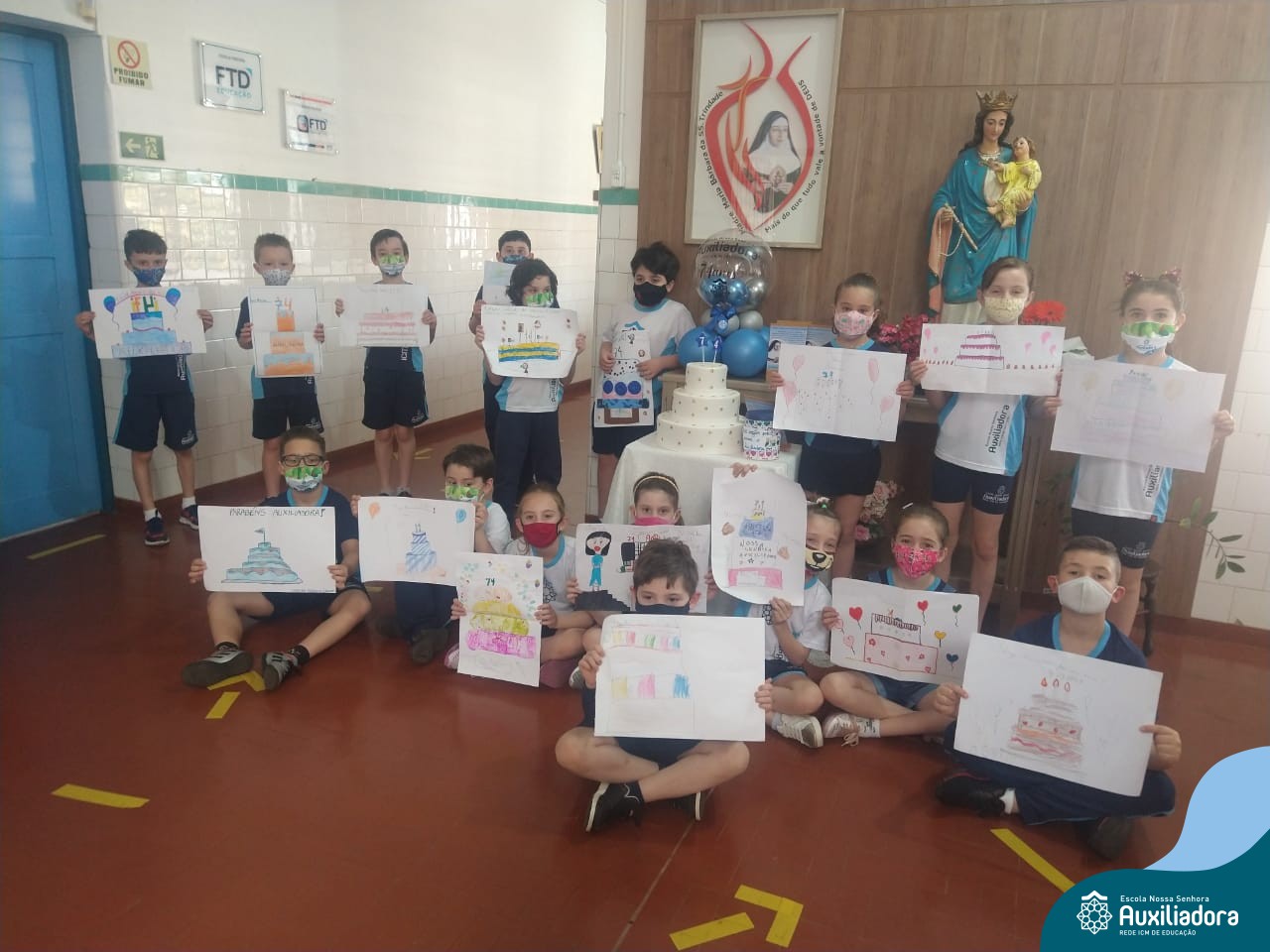 Para comemorar os 74 anos da nossa querida escola, a turma do 3° ano 31 construiu cartazes com o bolo comemorativo do aniversário do Auxiliadora!