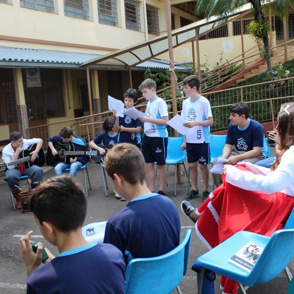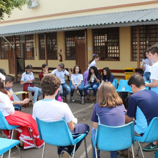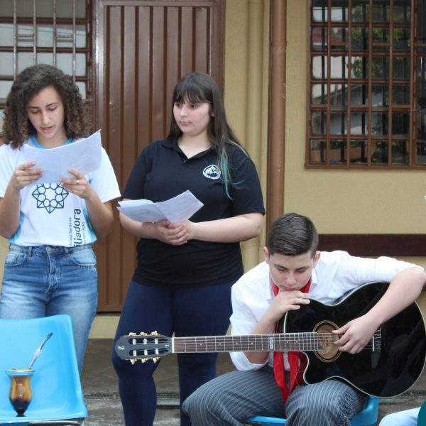 Na última semana os alunos do 7º ano, na disciplina de Língua Portuguesa, realizaram uma Mateada Literária. A atividade foi a culminância de leituras efetuadas dos contos de Simões Lopes Neto.