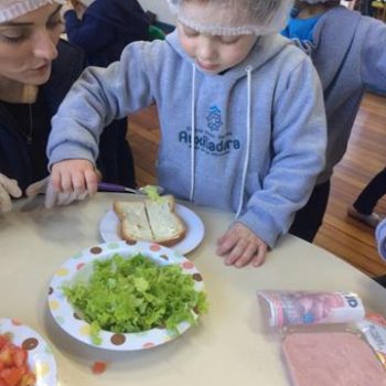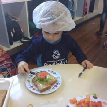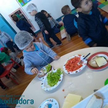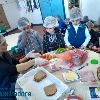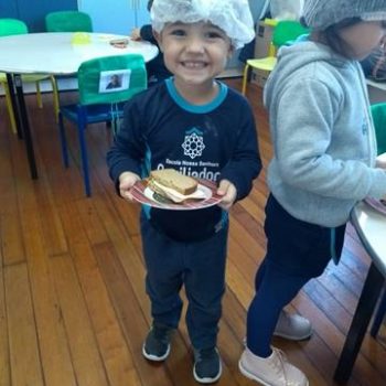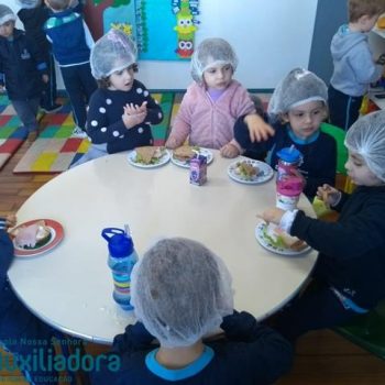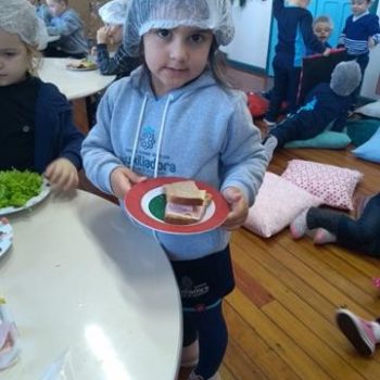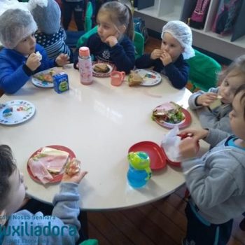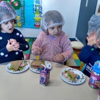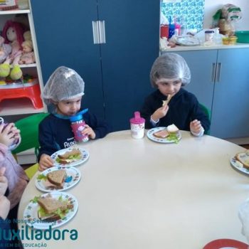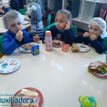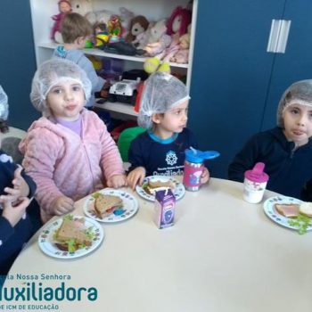 Atividade de educação nutricional com o Maternal 2.🄪 🄪A nutricionista trabalhou alimentação saudĆ”vel com os pequenos atravĆ©s da historia “SanduĆ­che da Maricota” e, como forma de estimular a alimentação saudĆ”vel cada crianƧa montou o seu próprio sanduĆ­che.🄪 🄪A boa alimentação se reflete na qualidade de vida e do aprendizado. šŸ‘©ā€šŸ³ Nutricionista Danila Luza.