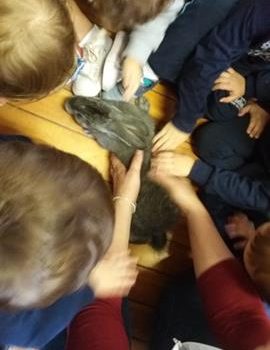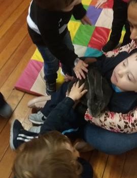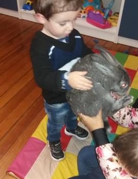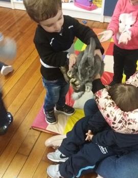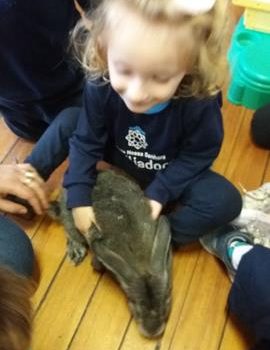 Foi muito divertido ver a chegada dele na sala de aula.🐰 Foi uma festa!🐰