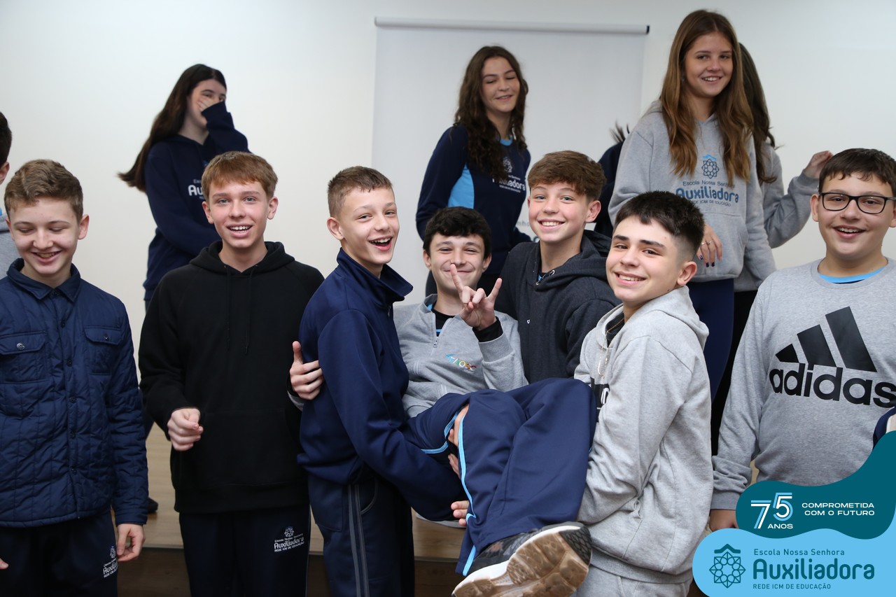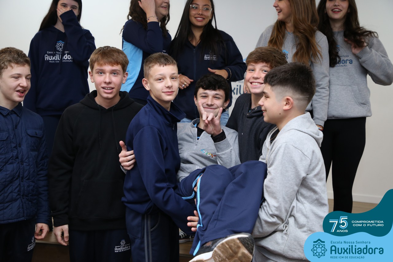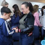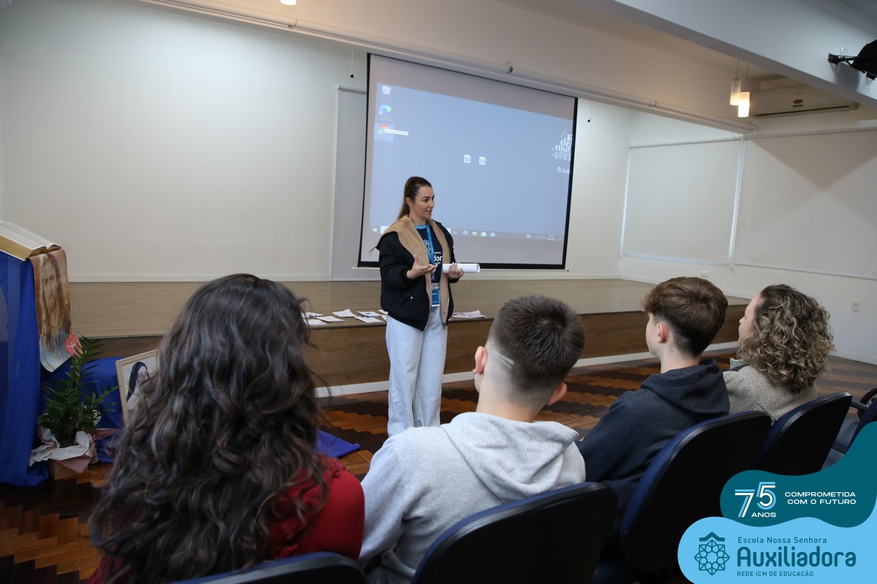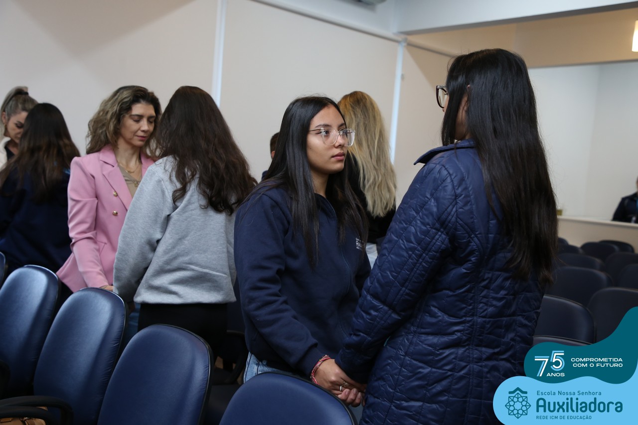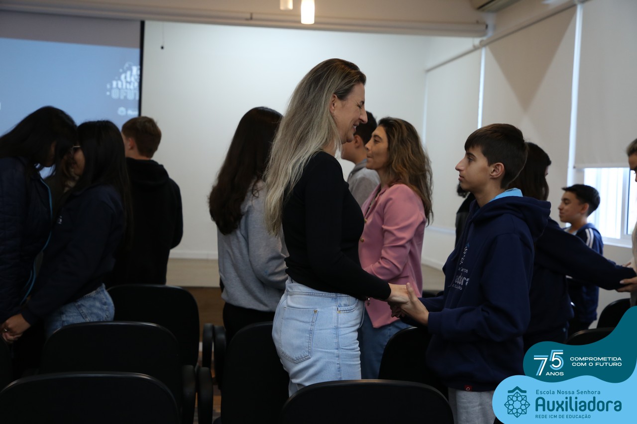 Mãe: palavra pequena, mas com um significado infinito, pois quer dizer amor, dedicação, renúncia a si própria, força e sabedoria. Ser mãe não é só dar à luz, e sim participar da vida dos seus frutos gerados ou criados. Os alunos do 8º82 receberam suas mães para homenageá-las através de uma bênção e de um cartão com suas fotos, trazendo boas lembranças e muito amor!