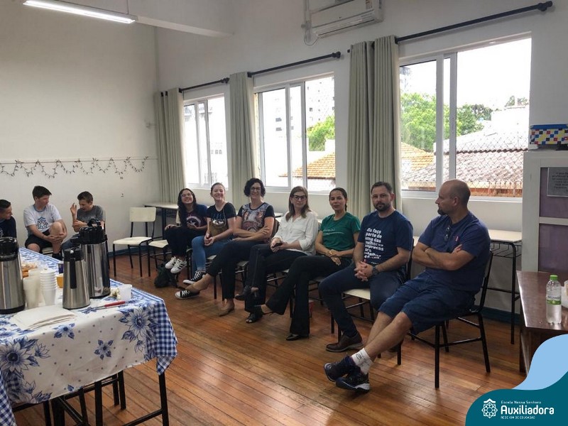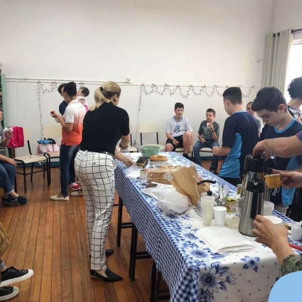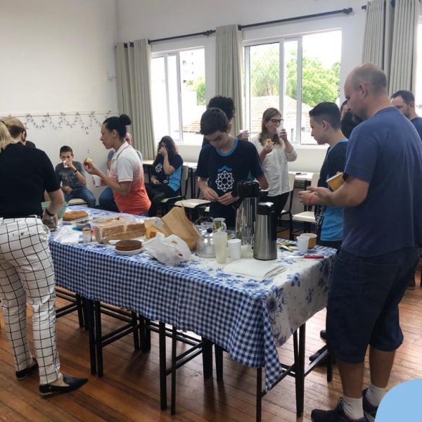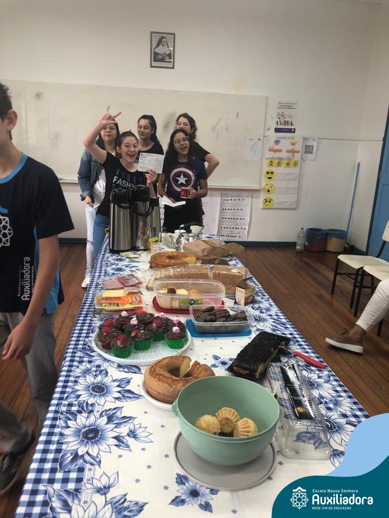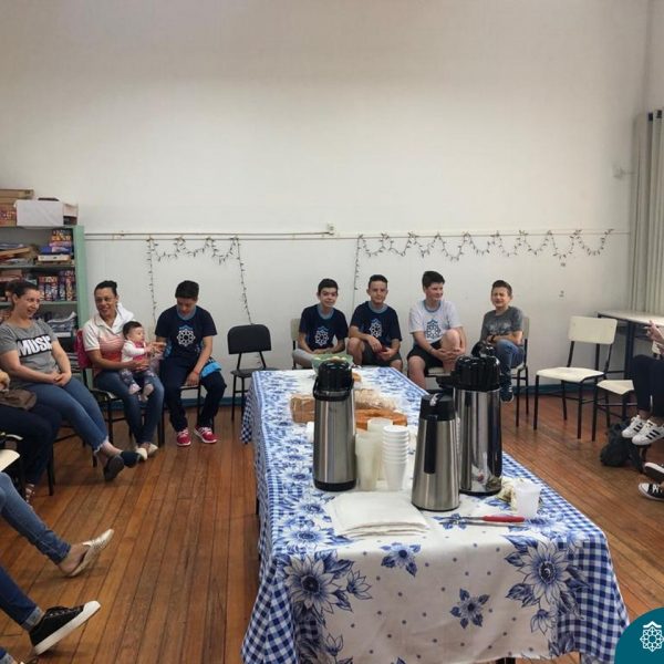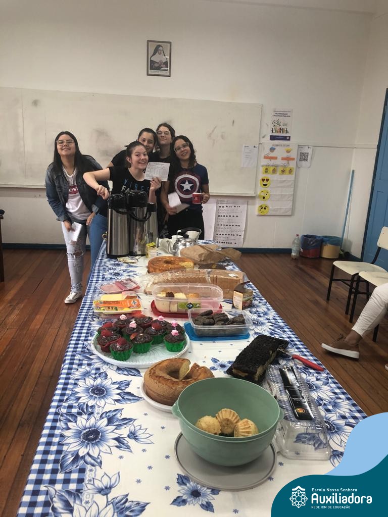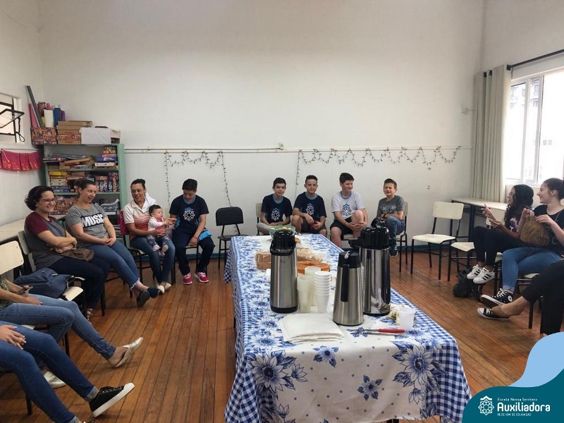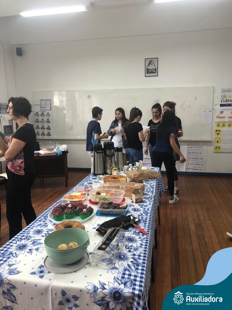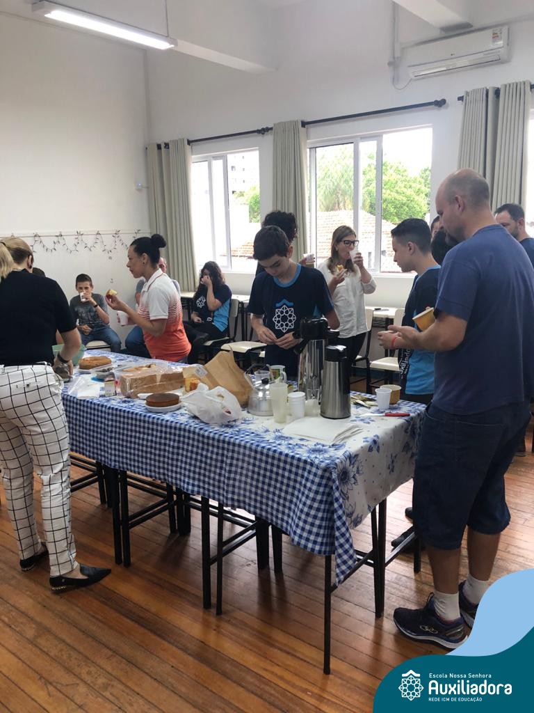 E assim, com um super lanche junto aos pais, realizamos nossa celebração de encerramento do ano e entrega dos boletins para a turma do 8º ano de 2019.