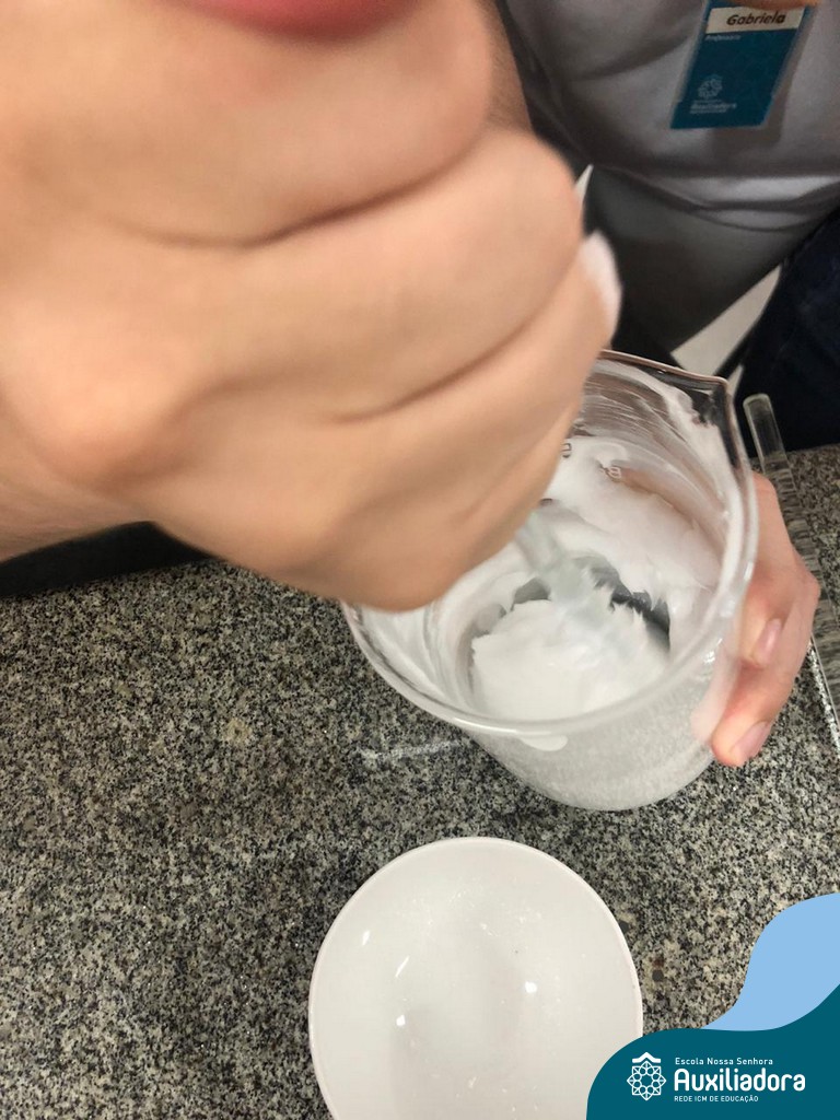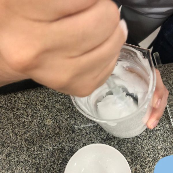 👏 Para exemplicar na prática os conteúdos de mistura e soluções, os alunos do 9° ano fizeram um Creme de mãos, com produtos como ureia, óleo de amêndoas e vaselina, que maotram 3 tipos diferente de textura, na busca por uma mistura homogênea. Ficou ótimo! ⚗🧪